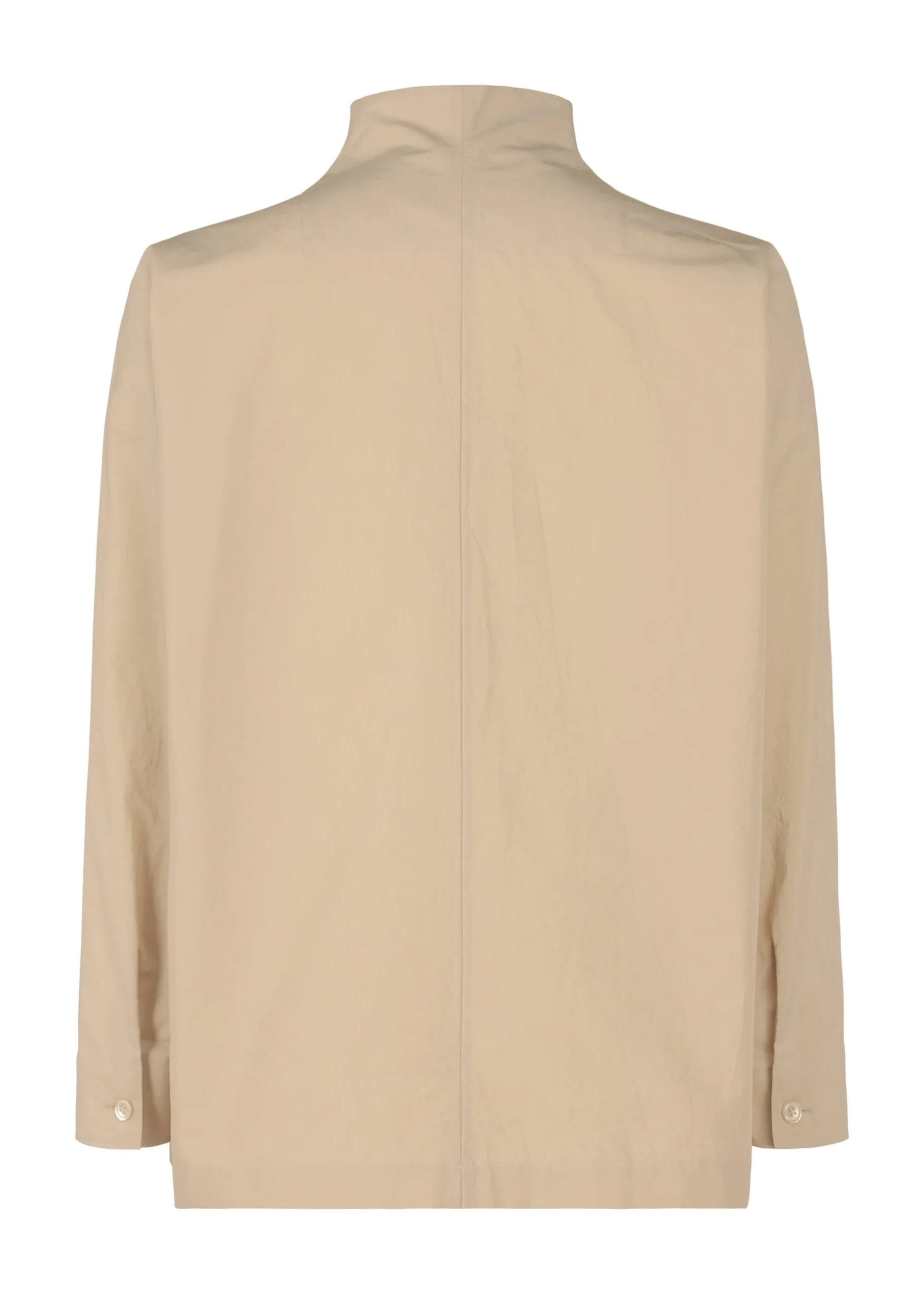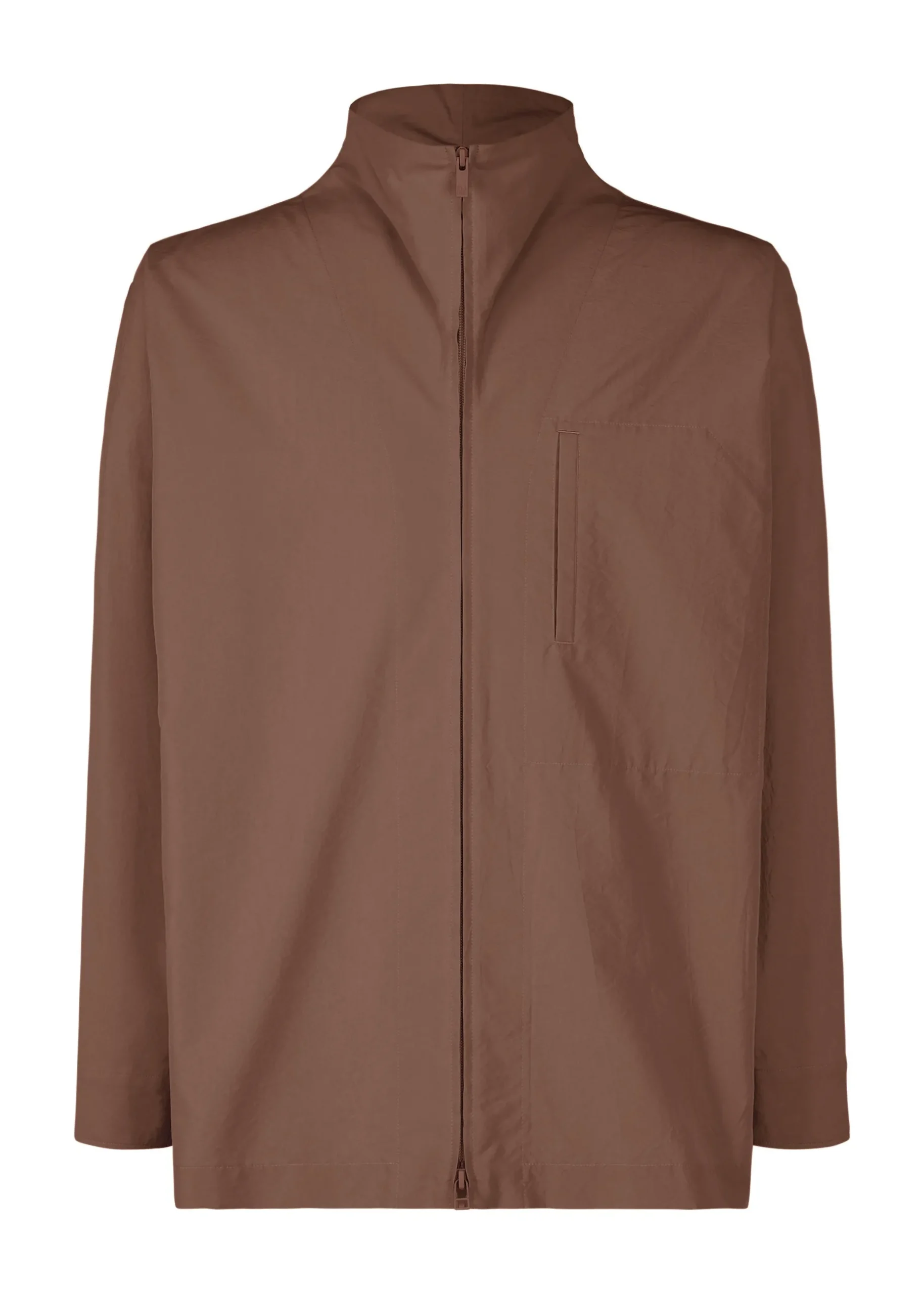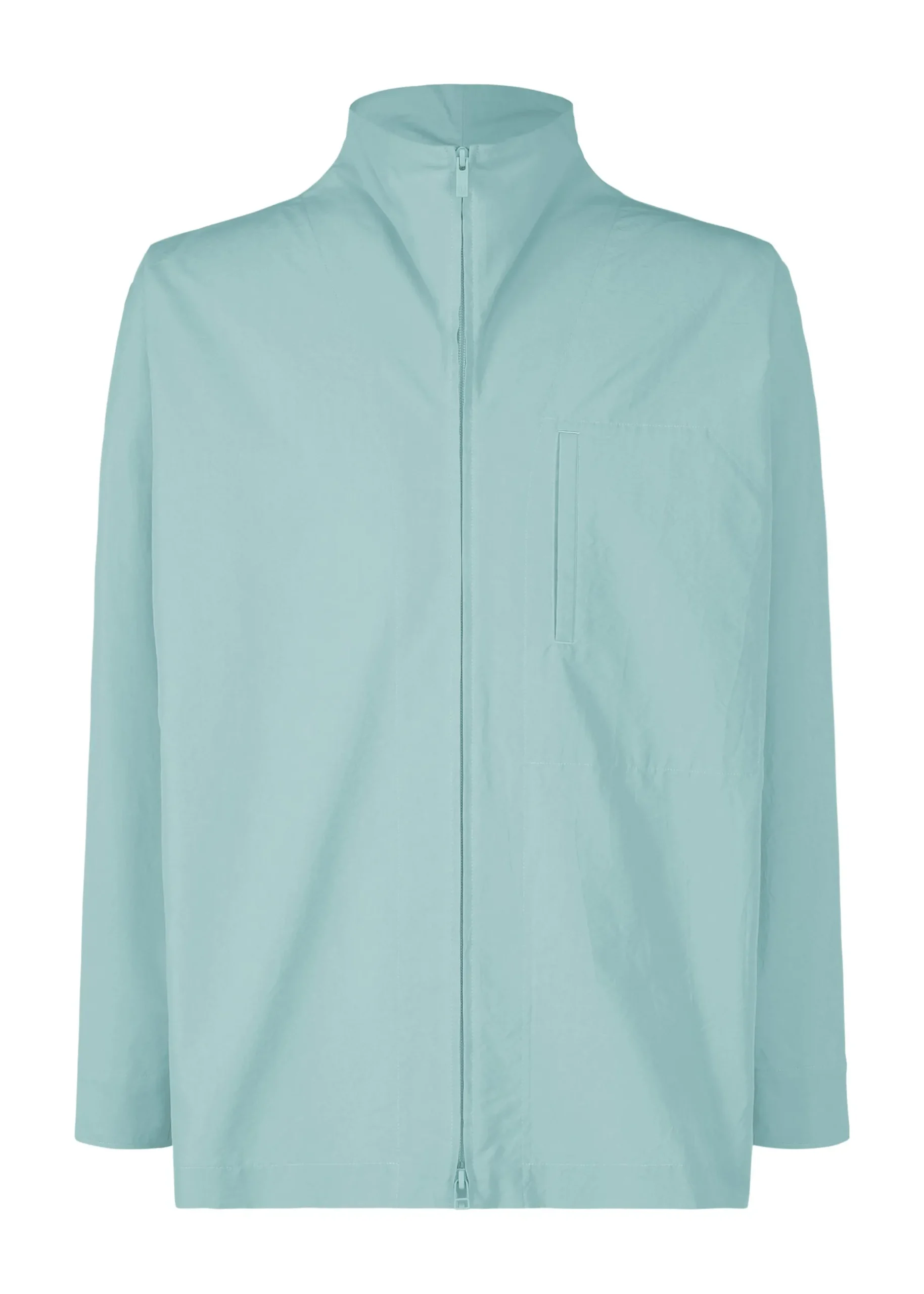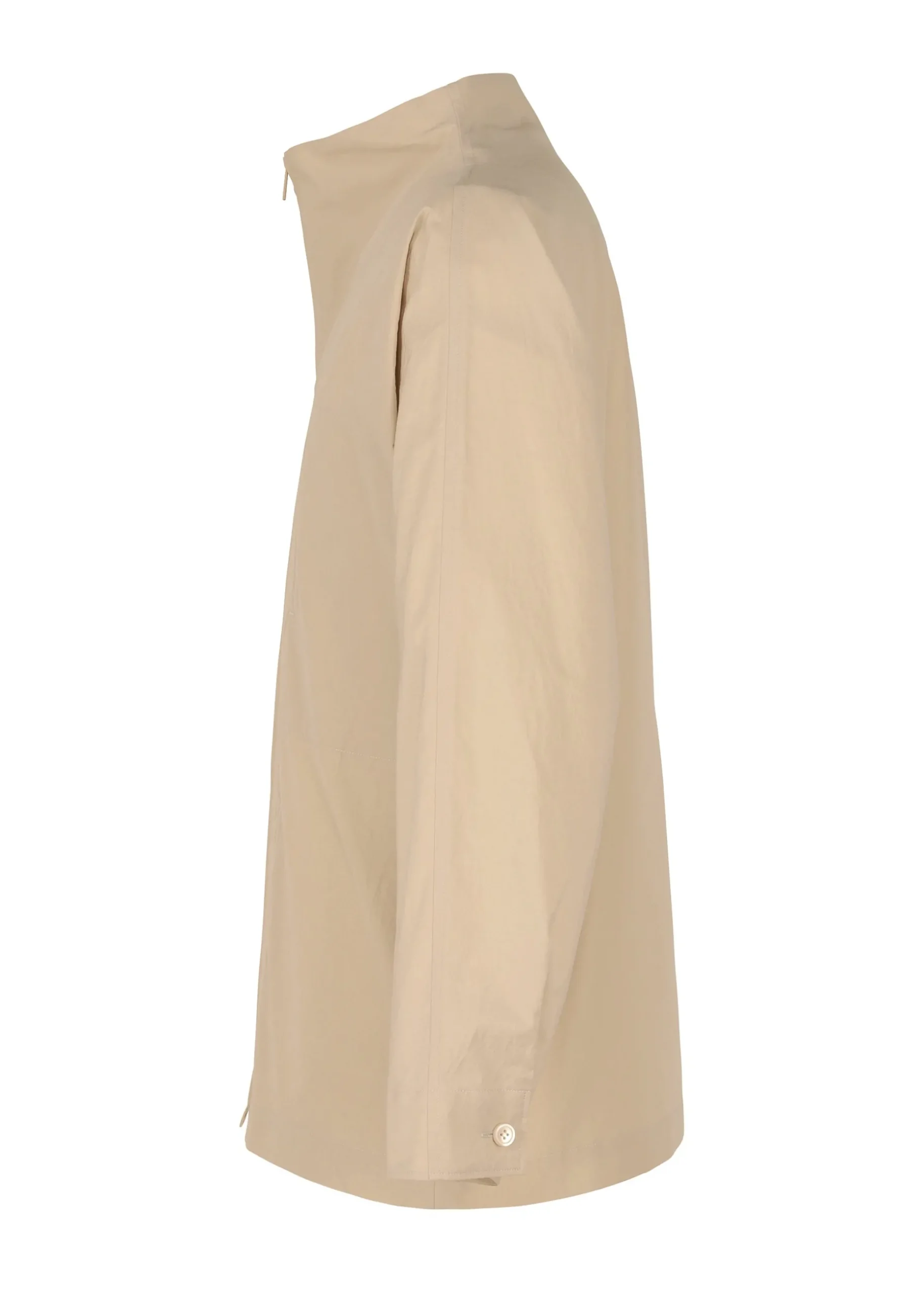 This long-sleeved shirt was inspired by the silhouette of a product created by designer/artist Ronan Bouroullec. It is made from cotton-polyester fabric characterized by its natural texture with a sun-dried finish. It has a double-zippered design and a left chest pocket.