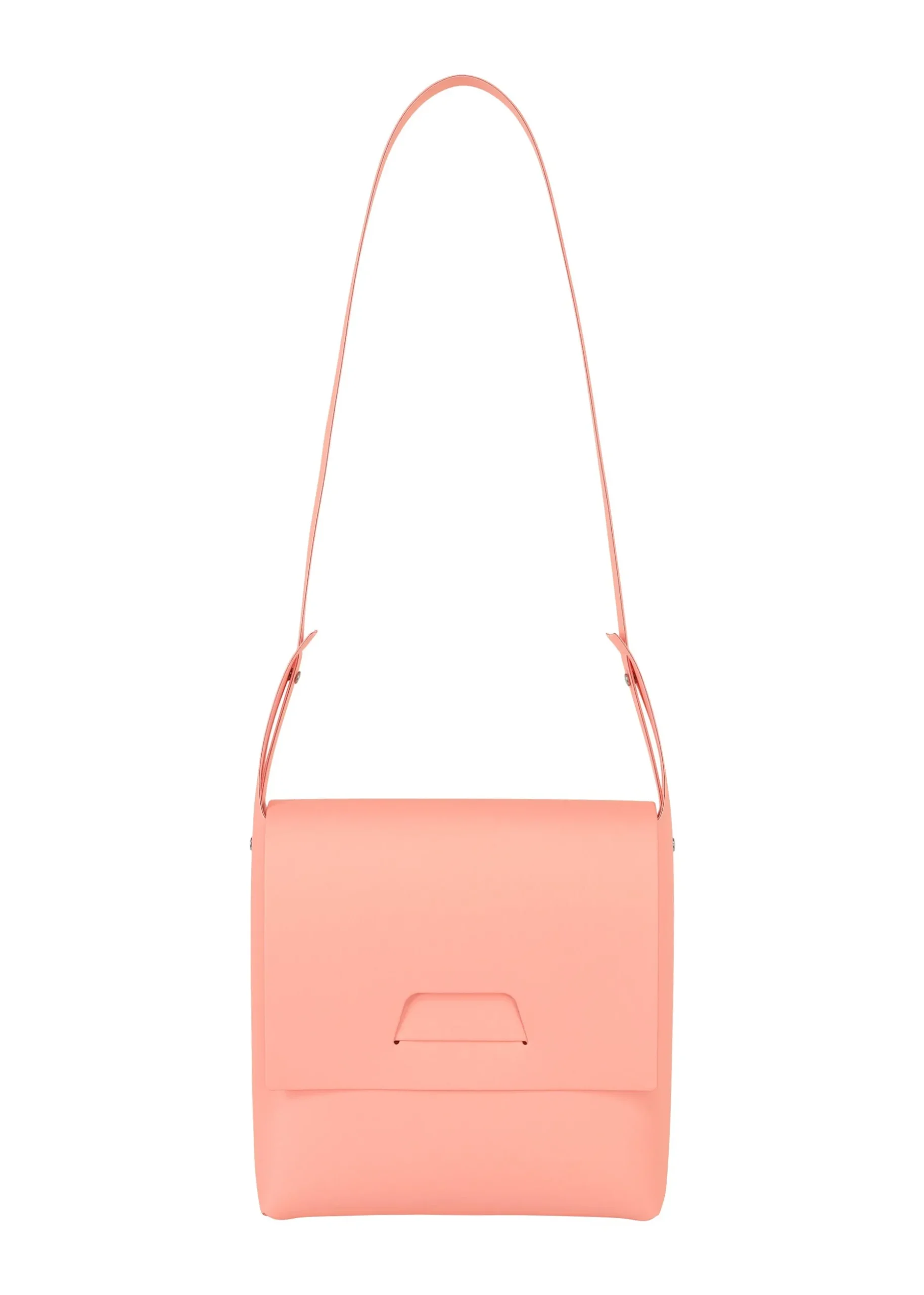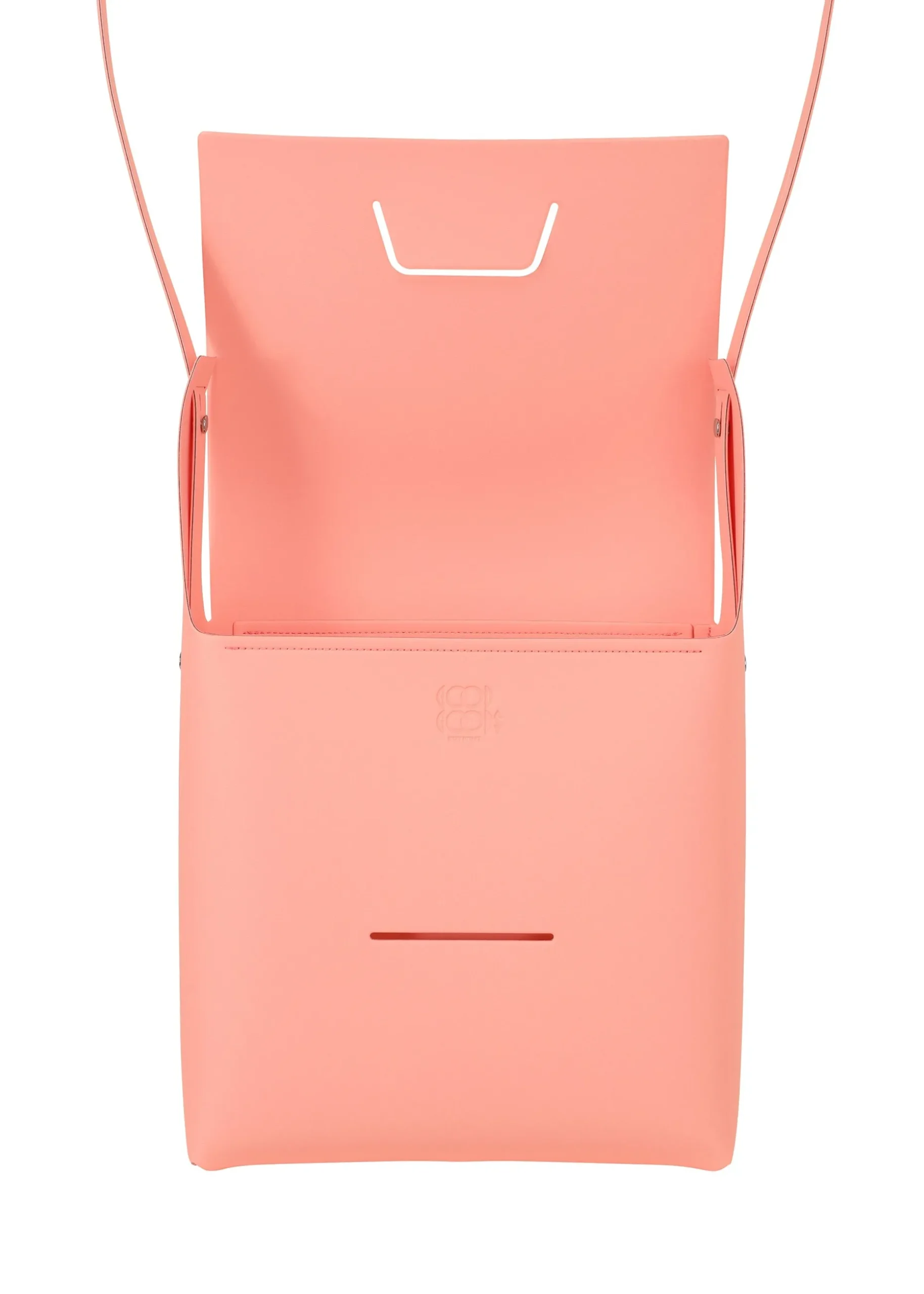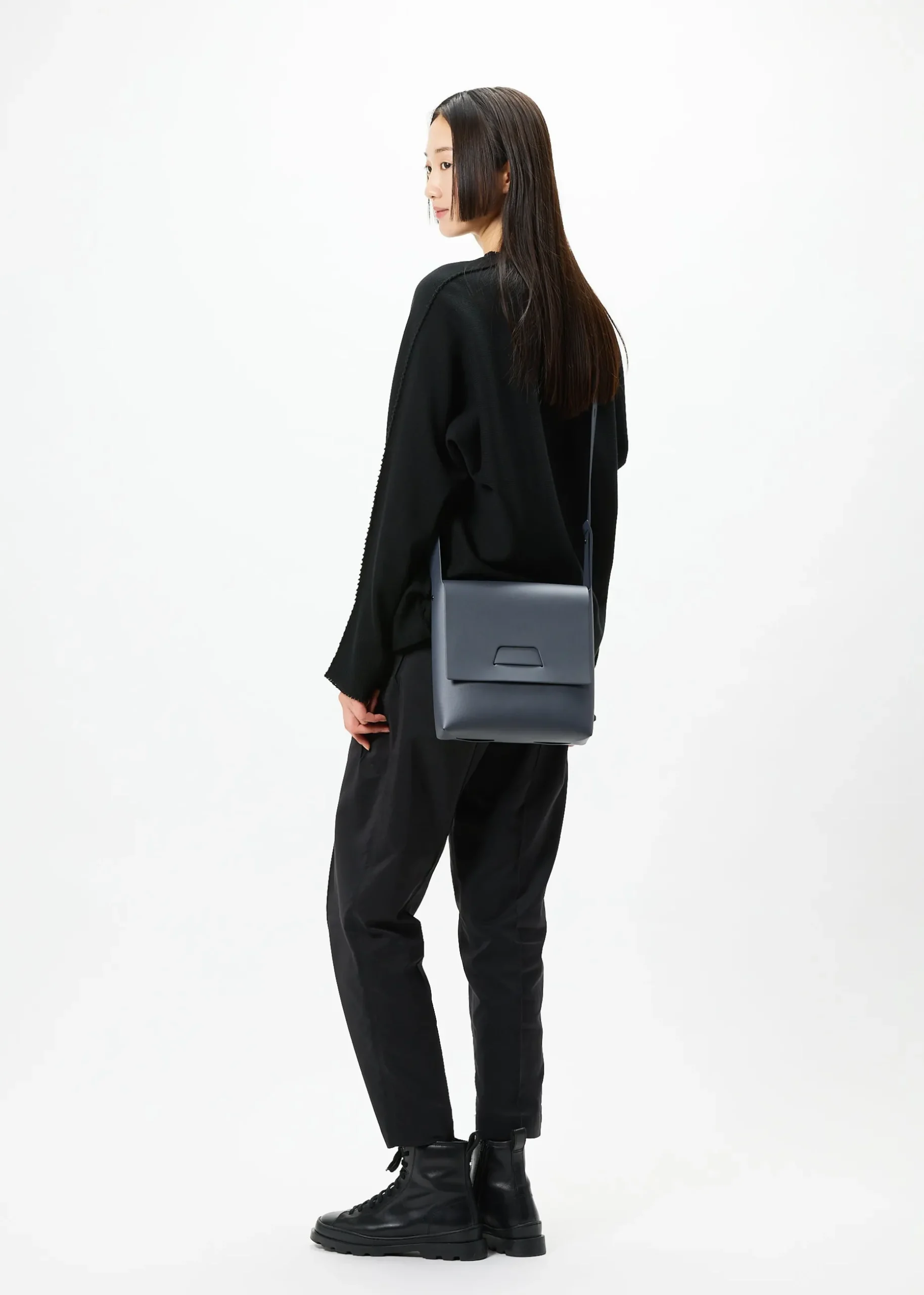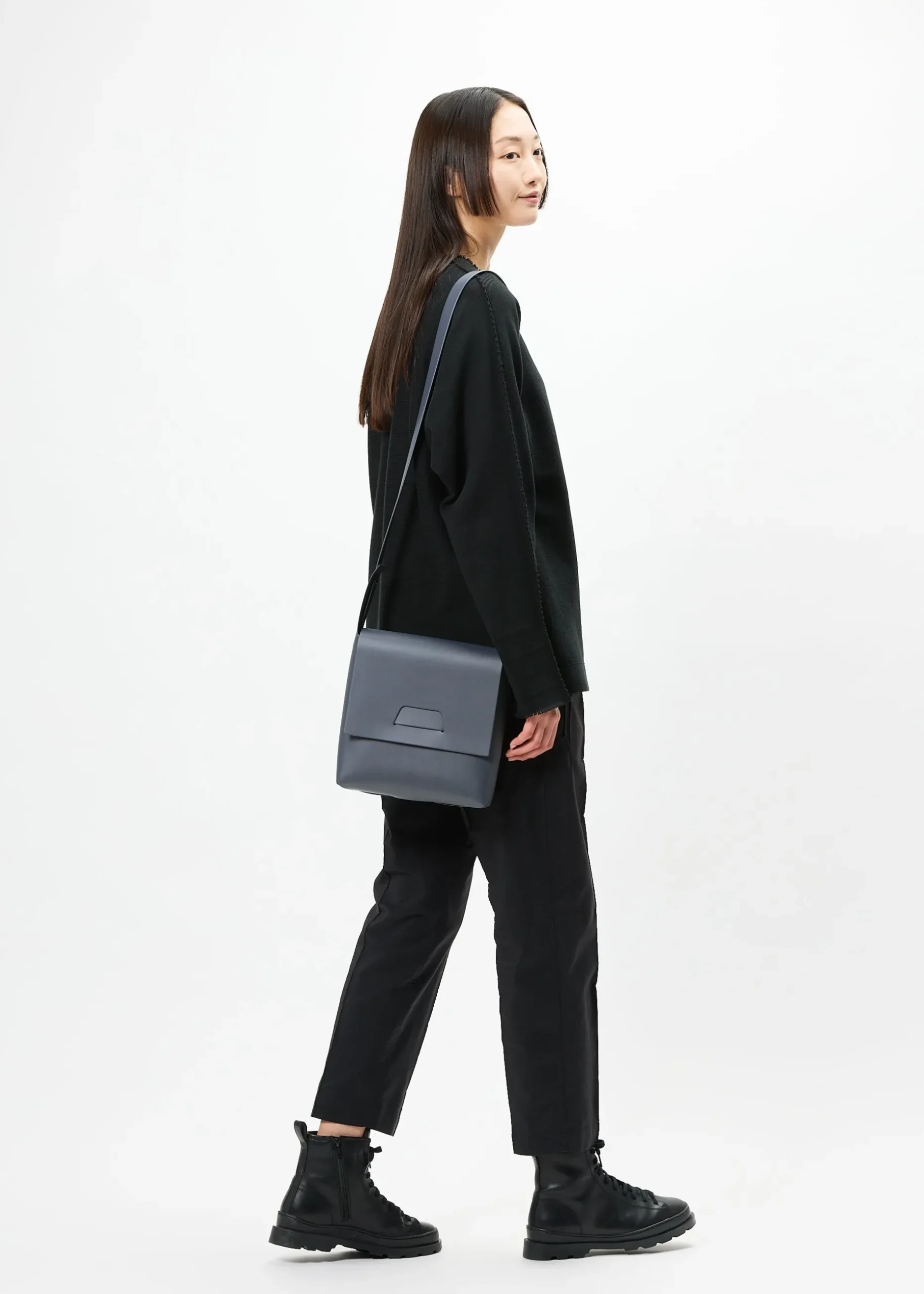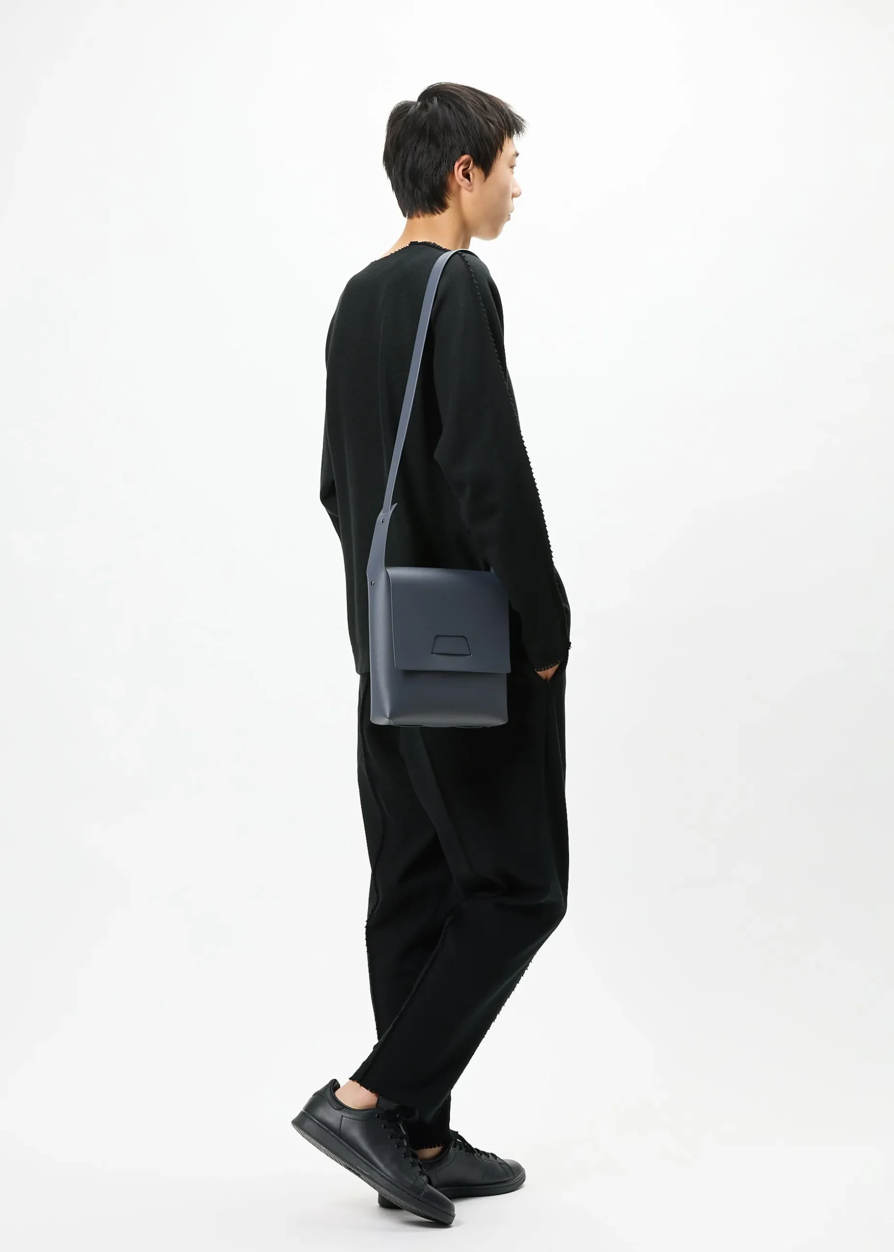 A series that looks at the “boxes” that we take for granted in everyday life from a new perspective and develops them into bags. The design was inspired by the simple structure of a box, which makes it easy to assemble into a three-dimensional structure and take contents in and out. It functions as a bag through simple cuts and insertions. When stored, it takes the form of a box and can be used as a bag by pulling out the strap. Two straps of different lengths are included, allowing you to use it as a shoulder bag or handbag depending on the occasion.