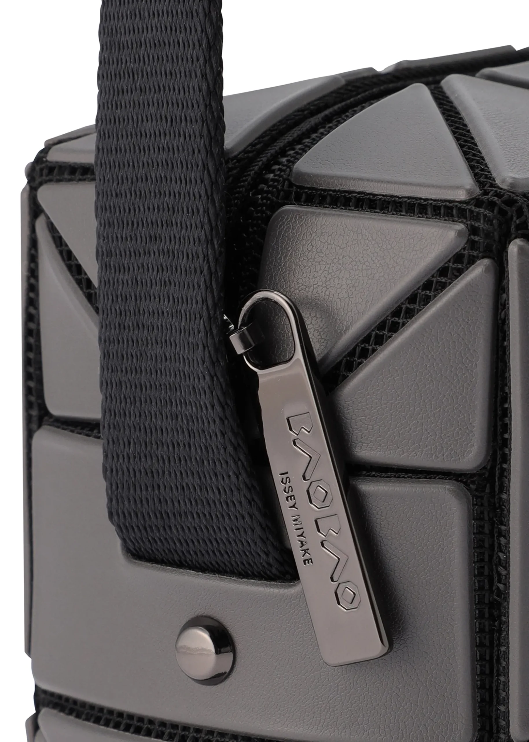 A shoulder bag featuring a rectangular parallelepiped made of triangular pieces. The pockets and zippers are hidden between the joints of the triangular pieces, giving it a minimalist look. The length of the belt can be adjusted using the internal metal fittings, allowing it to be used in a variety of styles while maintaining a minimalist look.
