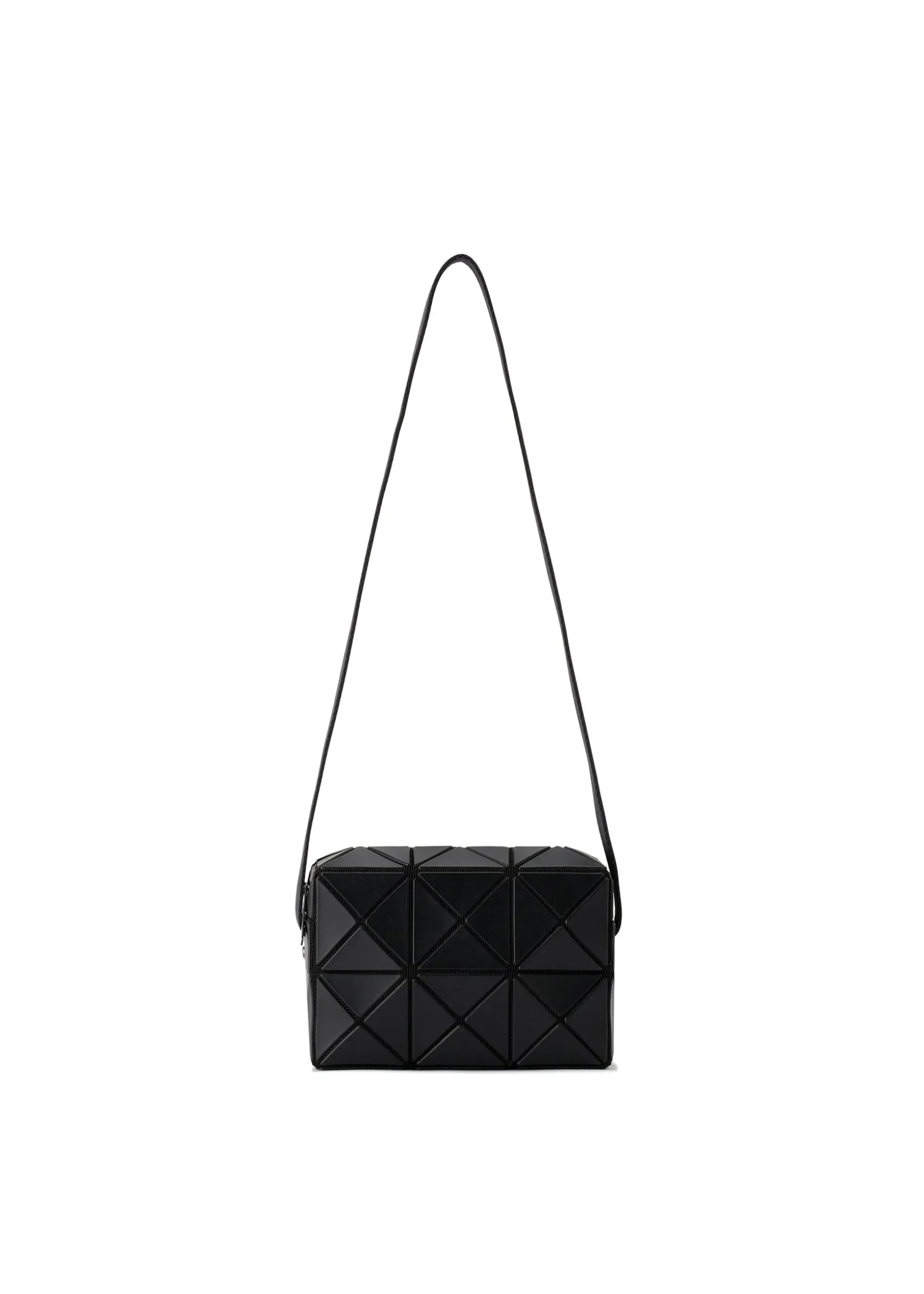 A shoulder bag featuring a rectangular parallelepiped made of triangular pieces. The pockets and zippers are hidden between the joints of the triangular pieces, giving it a minimalist look. The length of the belt can be adjusted using the internal metal fittings, allowing it to be used in a variety of styles while maintaining a minimalist look.