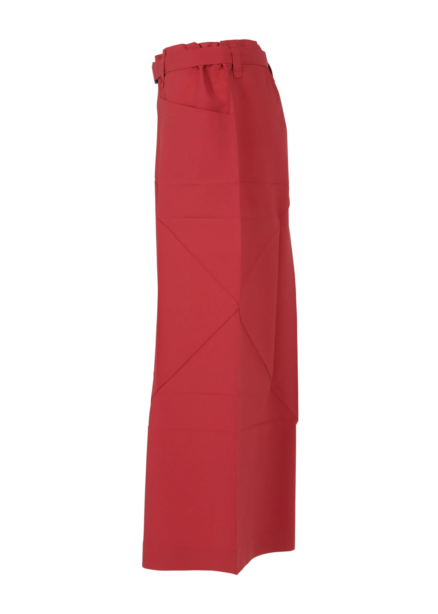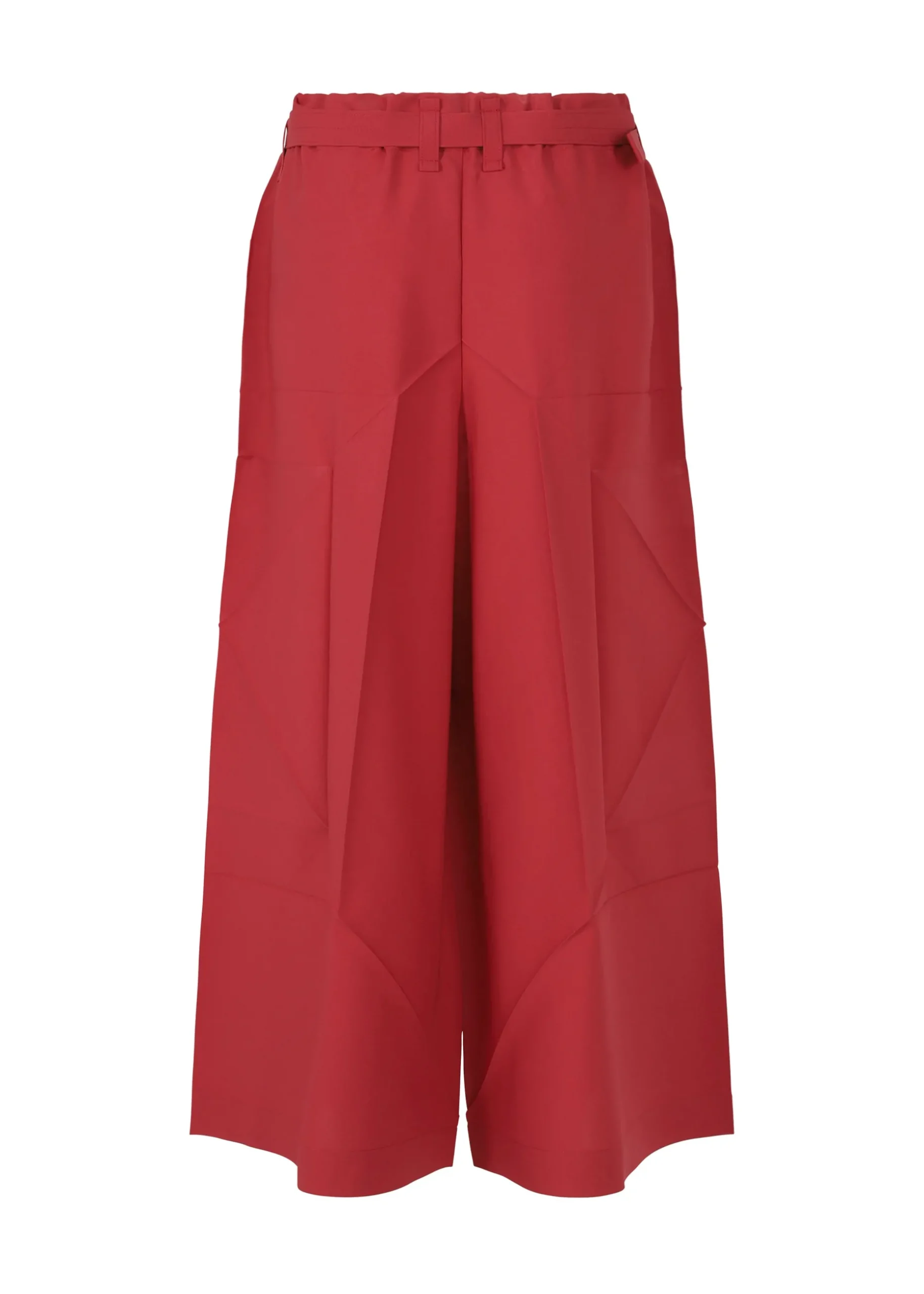 These pants feature a combination of mountain and valley folds, which create quadrilateral edges that stand out when worn.The waist can be adjusted with the included belt.