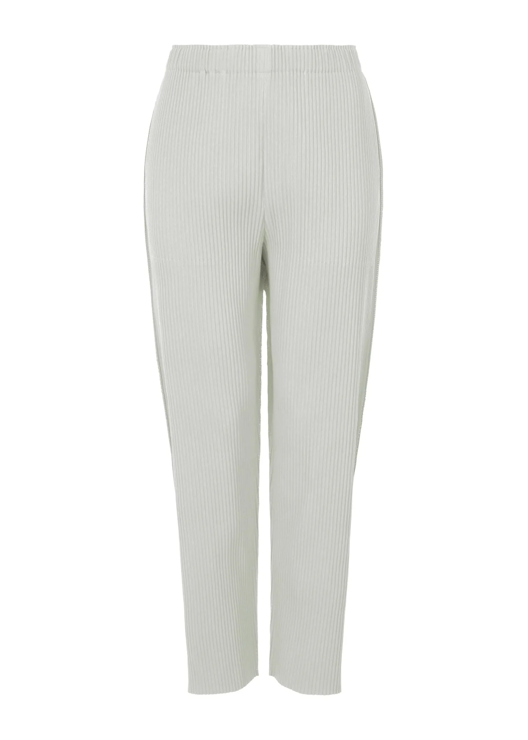 Fine knit pleated straight pants that are lightweight and soft to the touch, made with a pleated knit made from thin, soft yarn with stretch properties. There are pockets on both sides.