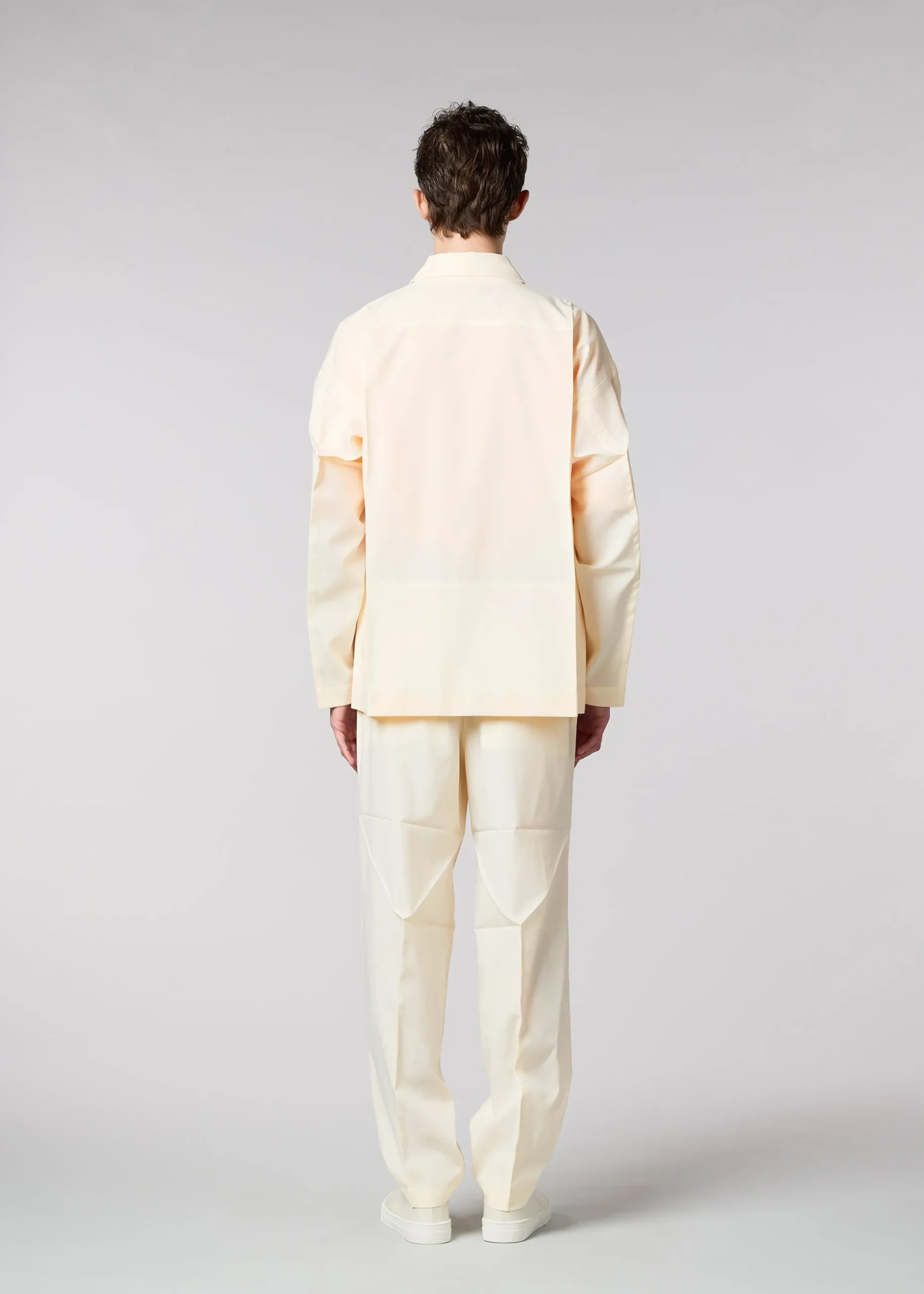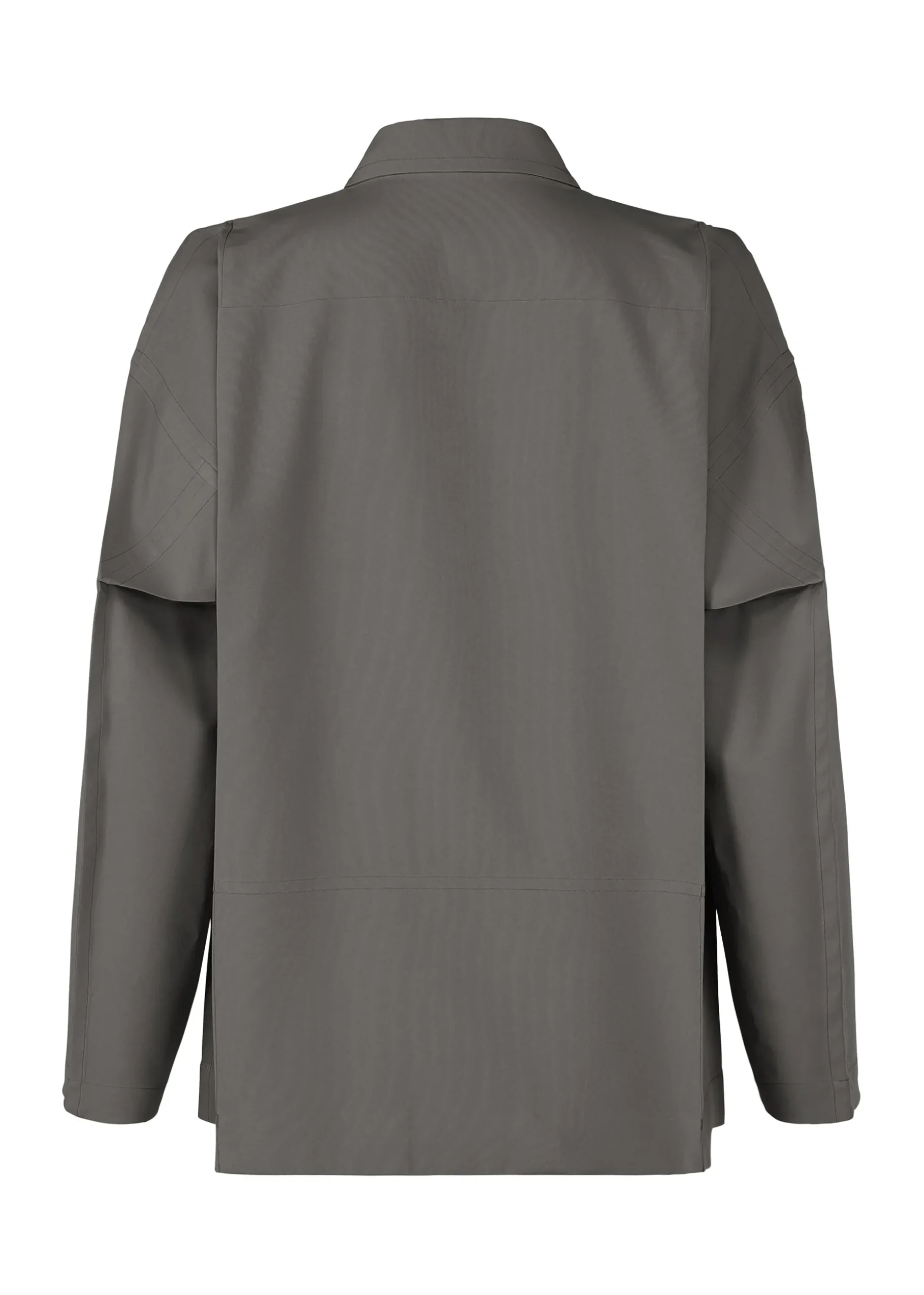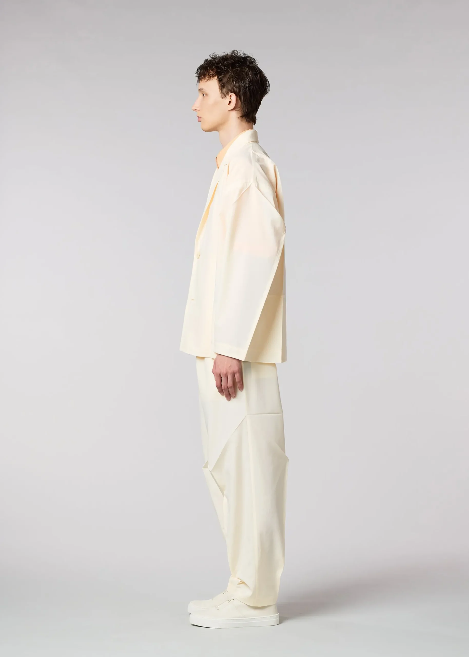 A series of jackets that applies the technology of folding three-dimensional objects to a flat surface in clothing design. You can carry it compactly by folding it into the pocket on the back of the hem. It is characterized by a textile that is easy to fold and wrinkle resistant, adapted to the design. The pressed lines guide the folding during storage and accentuate the edges of the structure while following the body when worn.