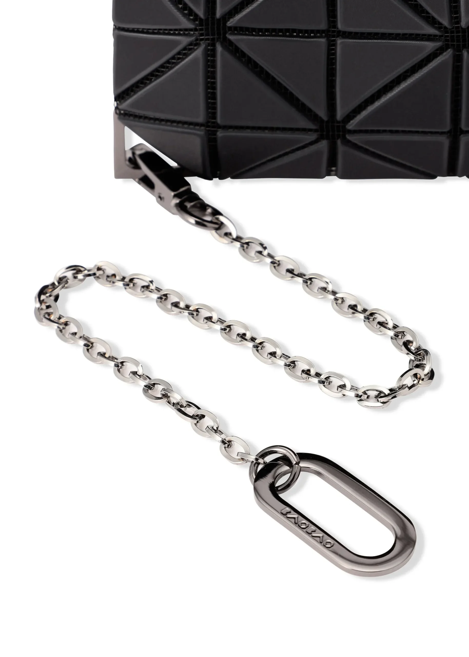 Triangular metal fittings placed in the corners or a pass case that accents the design. Comes with a convenient chain that makes it easy to take out from the bag. It is large enough to store commuter passes, business cards, etc.
