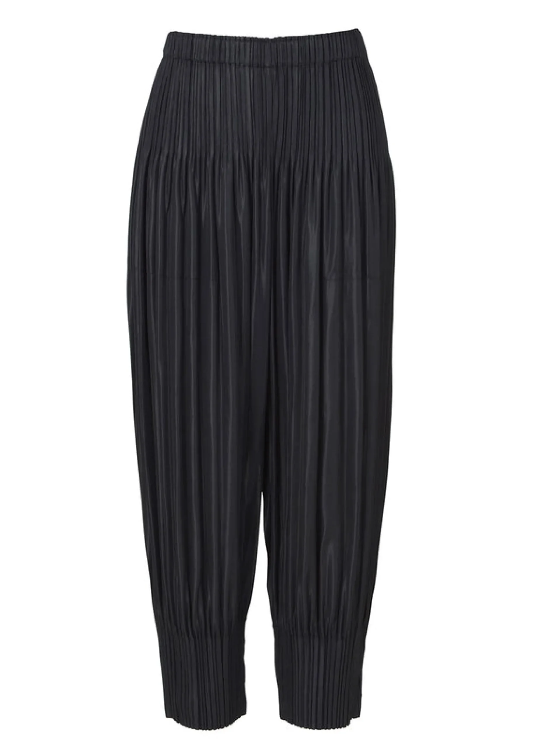 These pants have a pleated finish.