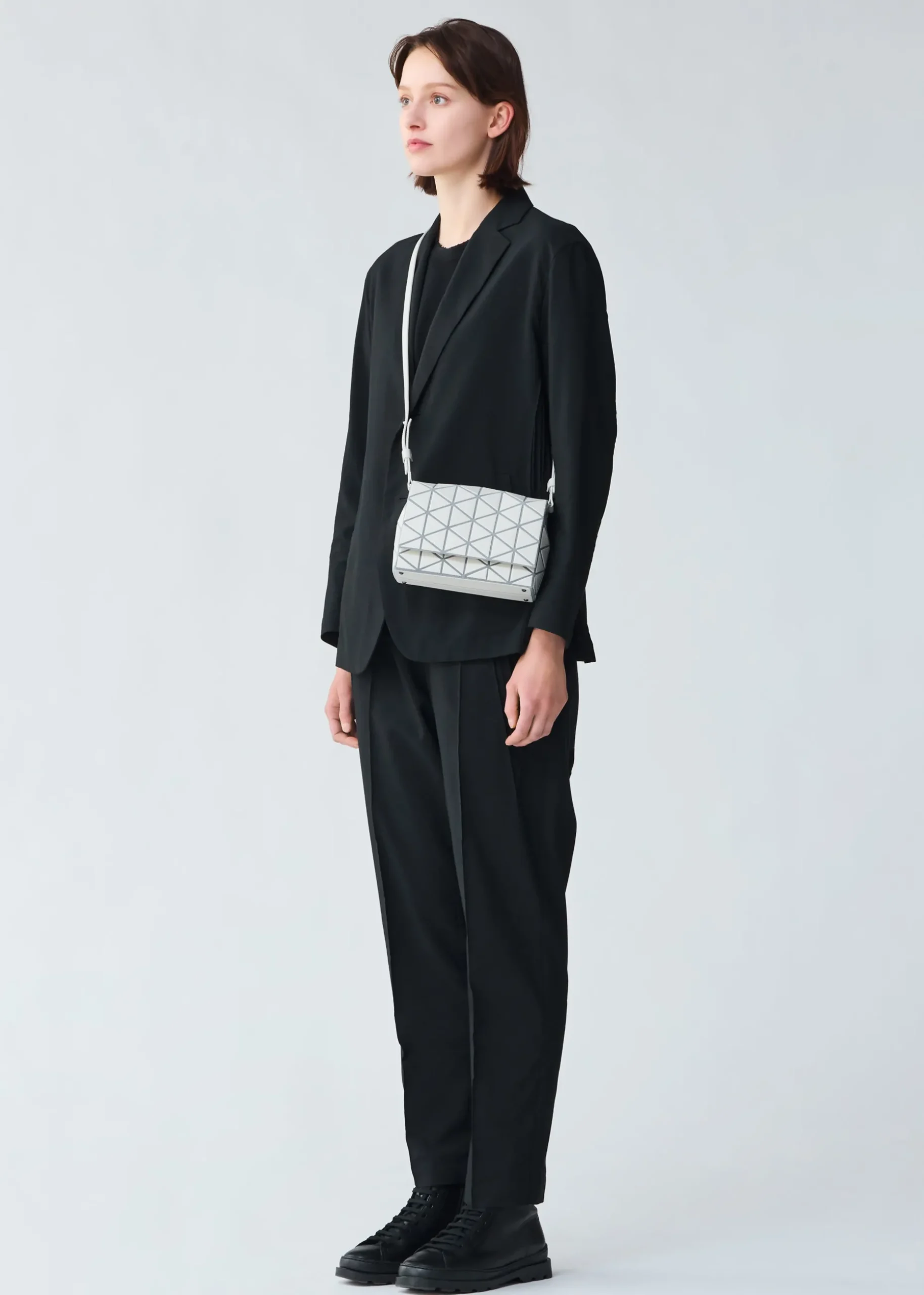 This small bag that can be used in two ways is made from leather-like matte material. It comes with two straps of different lengths, allowing it to be used as a handbag or crossbody bag. Although the bag has a simple boxy shape, this is a functional series with an outer pocket on the back for storing small items that are frequently taken in and out, as well as a magnet at the opening angled to make it easy to open and close.
