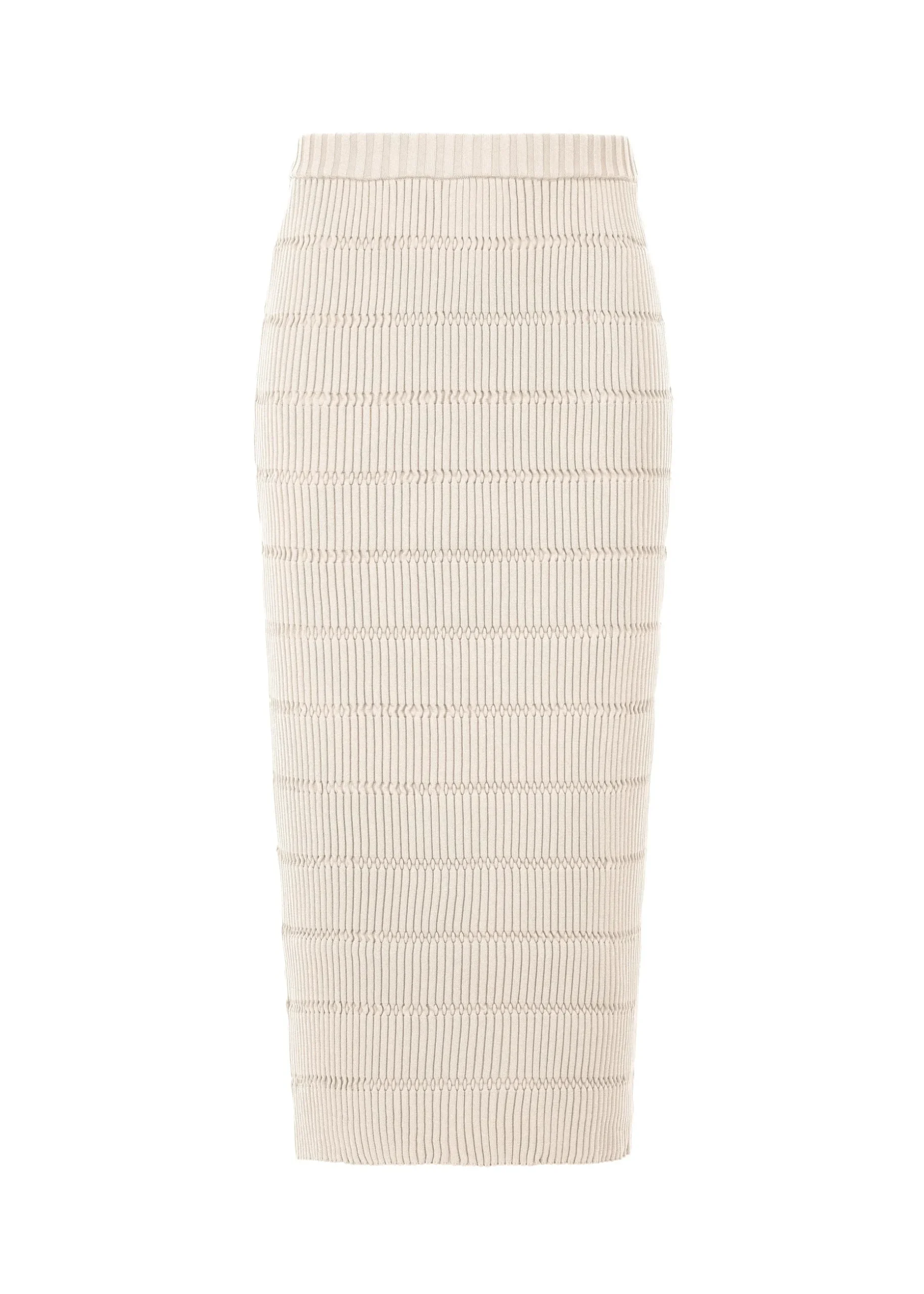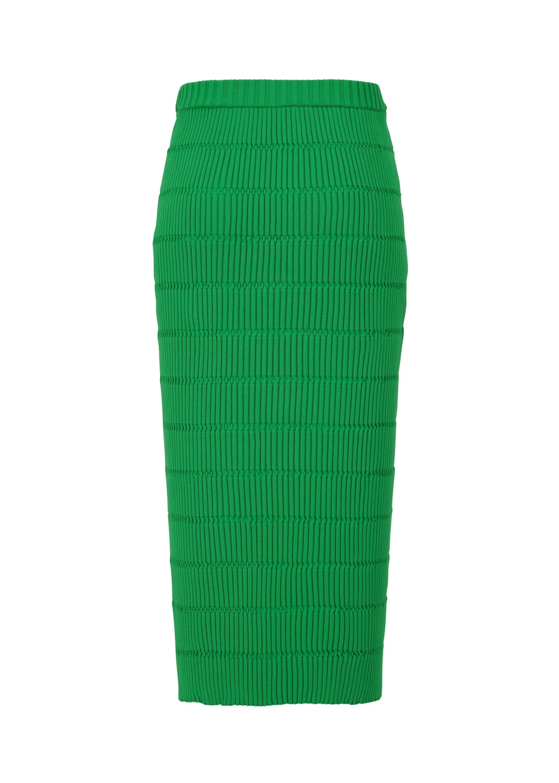 This knit skirt expresses regular pleats with its knitting structure. It is made with recycled polyester in pursuit of fluffy softness. It is characterized by the folded look of the front that flutters when worn.