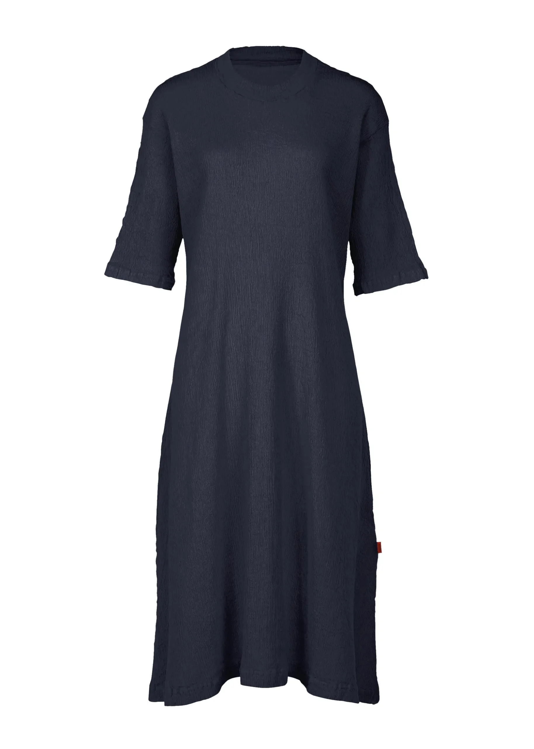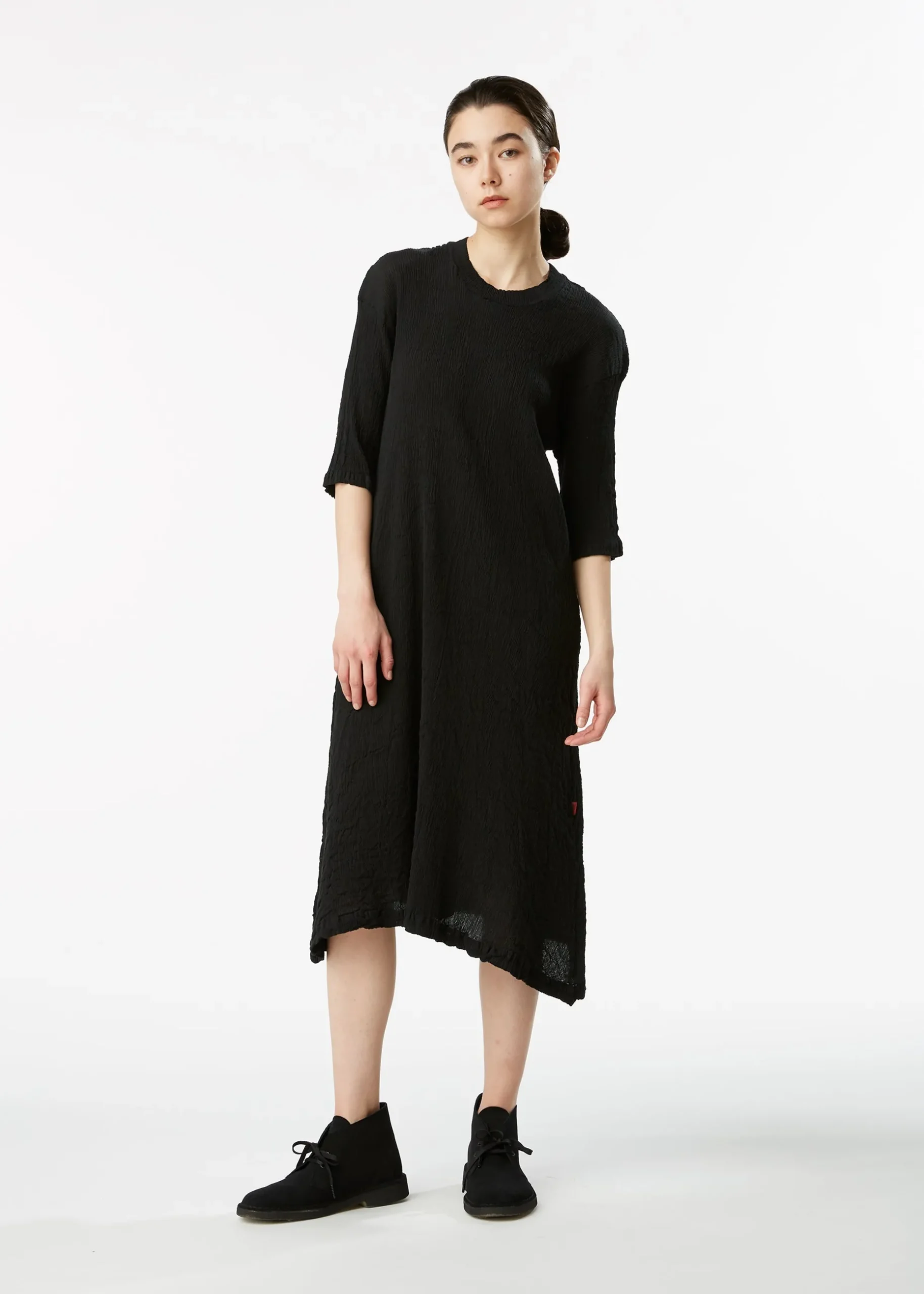 KYO CHIJIMI’s round neck half-sleeve dress is characterized by its light and supple feel. We use ultra-fine cotton threads that are made by twisting the normal highly twisted threads, and weave them using looms unique to the region where they are produced.