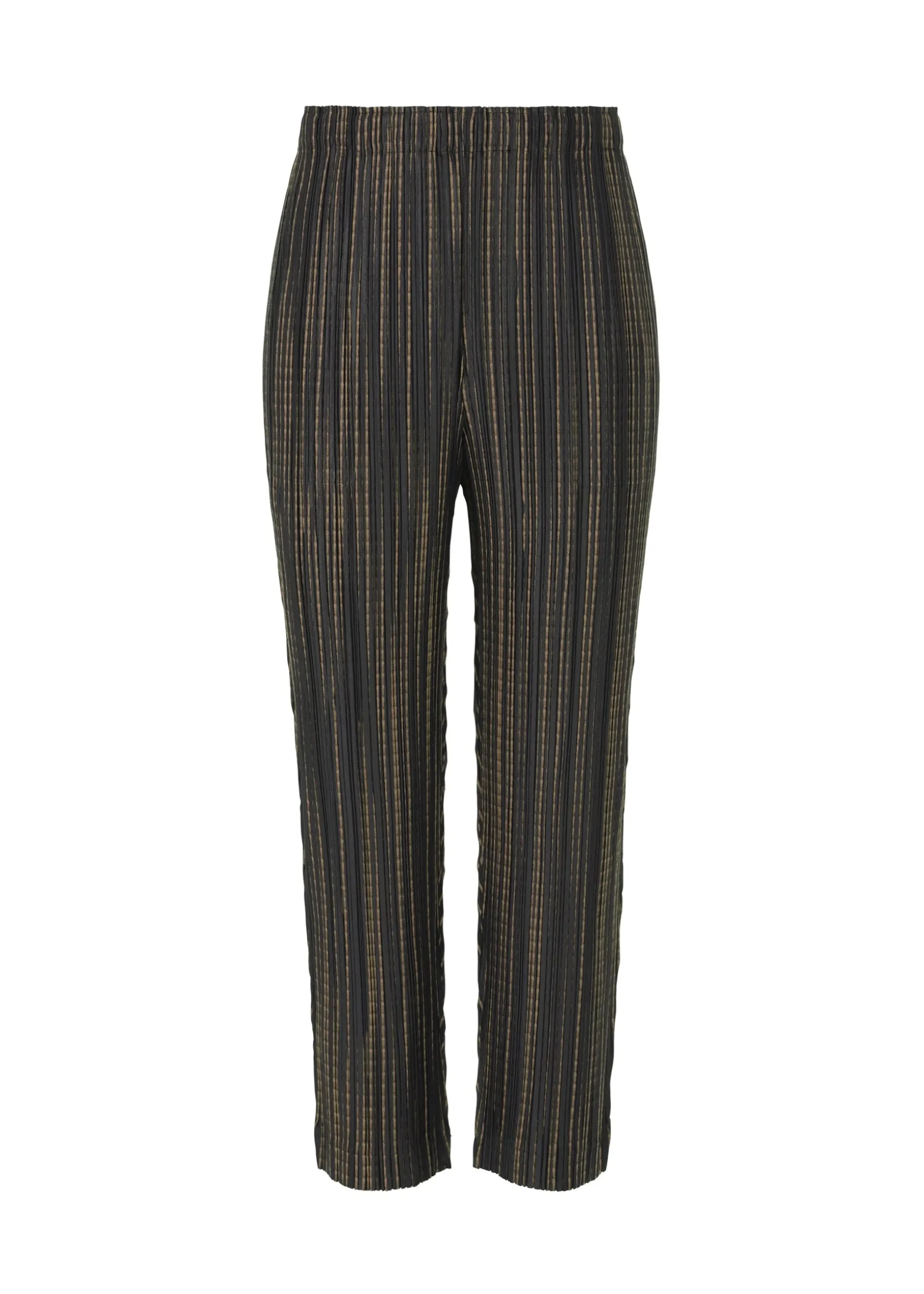 These thin pants are from a cotton blend series characterized by its stripe pattern that resembles a meteor shower. They have pockets on both sides.