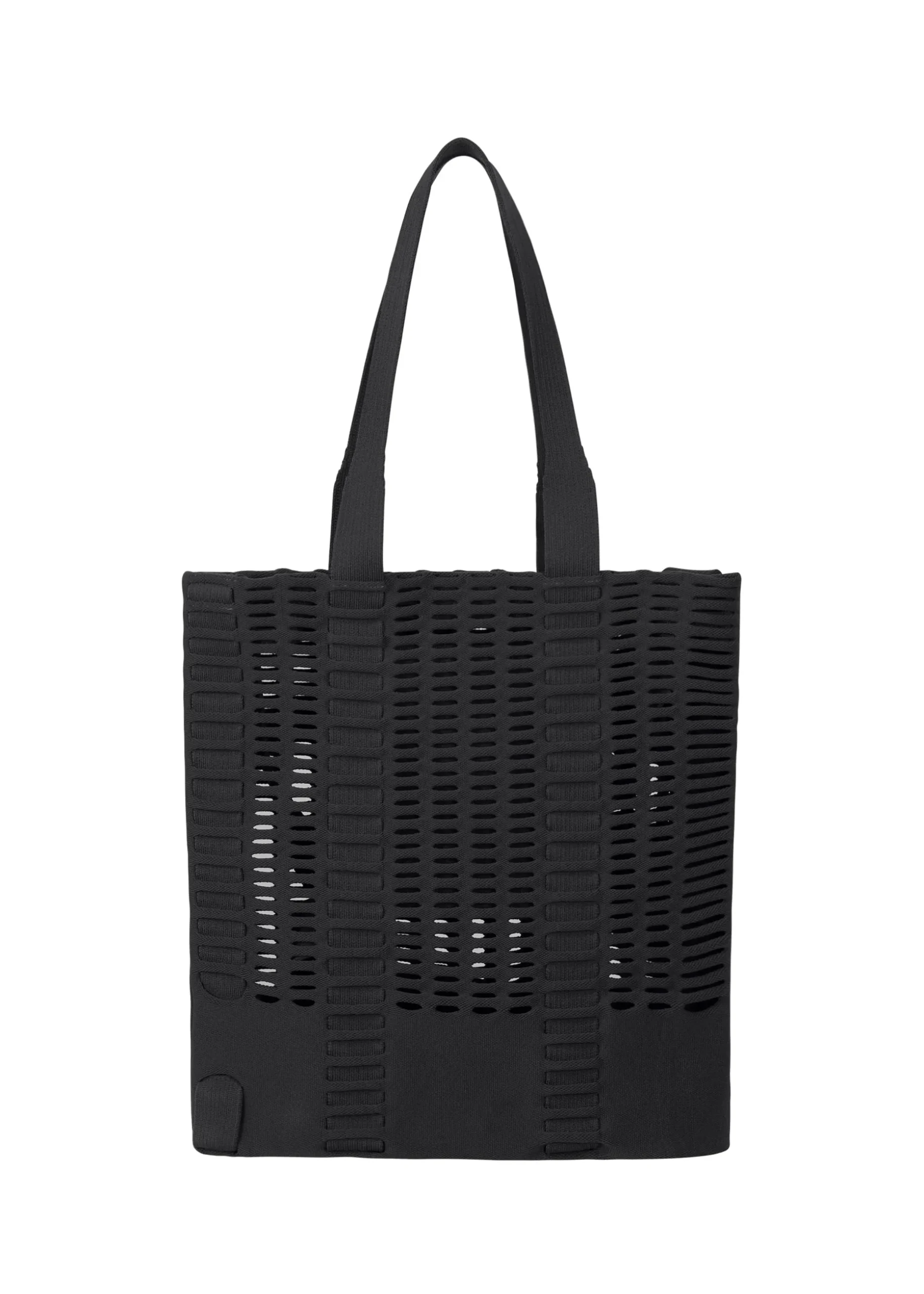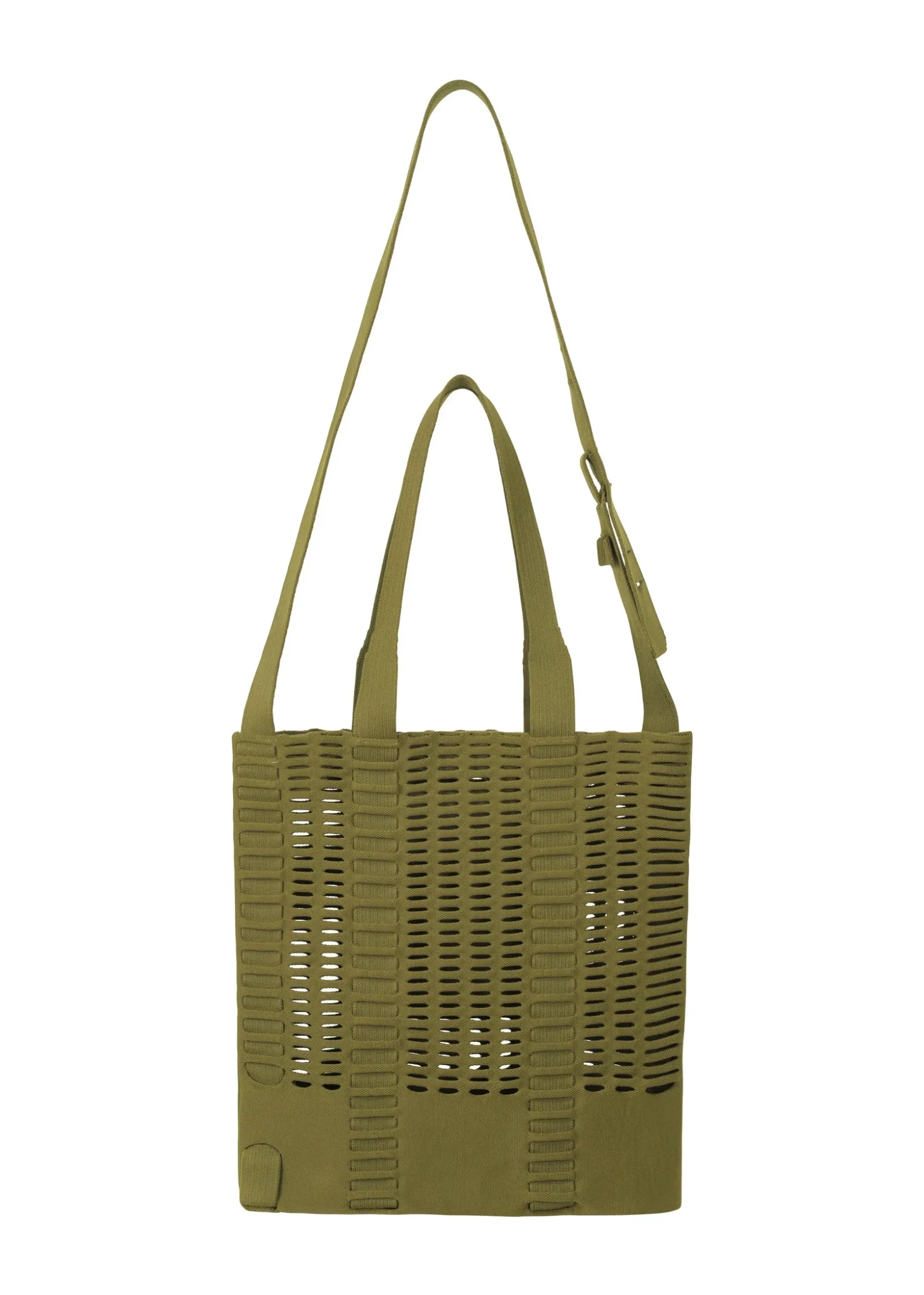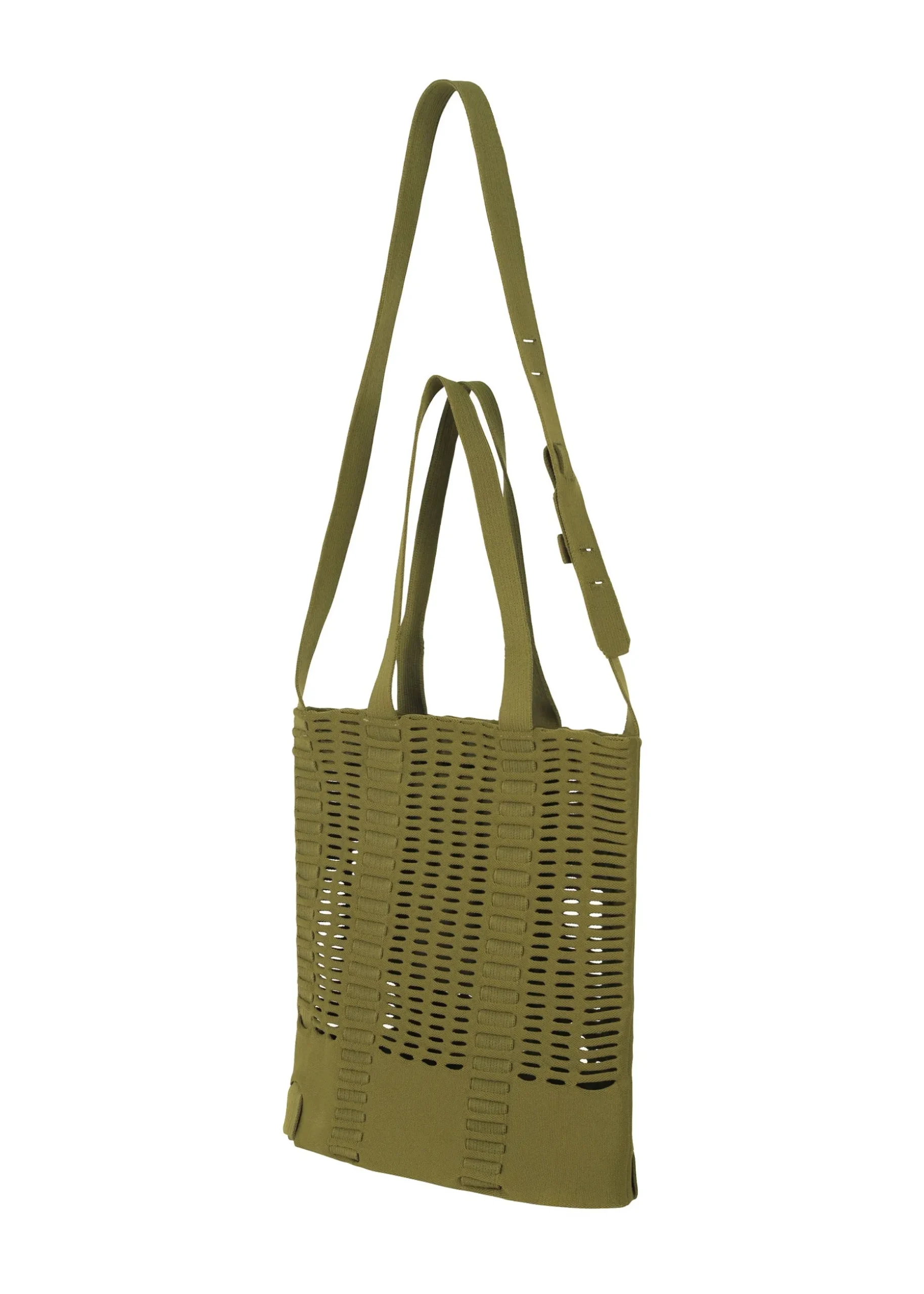 MOKKO series tote bag that is easy to use even in business situations. The fabric, which uses heat-fused thread, does not easily lose its shape and can securely store documents, PCs, and other items. There is also an inner pocket woven together with the main body. It also features a streamlined design that takes advantage of MOKKO’s unique weave, with the handle and shoulder tape passed through slits. The knitted tape is woven using the same thread as the main body, and fits perfectly to the body, and the length can be adjusted in three stages.