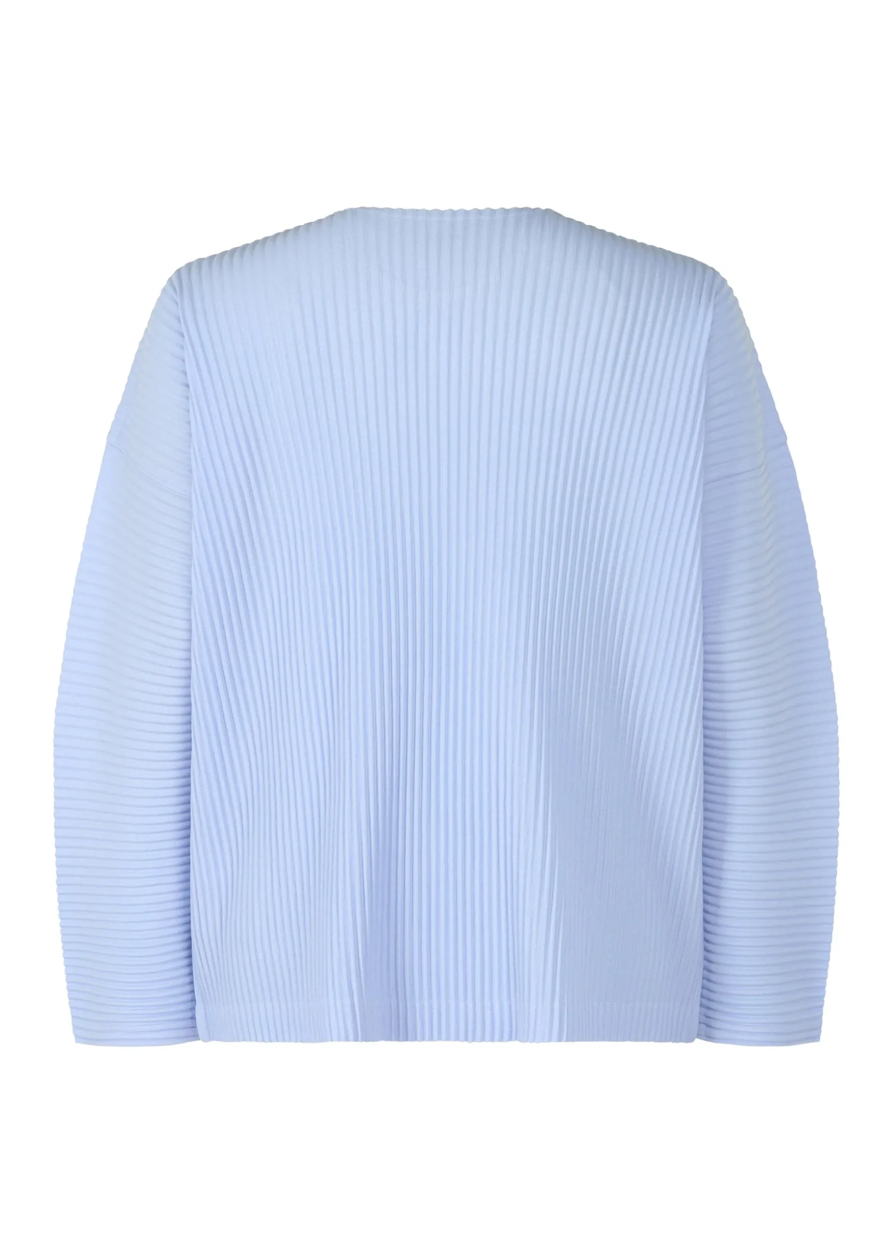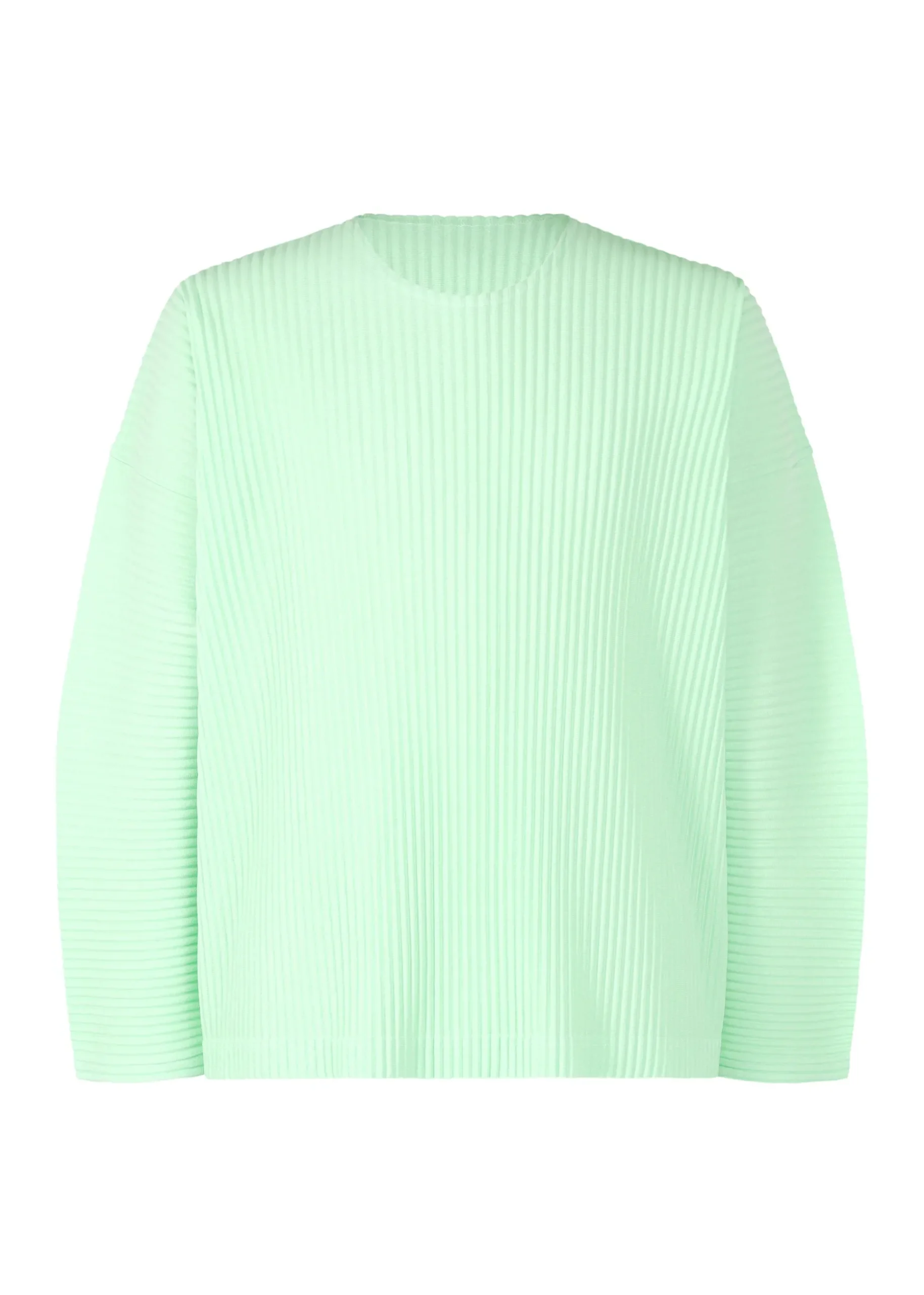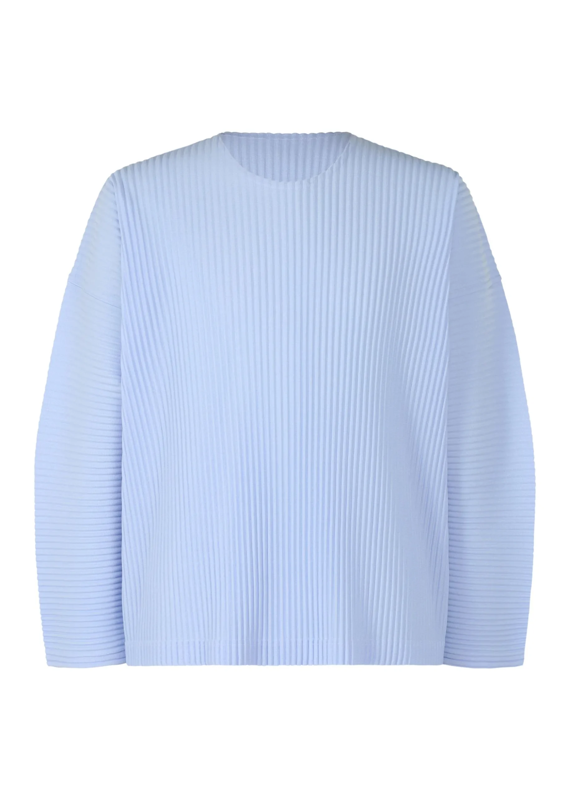This round-neck, long-sleeved top is available in refreshing color tones. It is characterized by its portability and light comfort with the unique quick-drying property of polyester material. The sleeves feature horizontal pleats, giving the top a rounded, soft appearance.