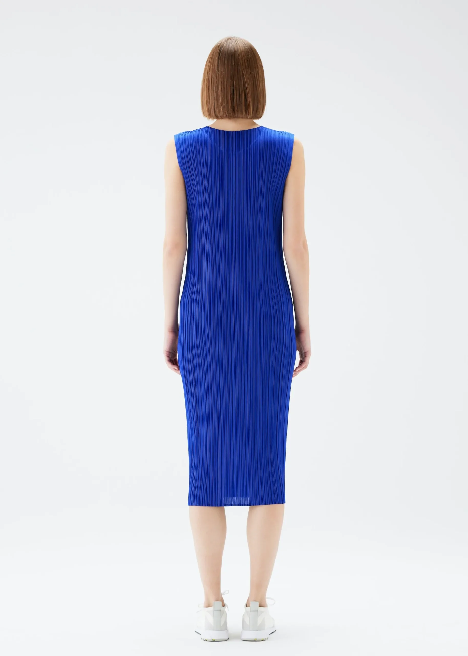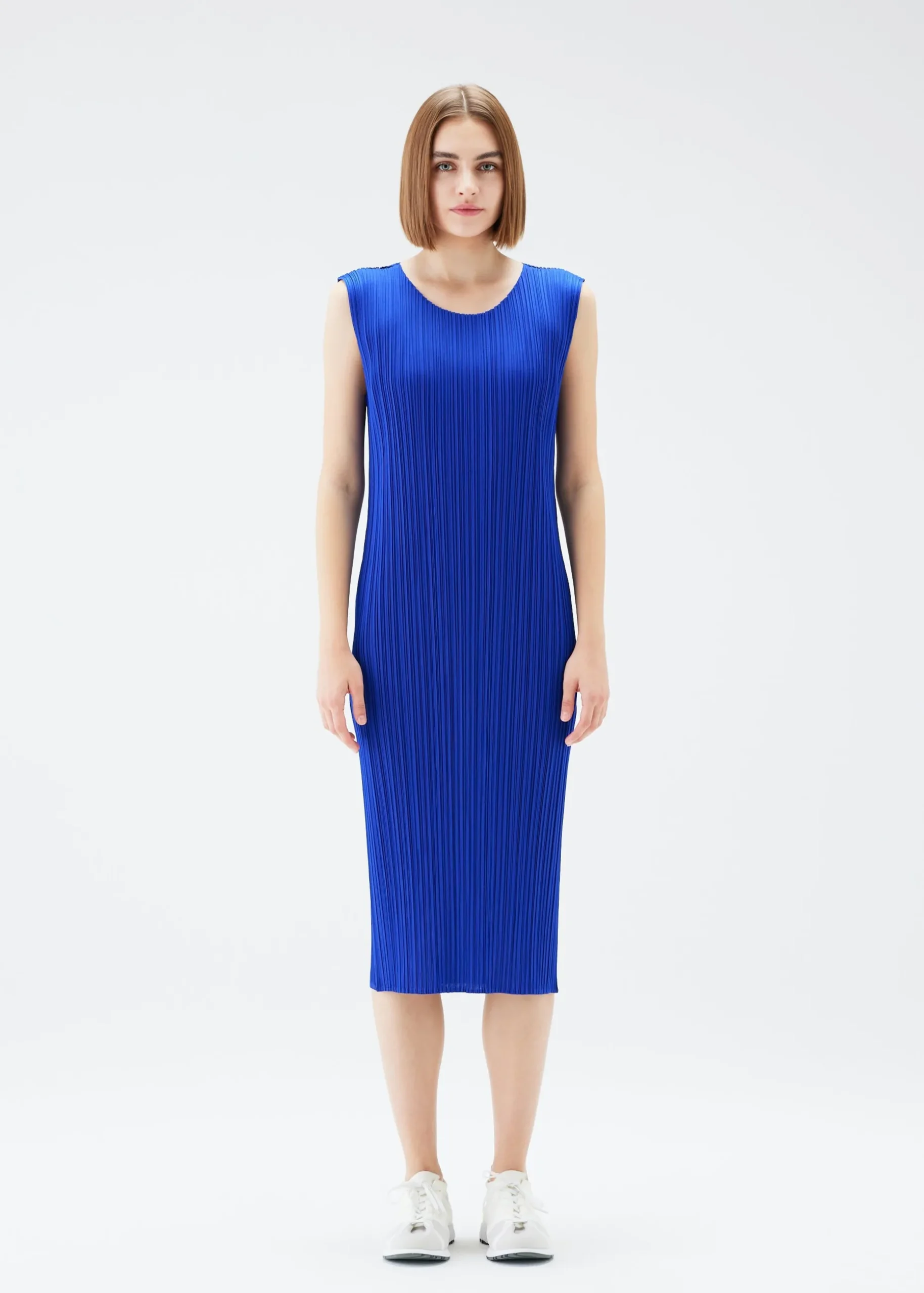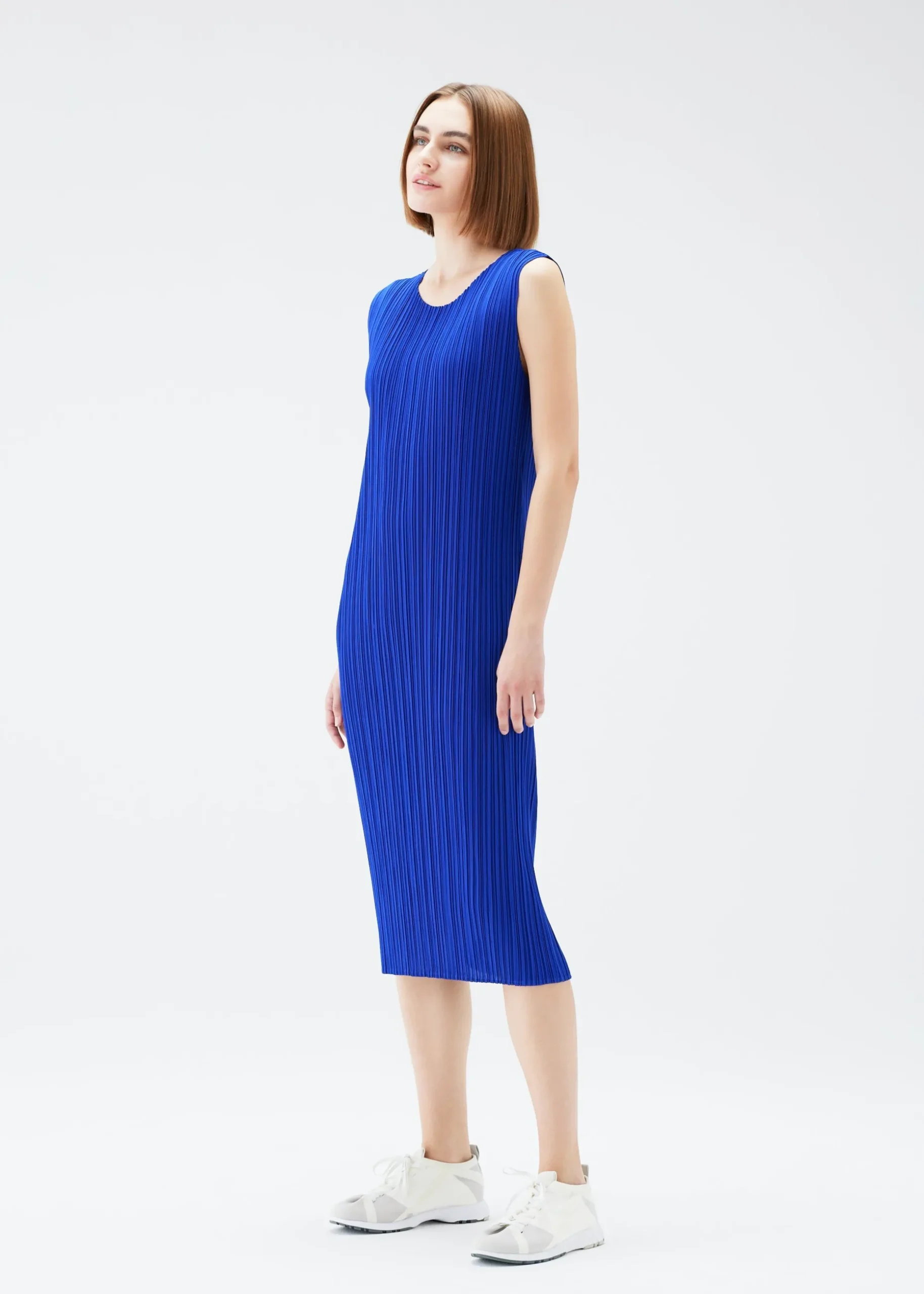 This round-neck, sleeveless dress is available in colors reminiscent of the white smoke from a space shuttle launch and the blue and orange layers of the atmosphere.