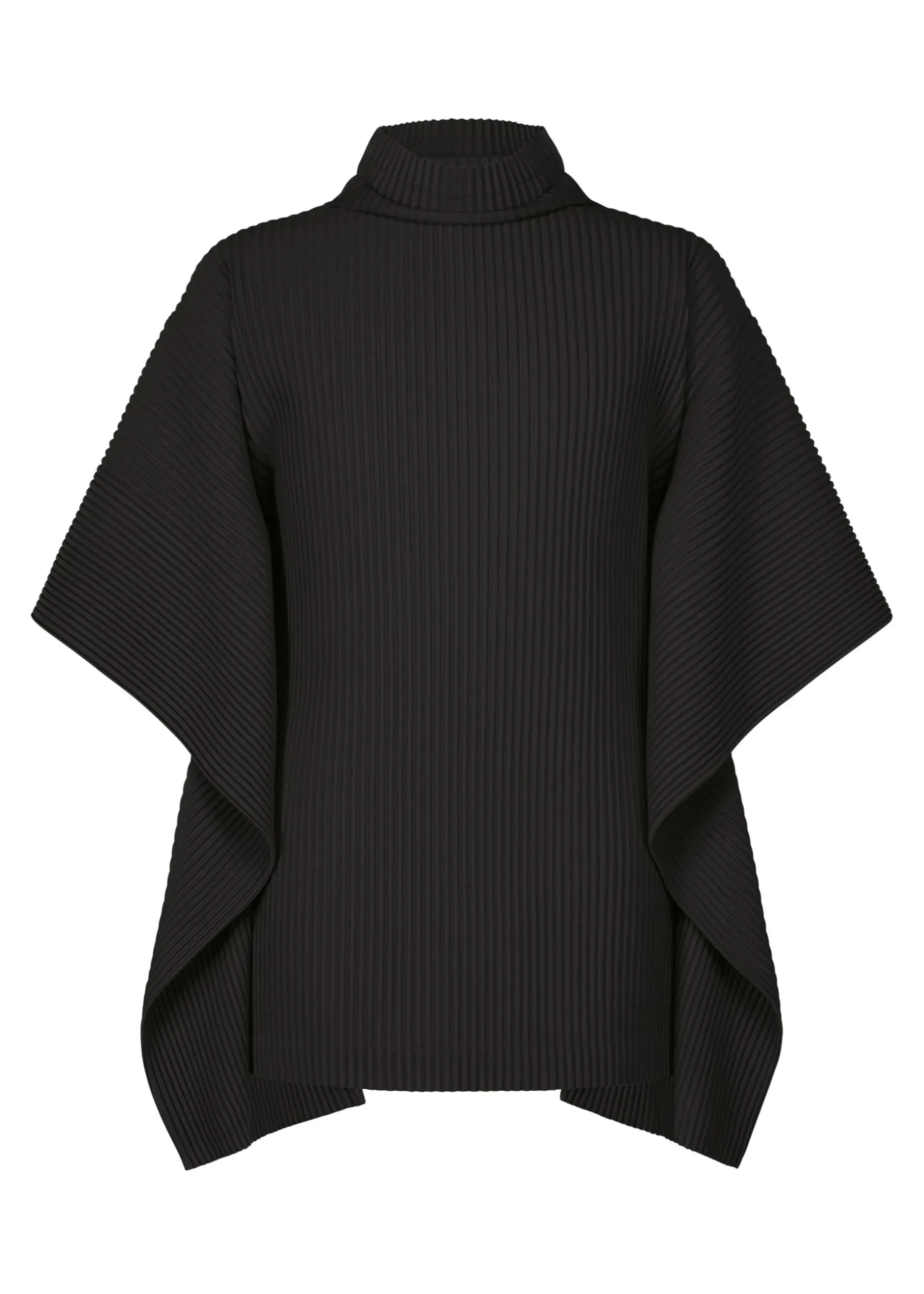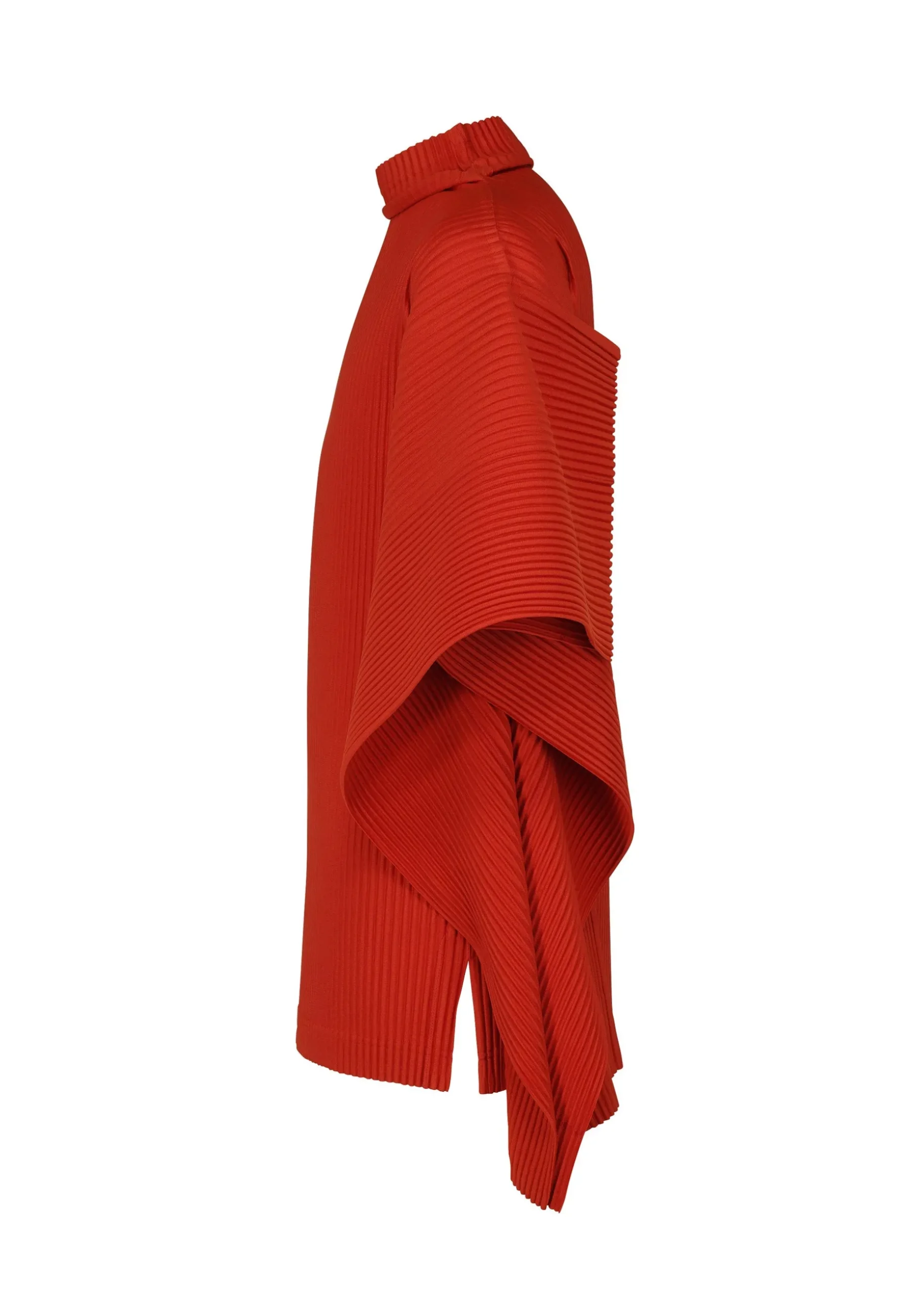 This pleated shirt has a slim fit with dramatic draped three-quarter length sleeves and a high neck.