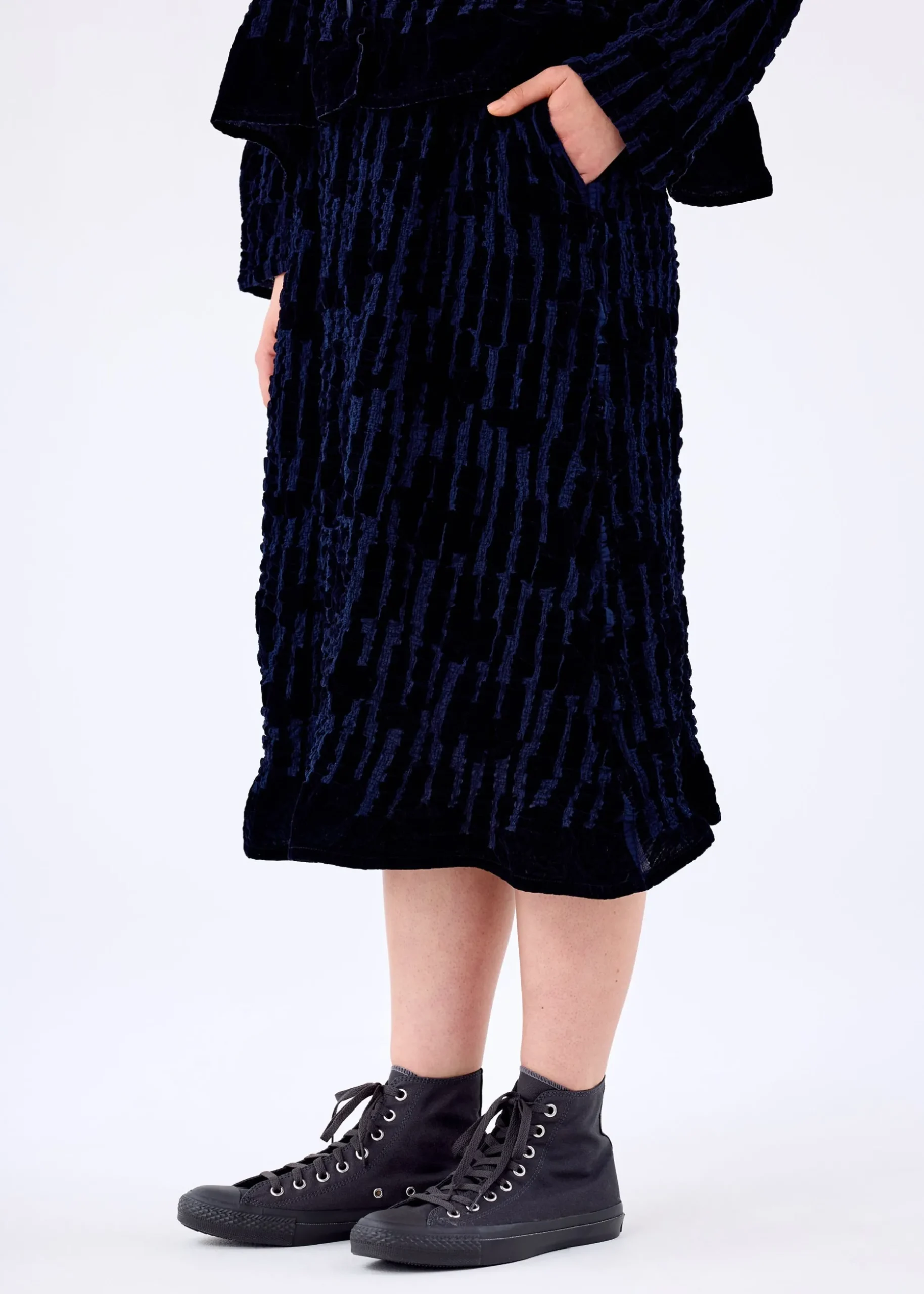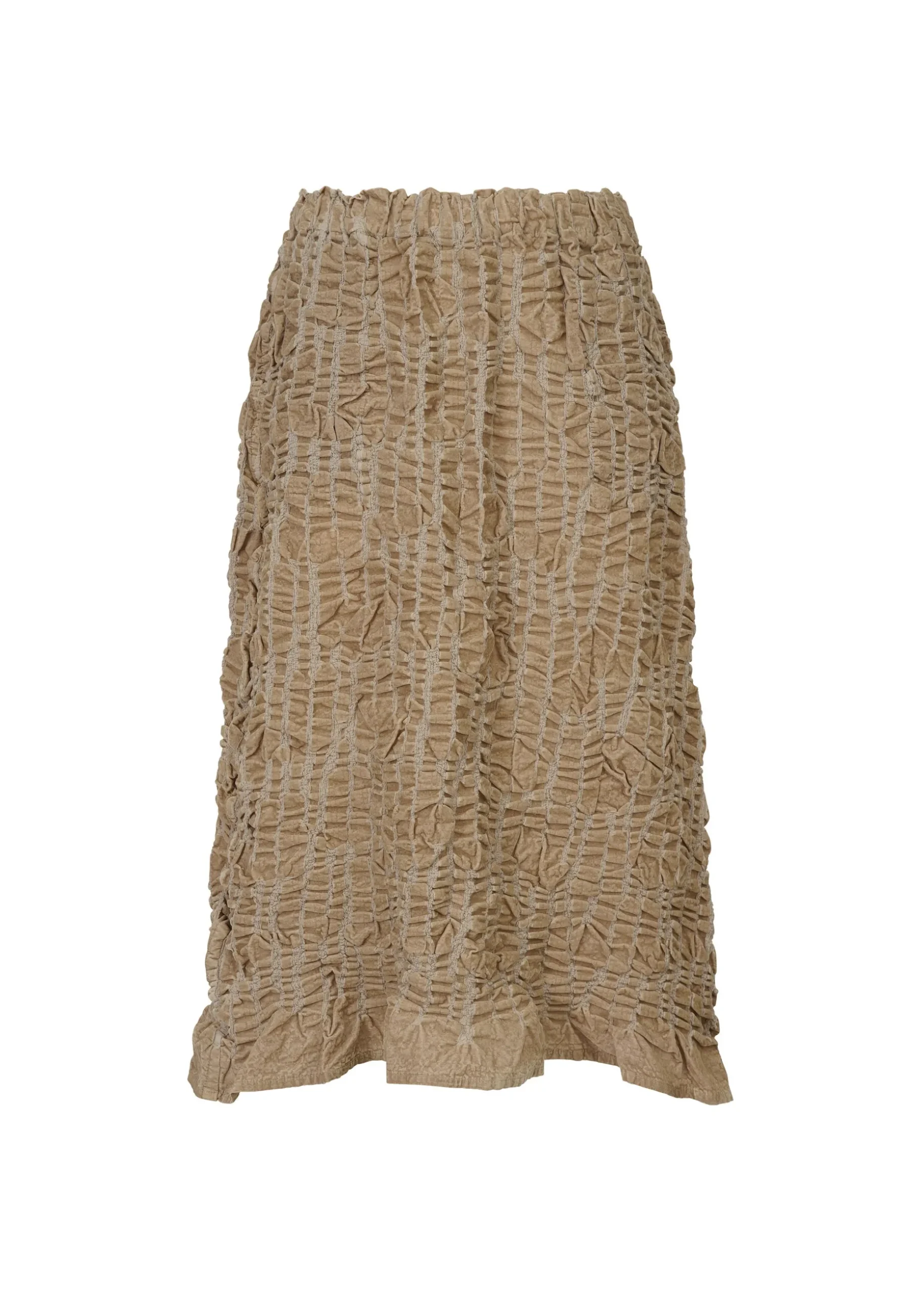 This skirt has a relaxed comfortable fit, an elastic waist, and two side pockets.