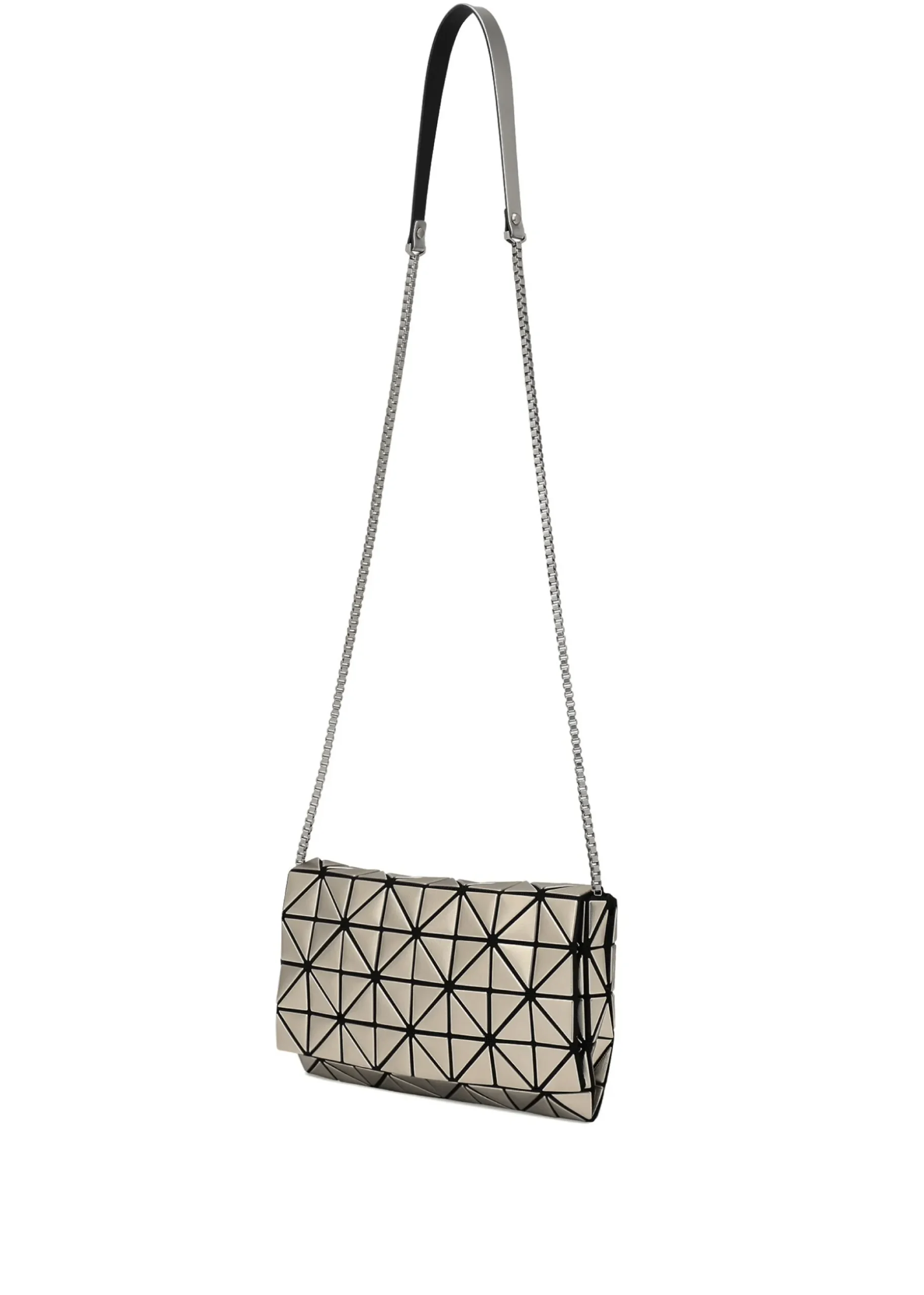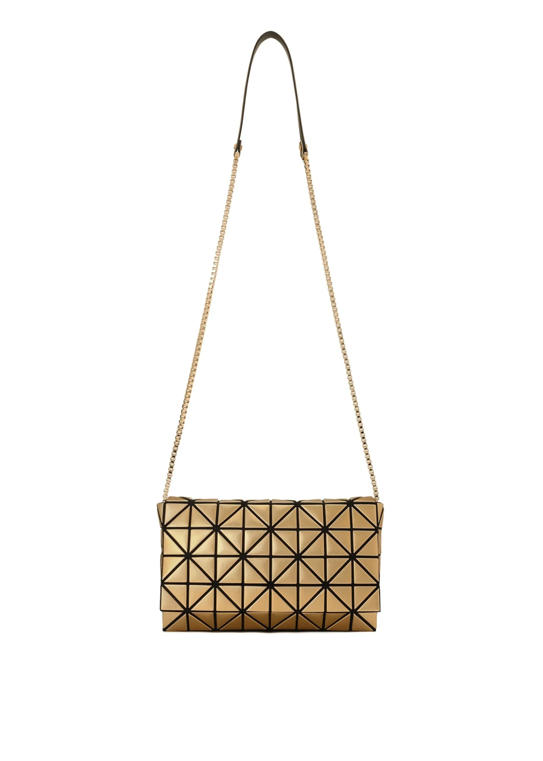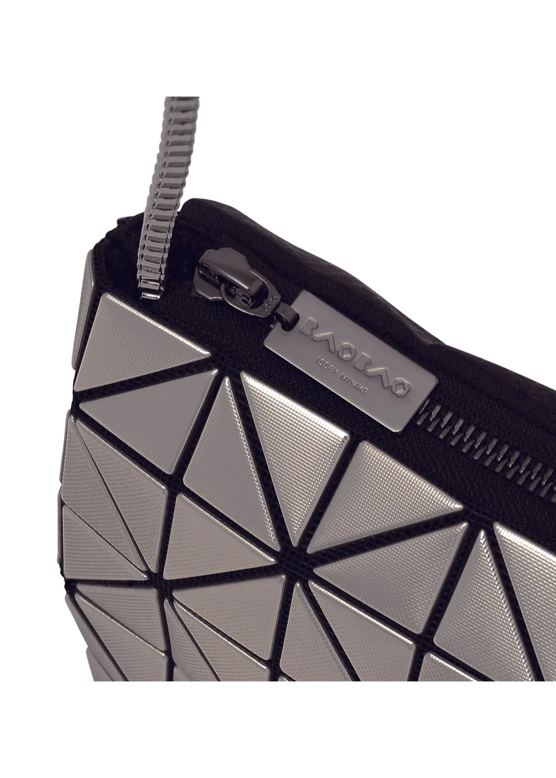 A shoulder bag from the PLATINUM series that is made of triangular pieces made of metallic material with a fabric pattern embossed on them. The entire bag can be worn as if it were a single accessory, giving it a luxurious feel that can be worn not only on special occasions, but also as an accent to your everyday outfit. It has a flap and a zipper, so you can safely store your valuables. The size allows you to store your smartphone and compact wallet.