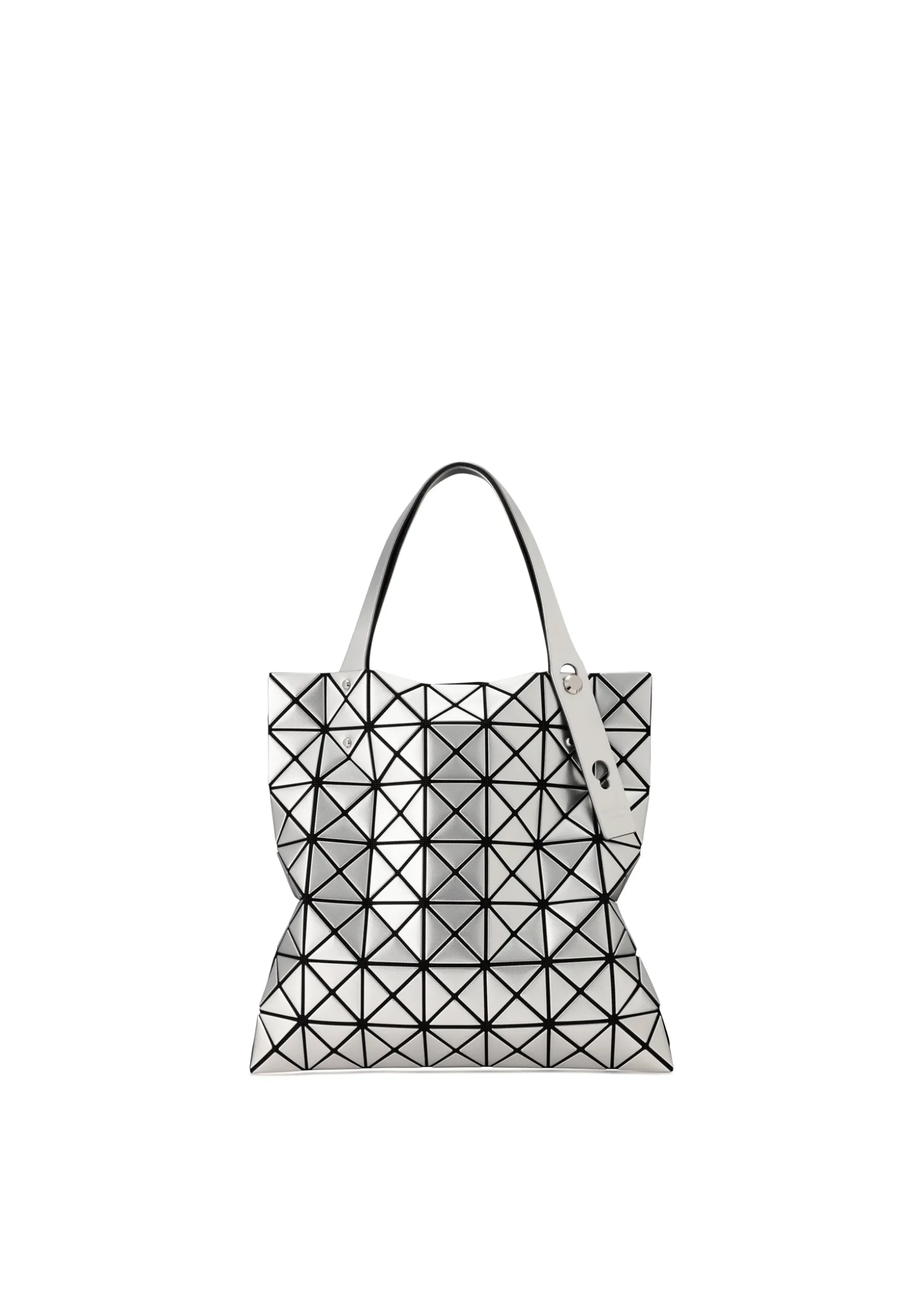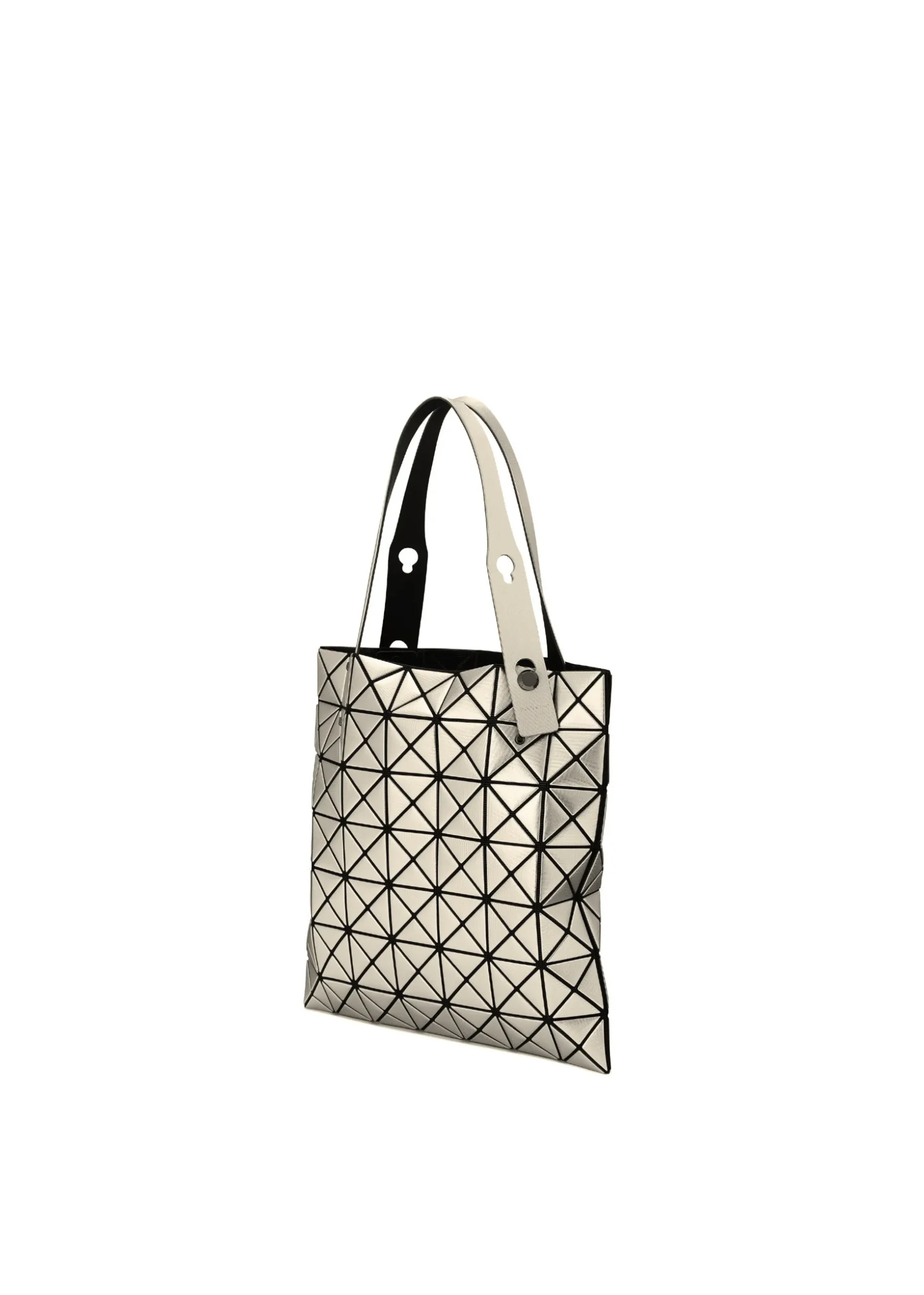 A tote bag from the PLATINUM series with a triangular piece of metallic material embossed with a fabric pattern. The entire bag can be worn as if it were a single accessory, giving it a luxurious feel that can be worn not only on special occasions, but also as an accent to your everyday outfit. There is an inner pocket with a zipper that is convenient for storing valuables such as wallets and keys.