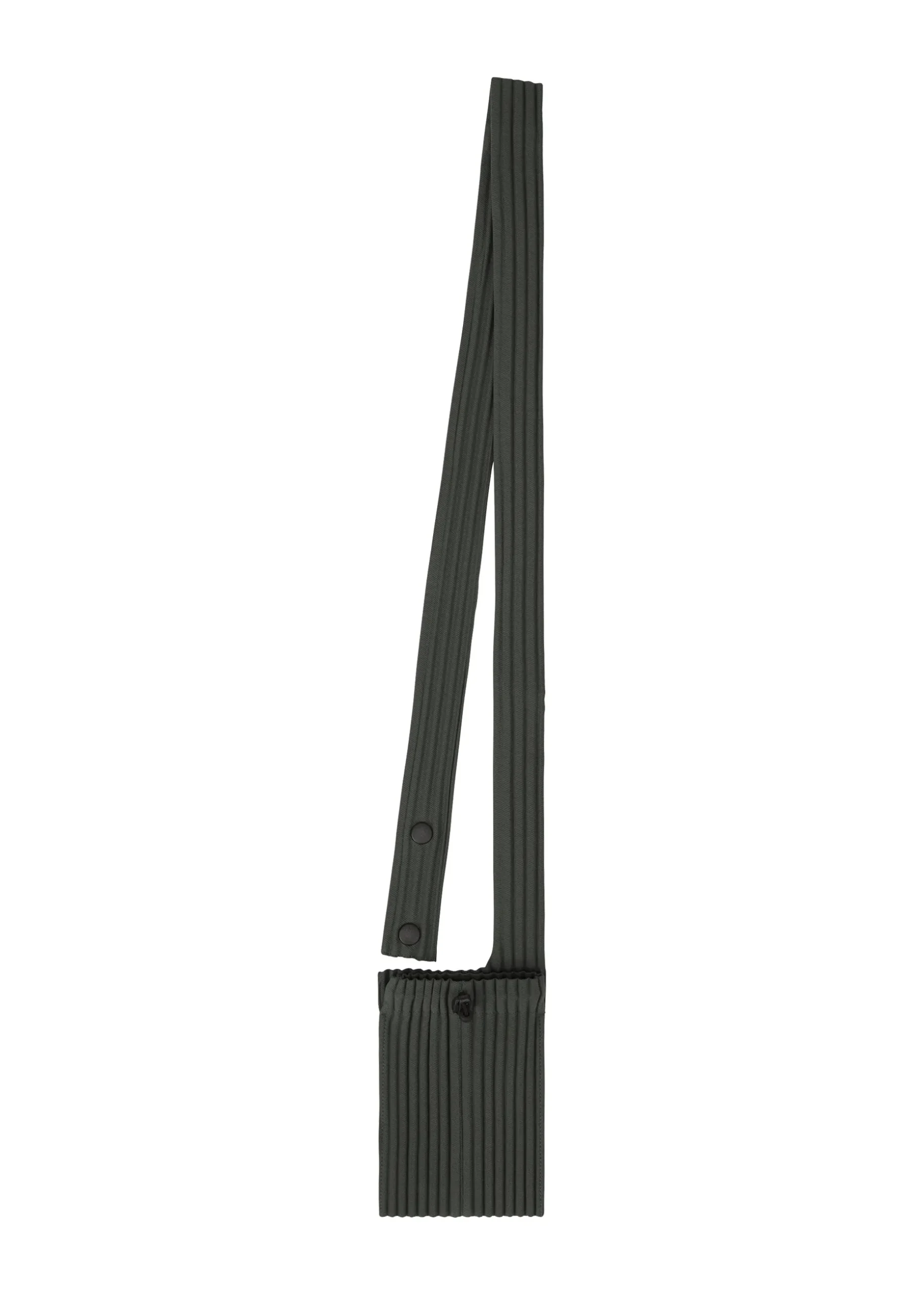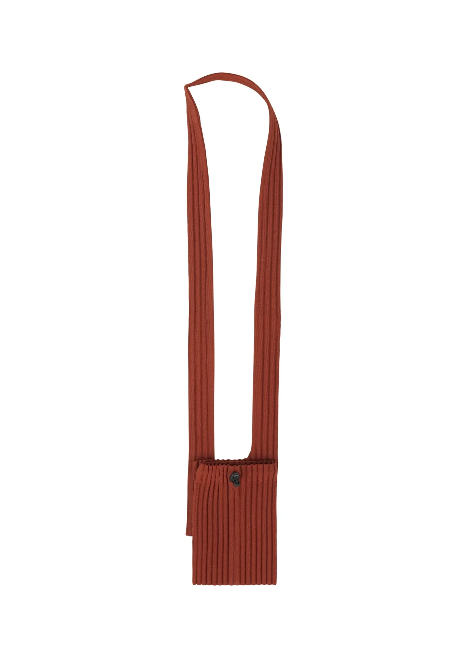 This mini shoulder bag is worn slung across the body. It consists of two pockets: a main pocket for quick access to items and a drawstring pocket to hold smaller items. There is a strap on the back.