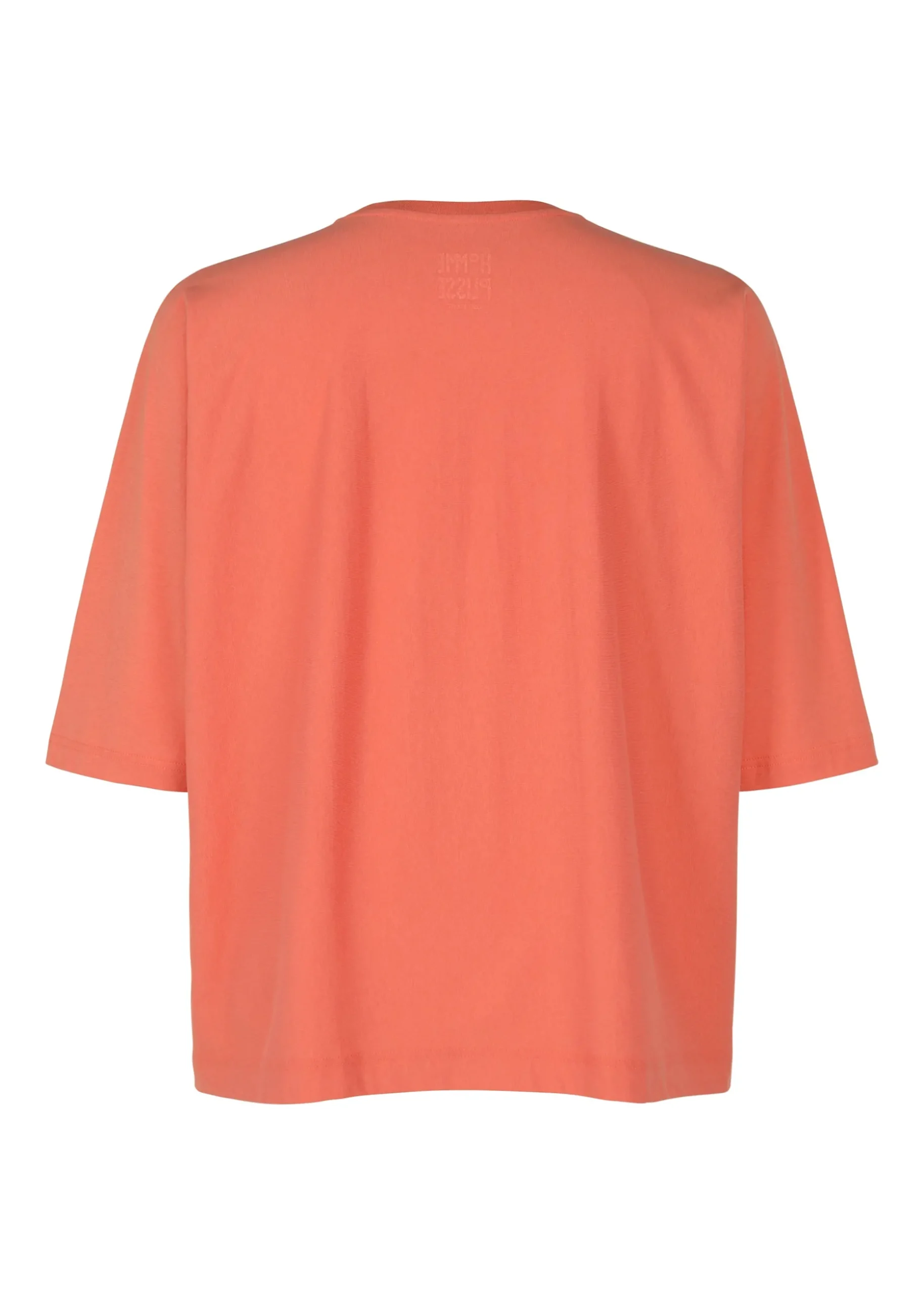 This round-neck, short-sleeved cotton top is characterized by its relaxed form.