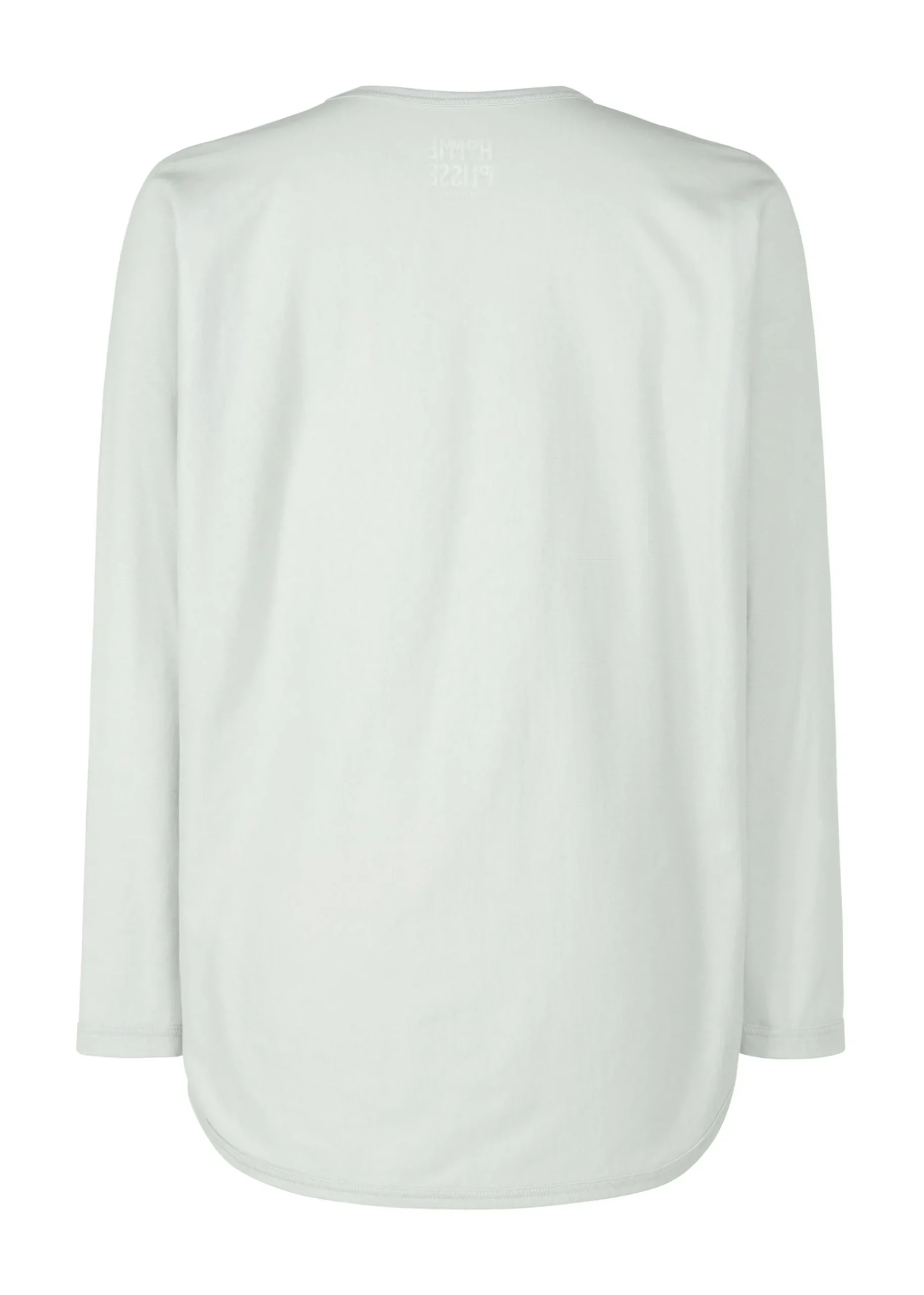 This long sleeve t-shirt has a wide, relaxed shape and a round neck.