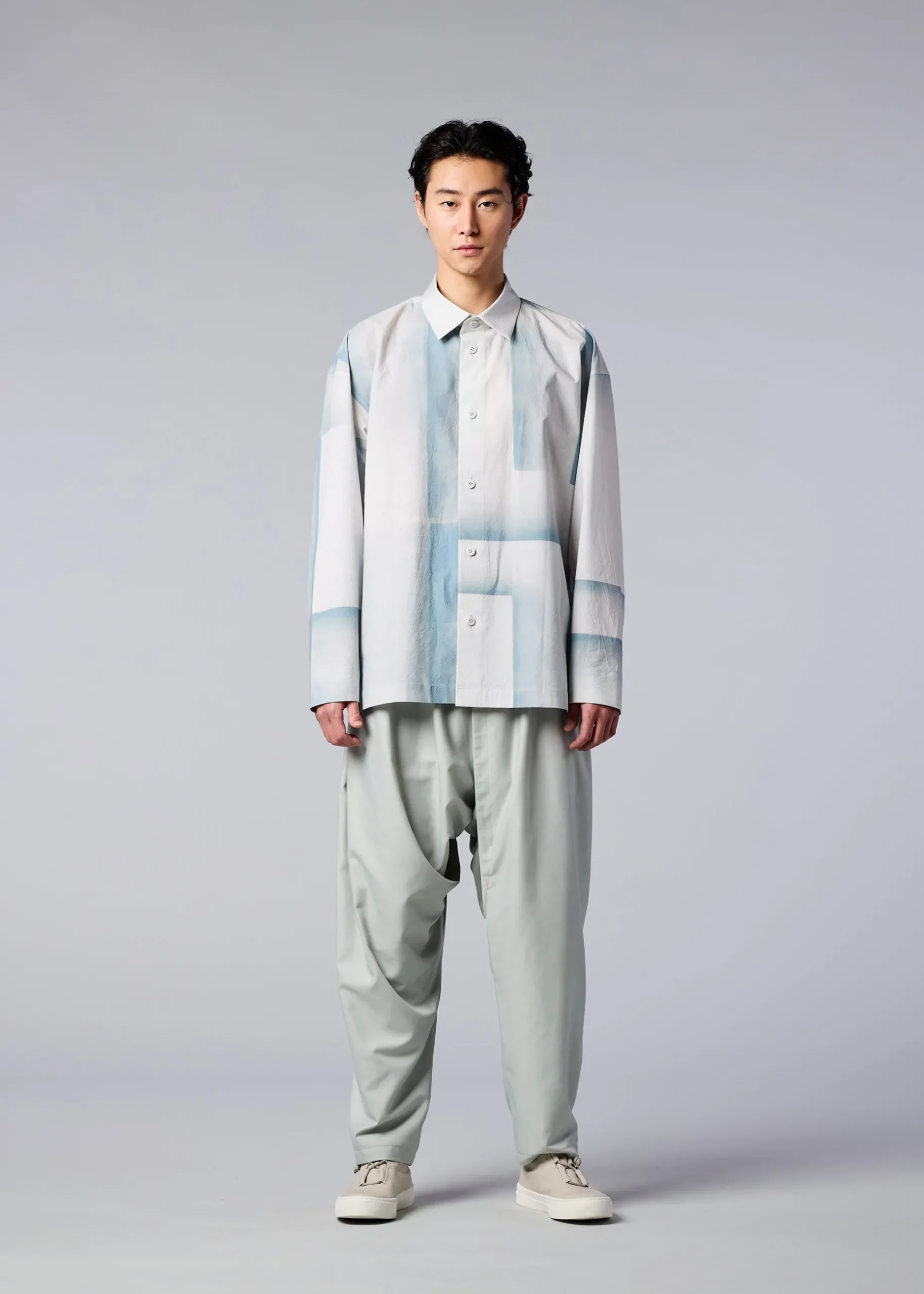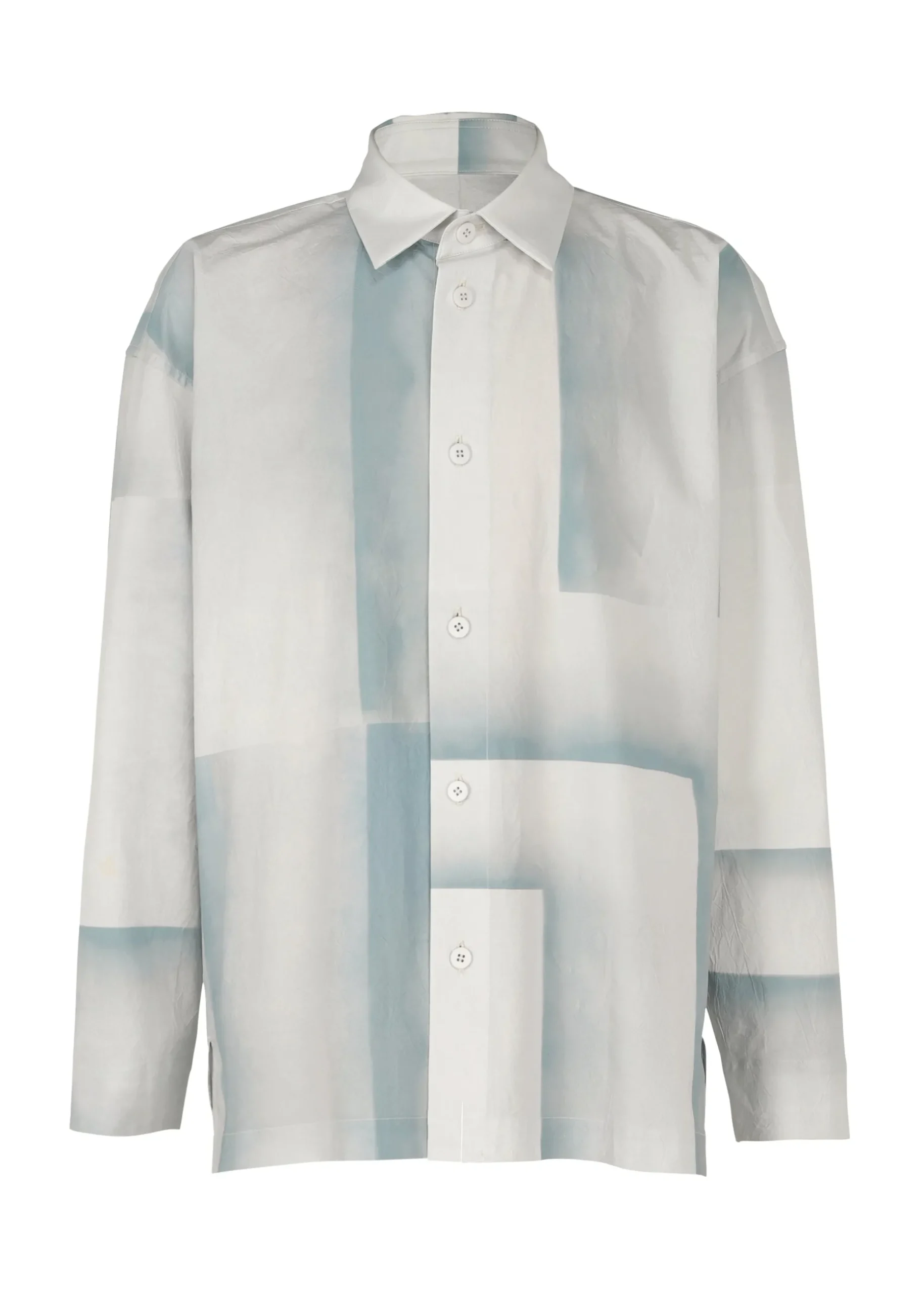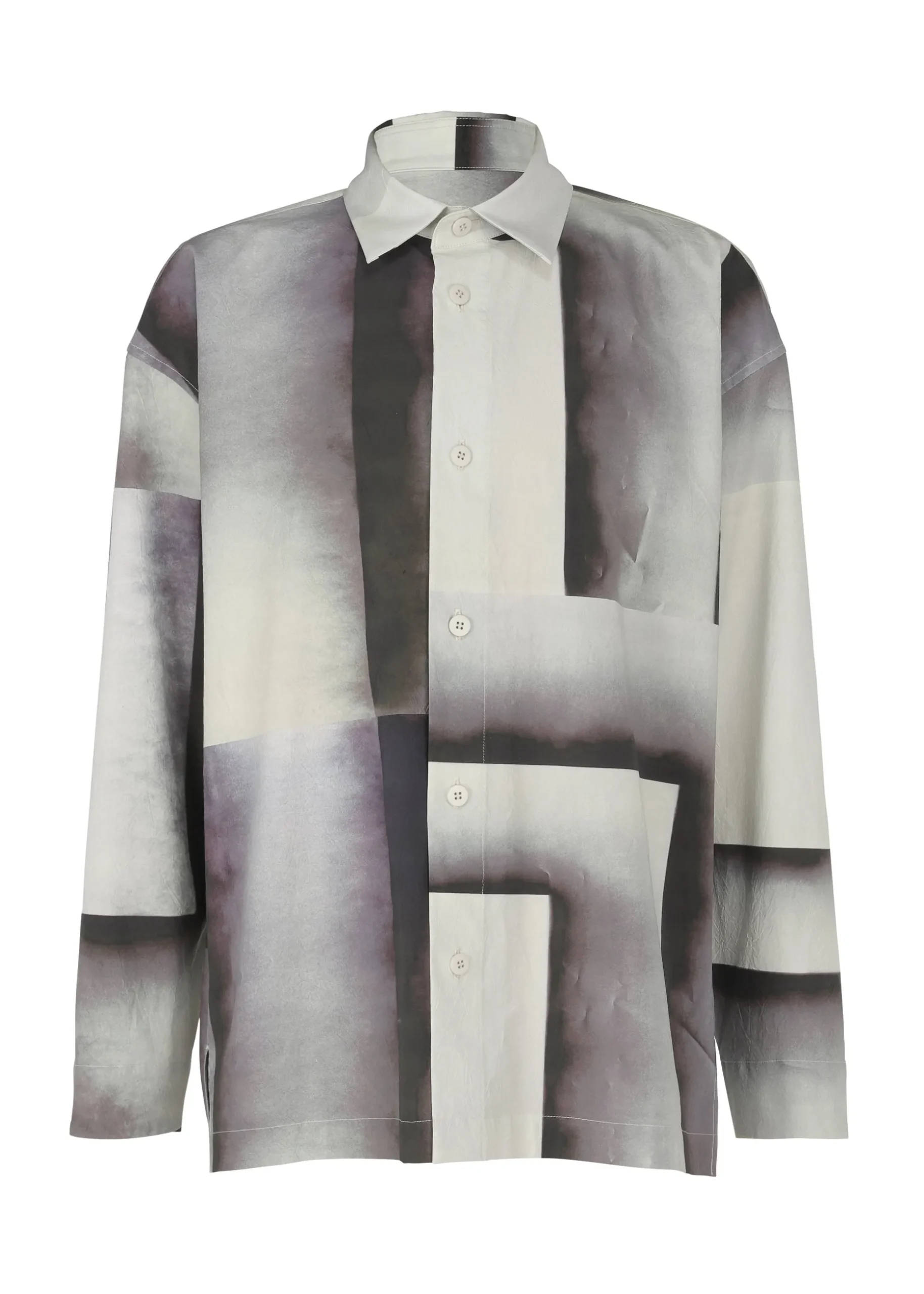 A long-sleeved shirt that expresses the traces of something that was blocking the rain. After the rain, if you move things on the ground, you can see the delicate gradation of the moist soil. The pattern of this product is different one by one. Thank you for your understanding.