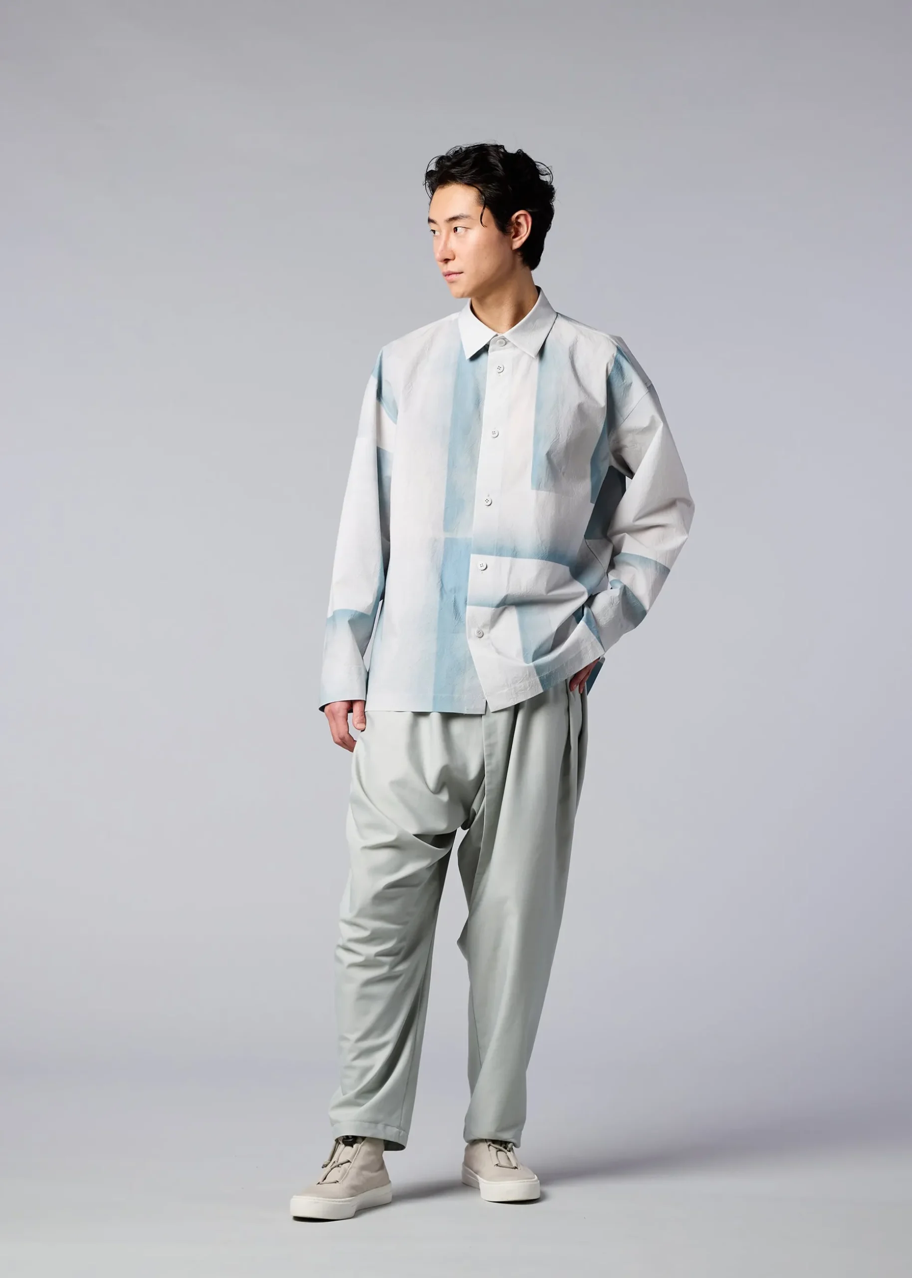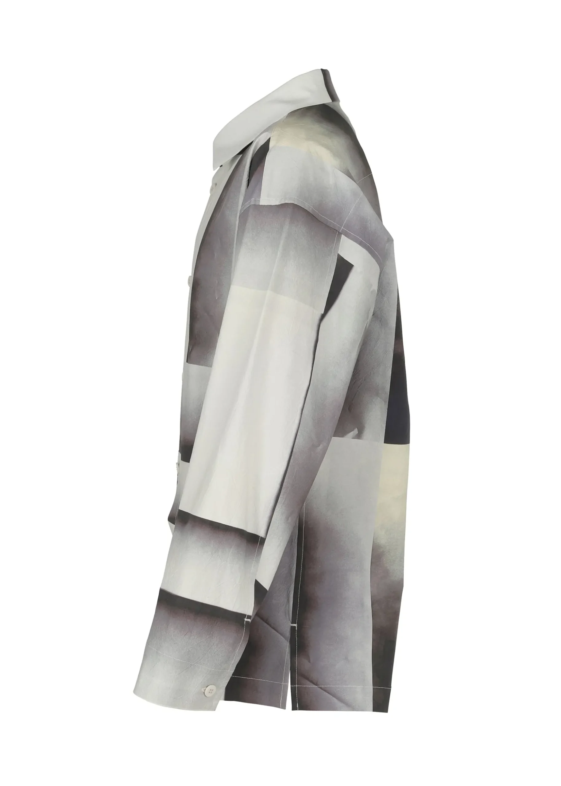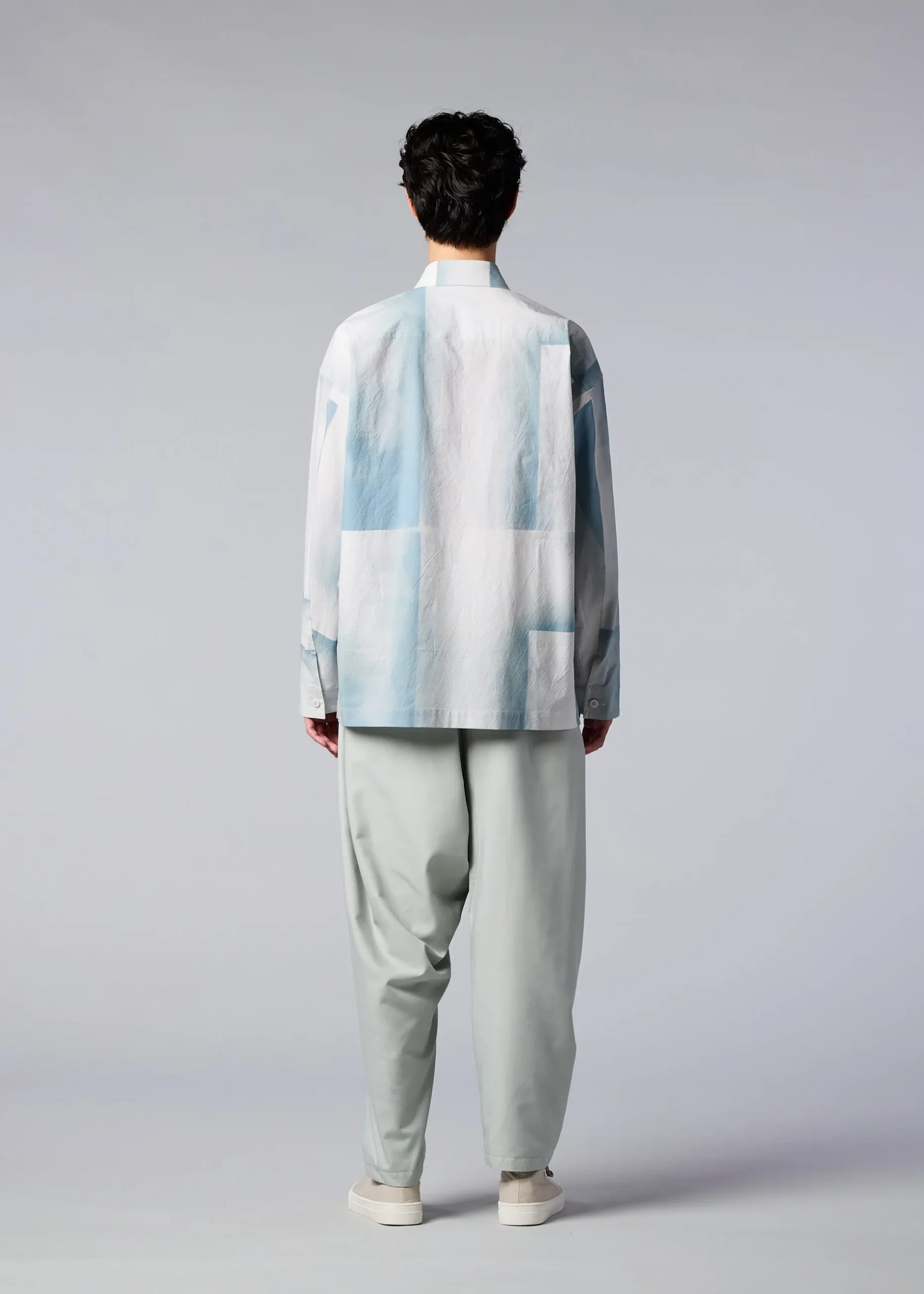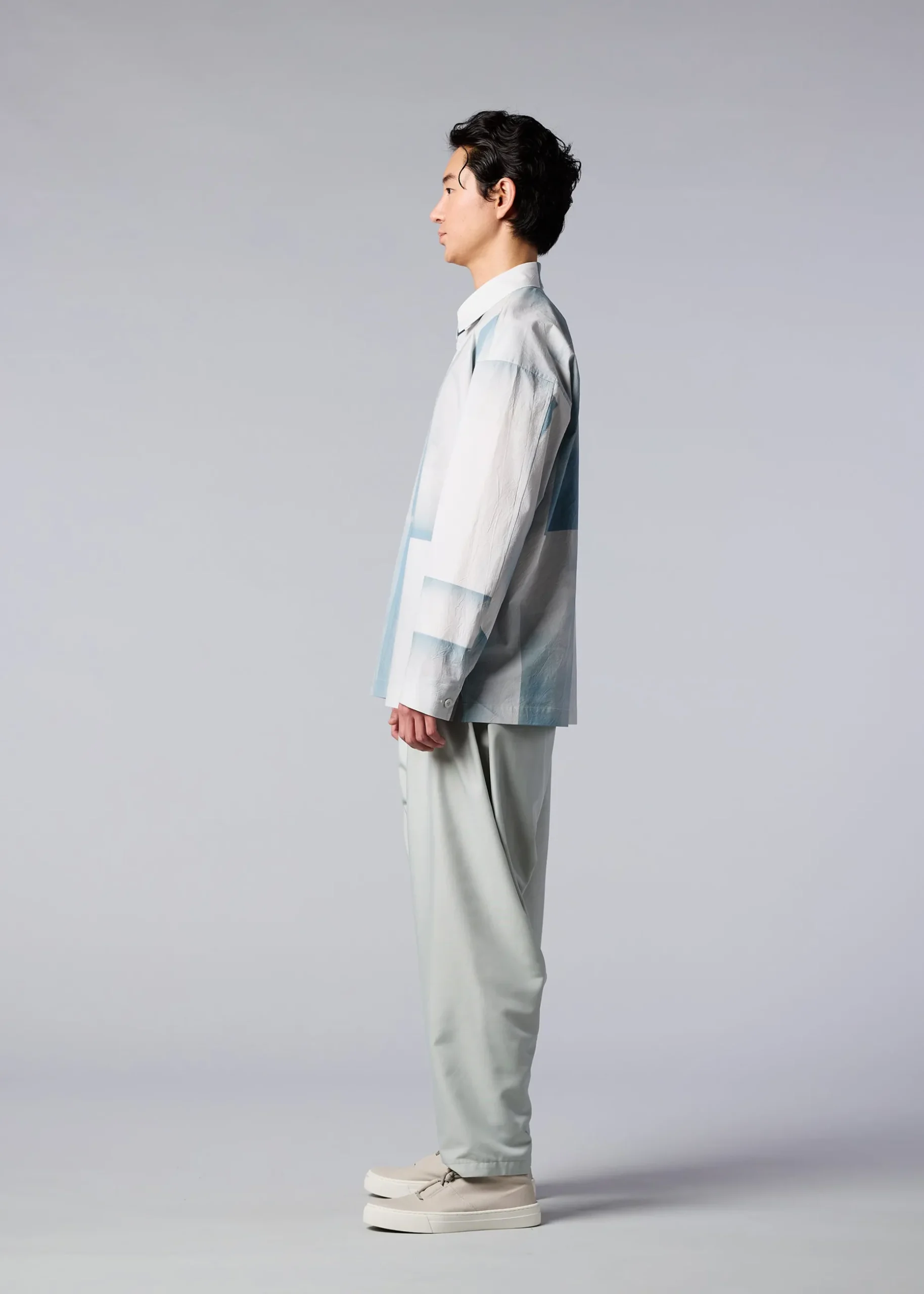 A long-sleeved shirt that expresses the traces of something that was blocking the rain. After the rain, if you move things on the ground, you can see the delicate gradation of the moist soil. The pattern of this product is different one by one. Thank you for your understanding.