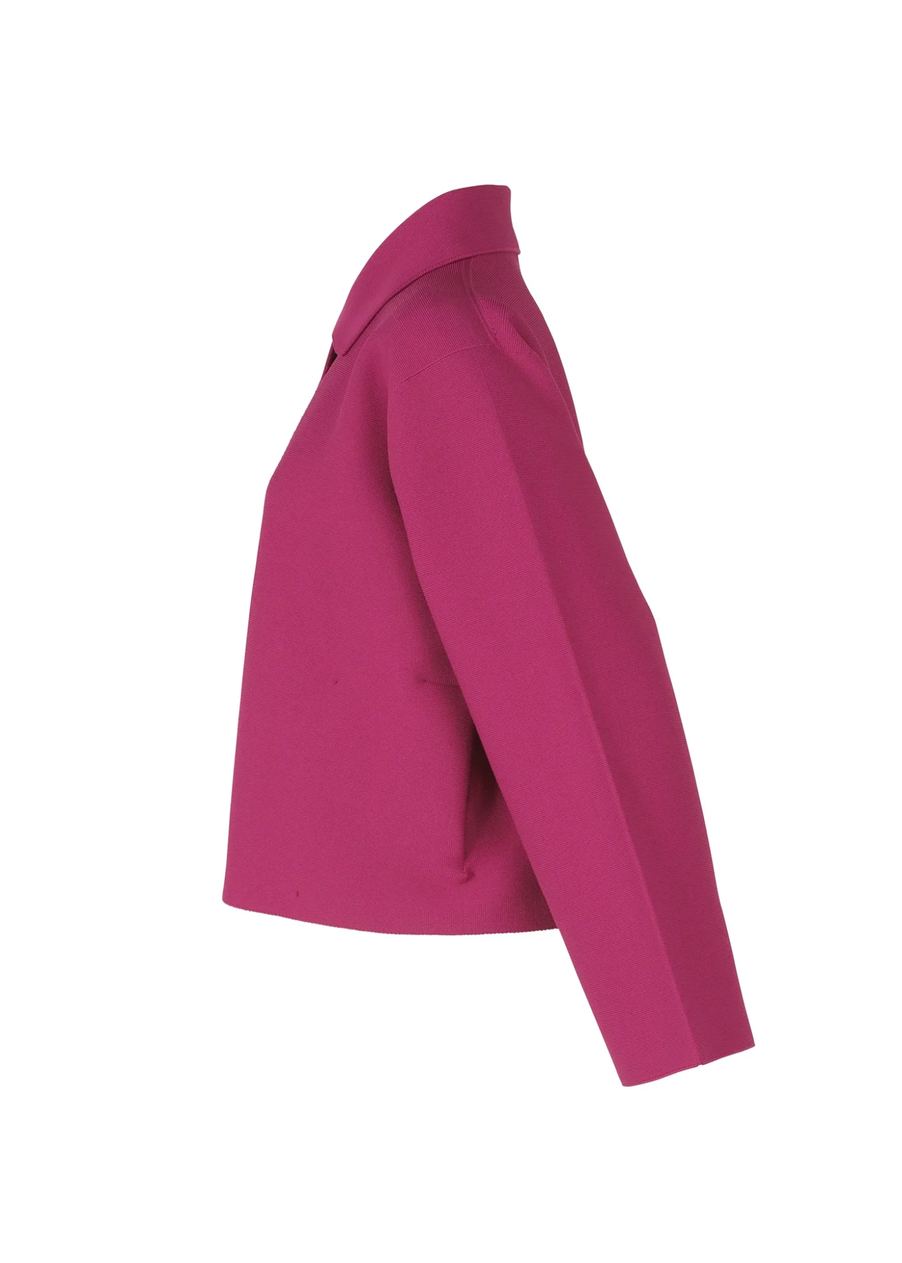 This three-dimensional short knit jacket is made from recycled polyester, pursuing a light feel. The minimally-seamed, lightweight design offers stress-free comfort. There are pockets on both sides.
