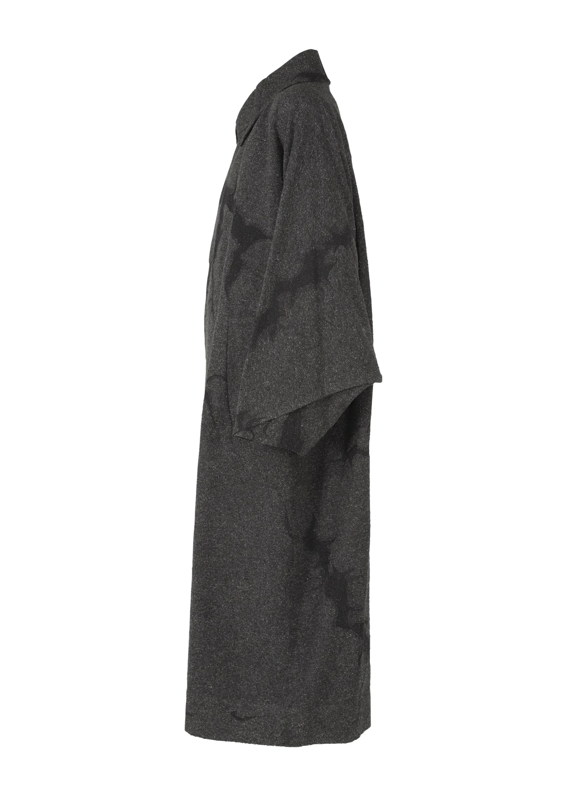 Jacquard expresses the texture of soil, which is a mixture of various materials. This coat is made from a structure made from a single score line, and the score lines are joined together with a bag stitch. The lines running through the clothes are an accent. The pattern of this product is different one by one. Thank you for your understanding.