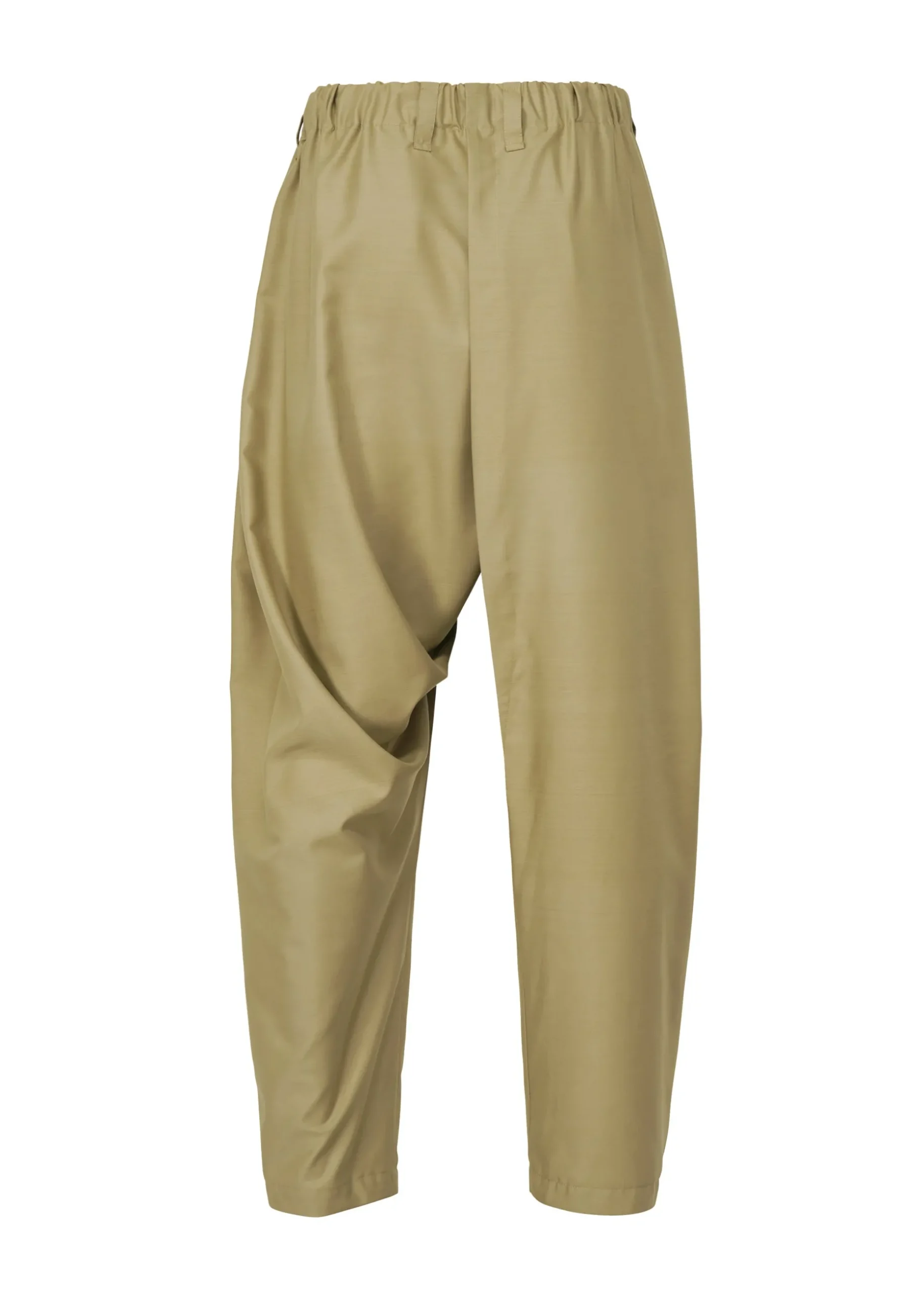 Pants that offer a light experience of wearing a piece of cloth around your body. It features a loose silhouette and a large range of motion when worn, created by the unique structure of the garment, which consists of one part. We use textiles that are wrinkle resistant and easy to care for, and are designed to be easy to incorporate into your daily life.