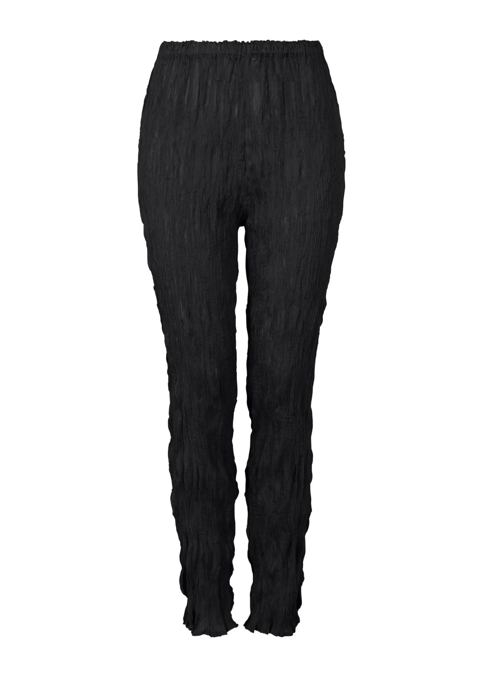 These SEE-THROUGH CREPE pants are made from product-dyed fabric that is woven using high-twist thread for the weft. The weft thread is twisted back during the dyeing process, which gives the fabric the unique look of crepe with vertical creases. The fabric undergoes the usual SEE-THROUGH CREPE production process and then twisting processing for a sleek silhouette. It is recommended to layer items from the same series to enjoy the gradation of colors.