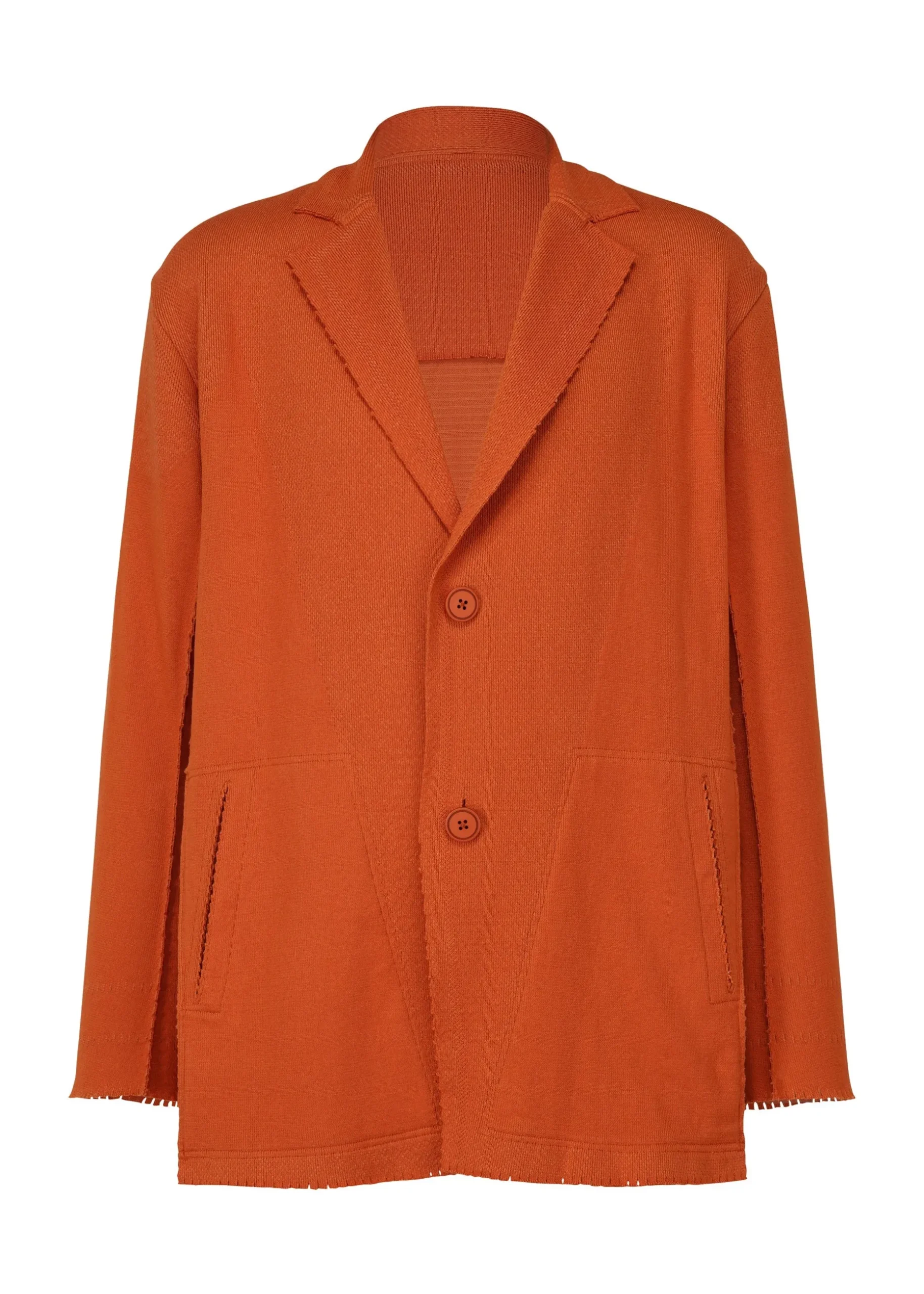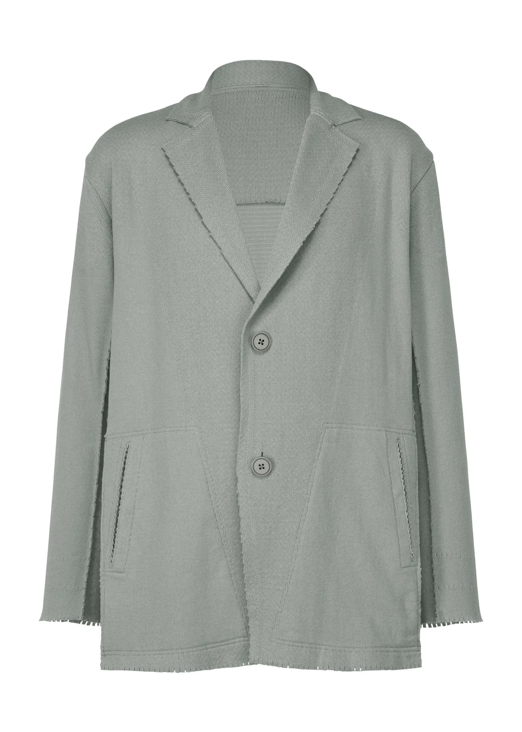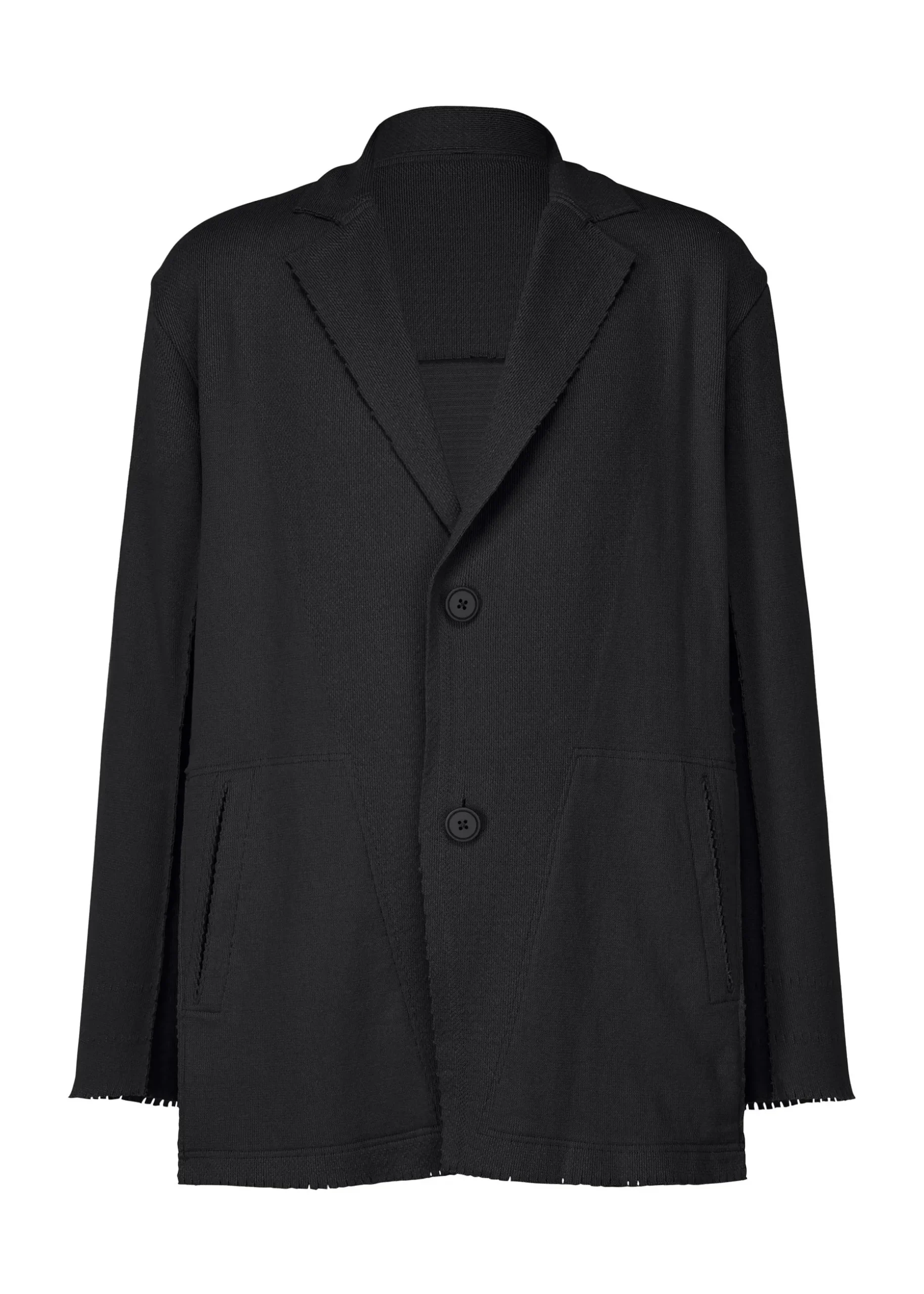 This knit jacket is made using a technique of cutting garments from tube-shaped fabric, which has been continuously evolving since the creation of A-POC. It is characterized by its relaxed, comfortable feel.