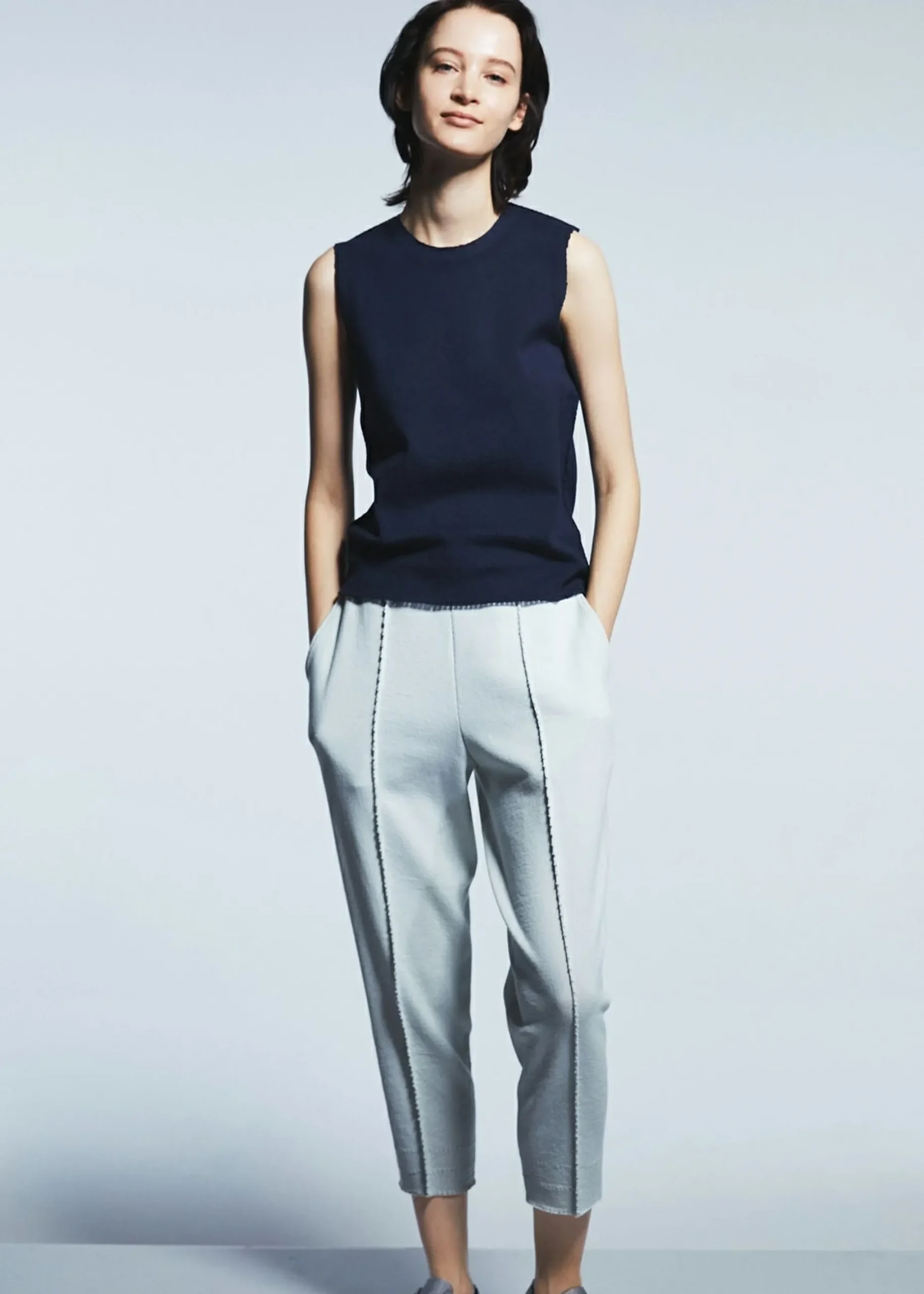 A knitted round neck French sleeve top made by cutting clothes from tube-shaped fabric, which has continued to evolve since the birth of A-POC. The material is comfortable and can be worn all year round.