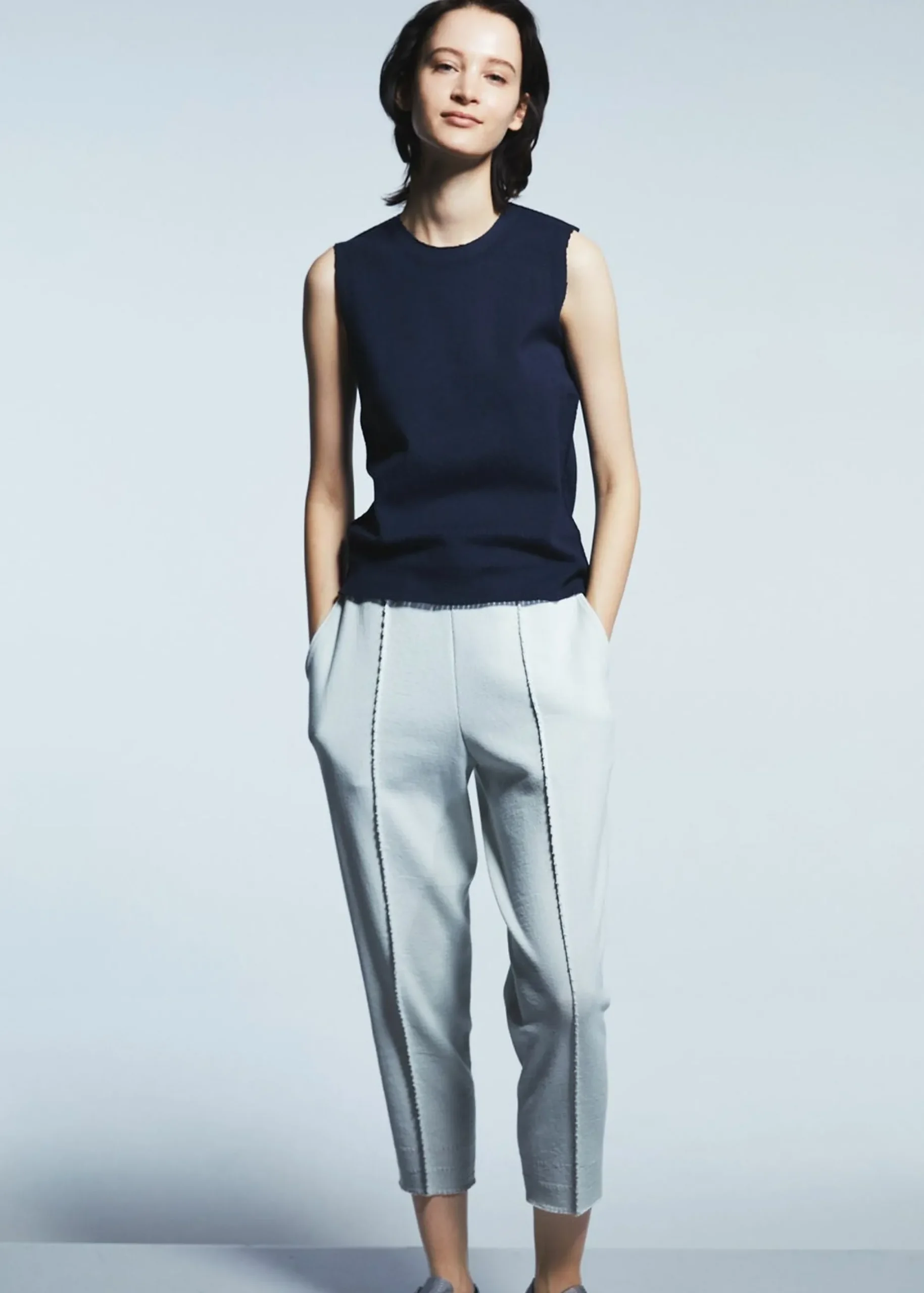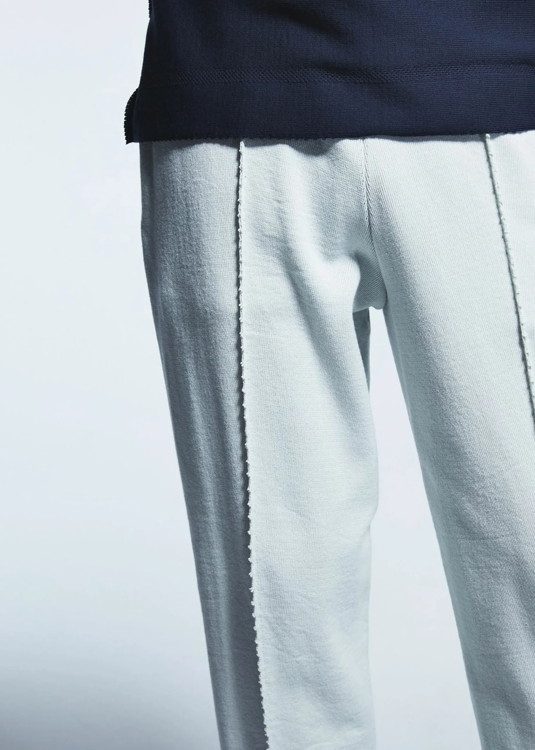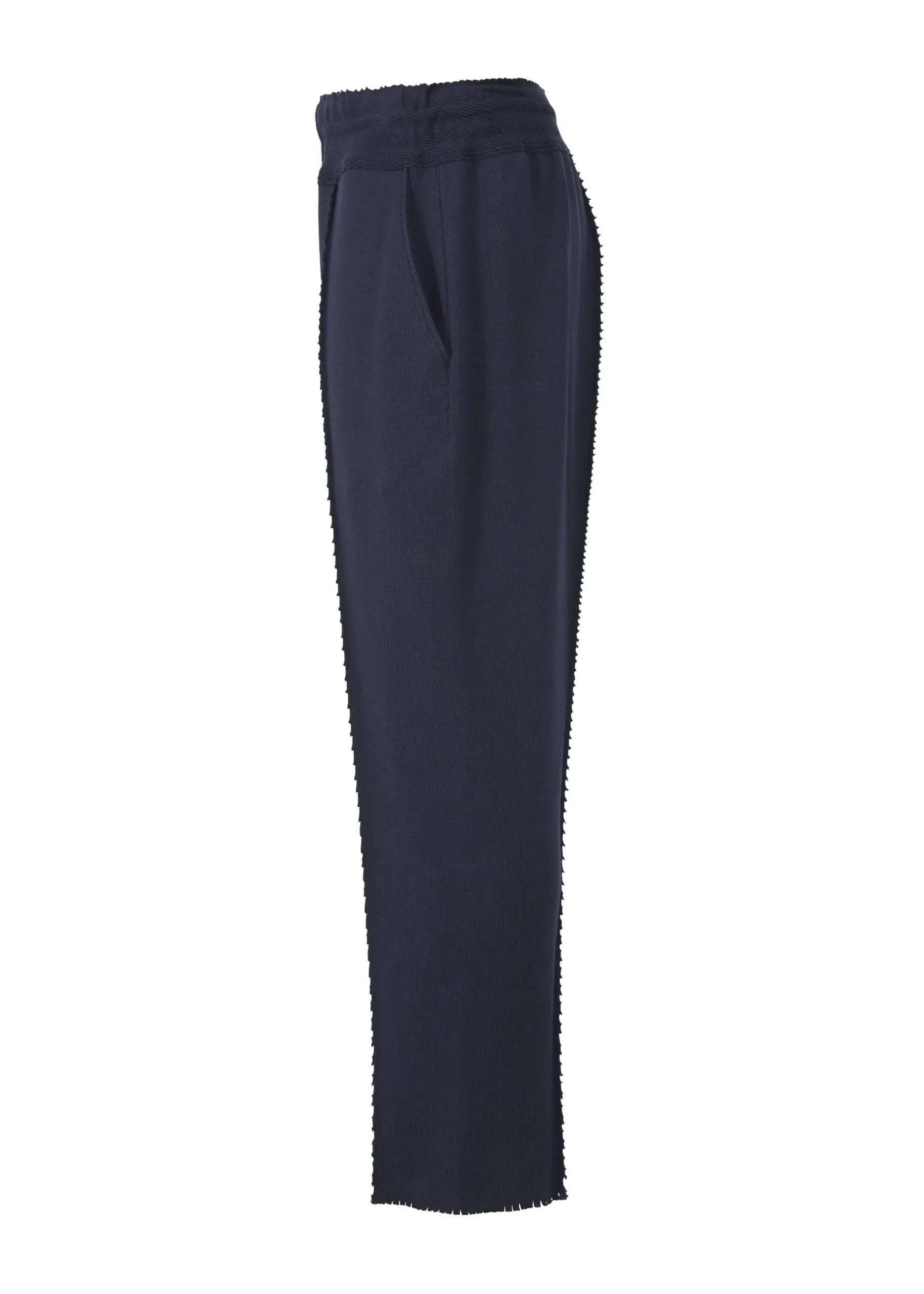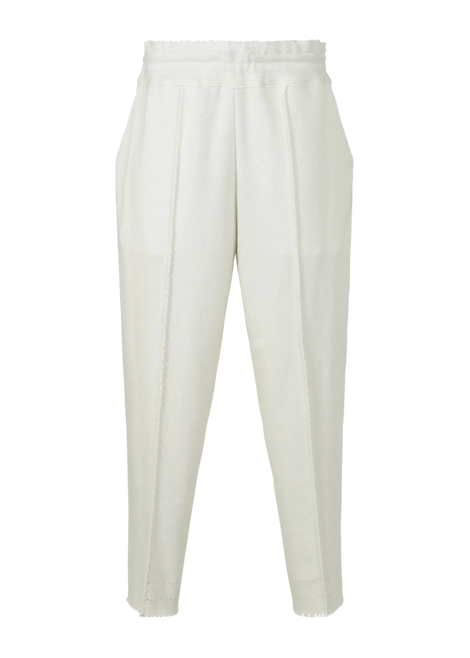 Knitted pants are made by cutting out clothing from tube-shaped fabric, which has continued to evolve since the birth of A-POC. The material is comfortable to wear all year round and can be worn by both men and women. The waist can be adjusted with an inner string.