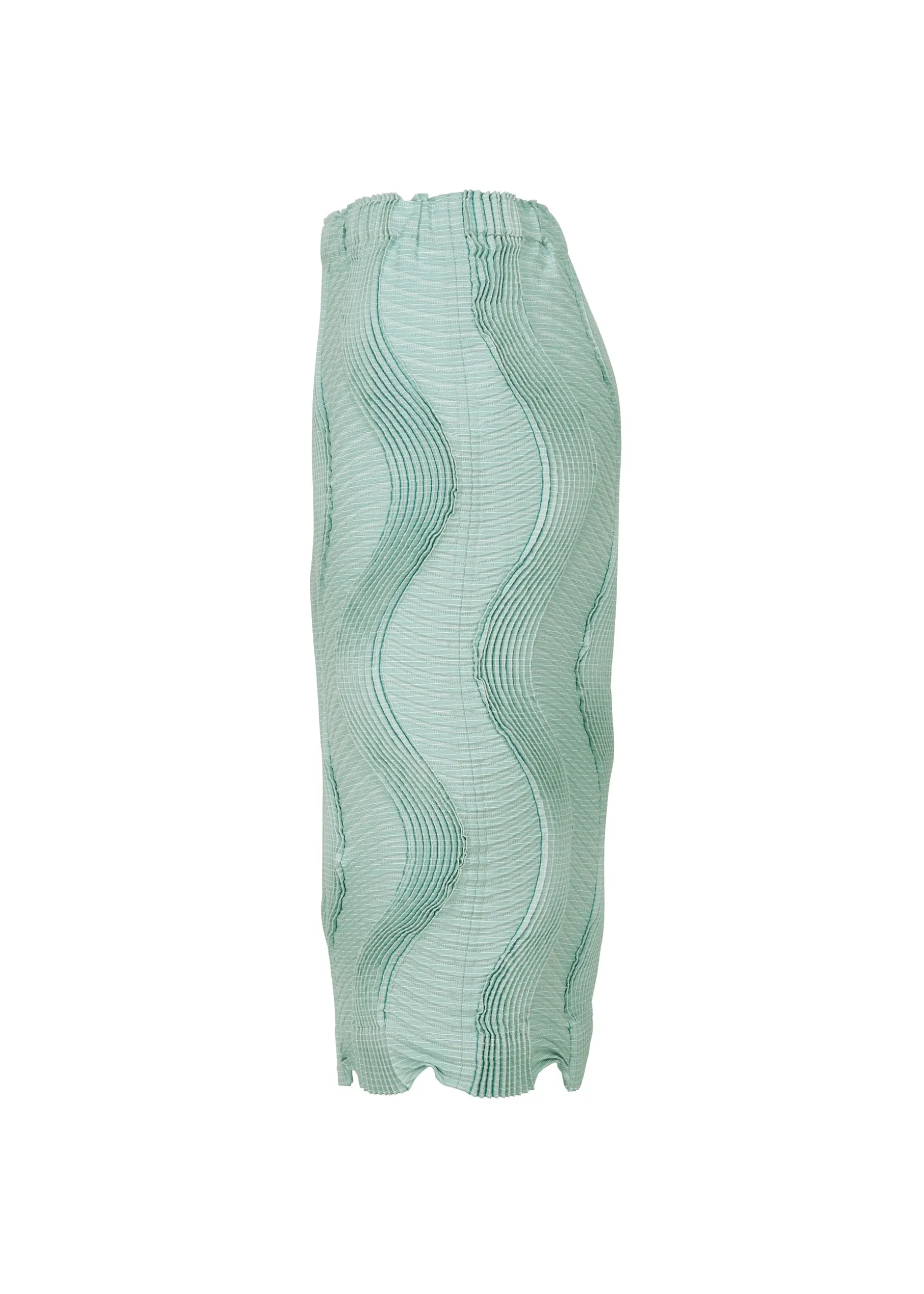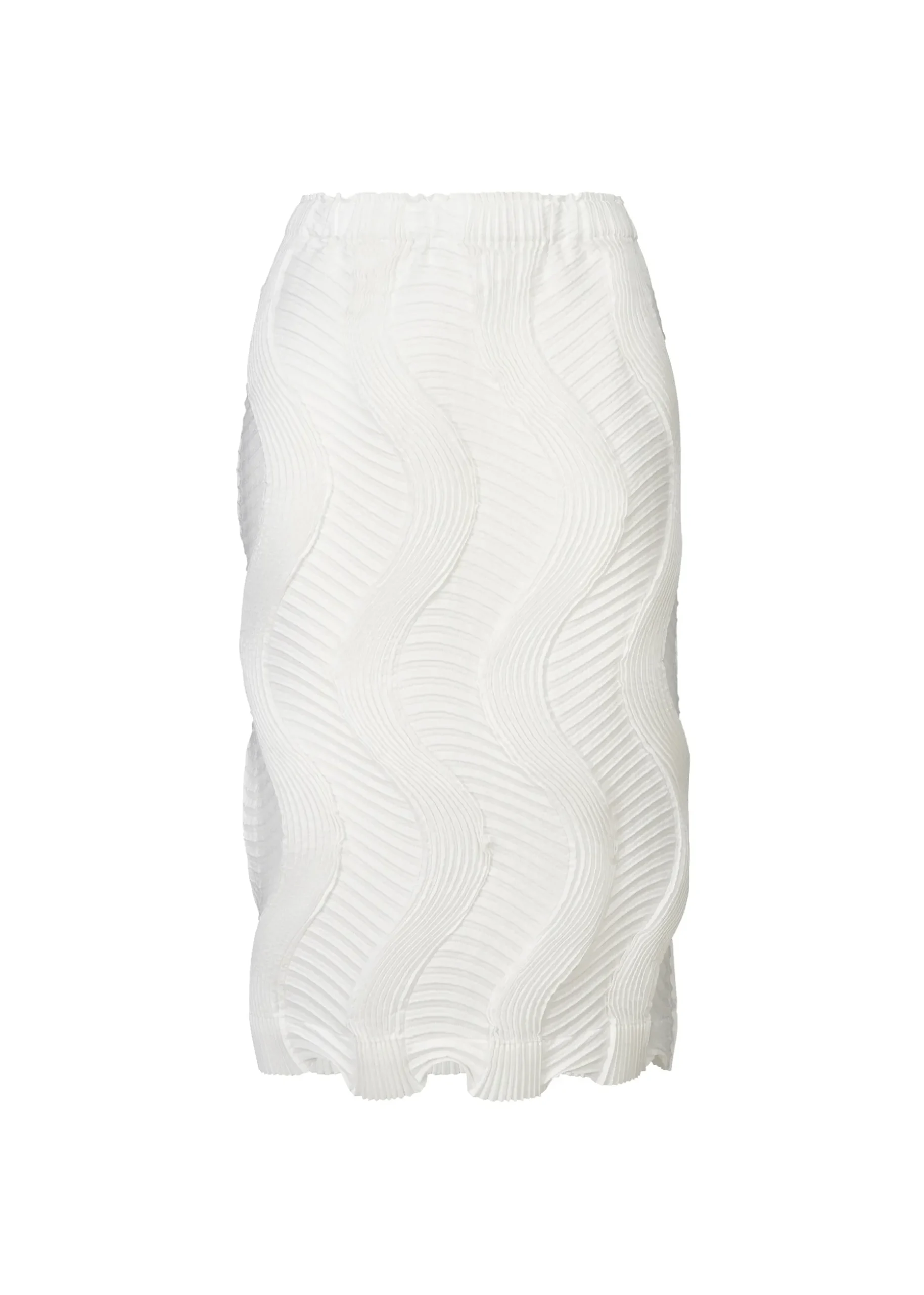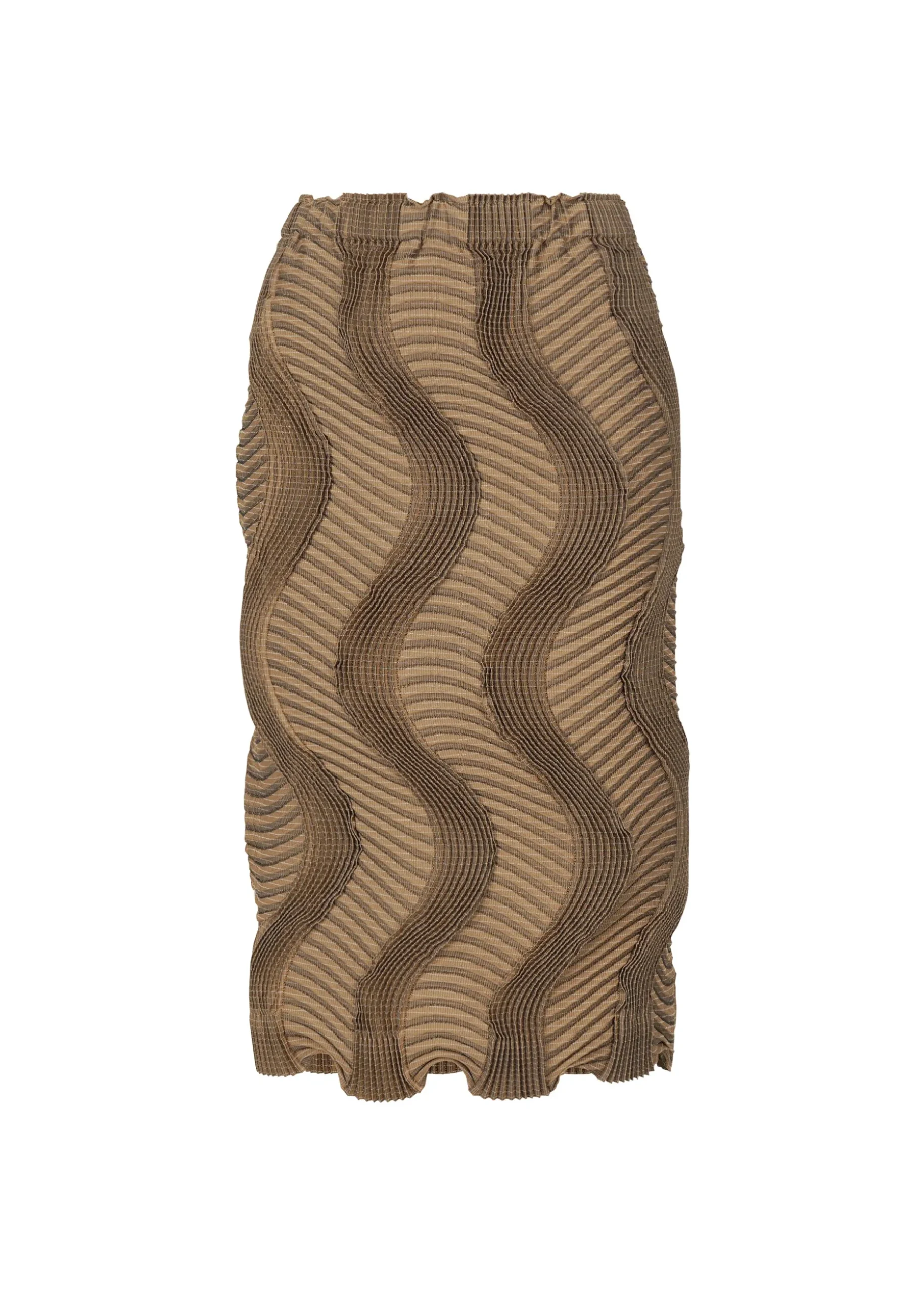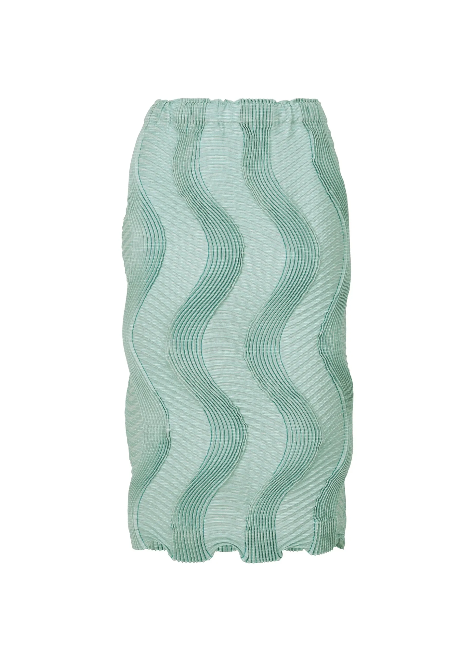 This pleated mid-length skirt has a slim fit that hugs the body and a comfortable elastic waist.