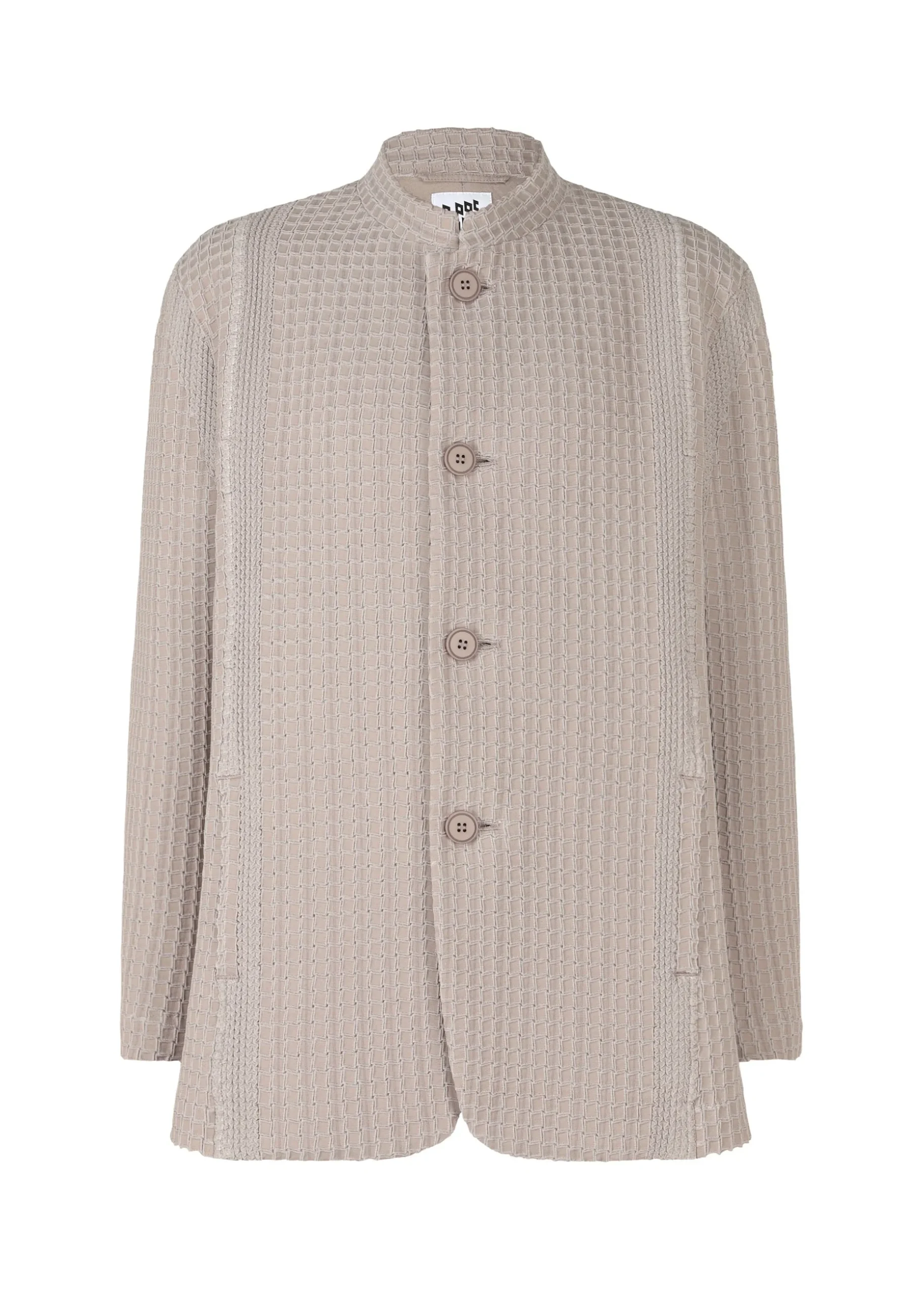 This jacket with a standing collar is characterized by its grid-shaped pleats created using the Steam Stretch* technique. It has excellent stretchiness, and can be used in a wide range of situations, from formal to casual.