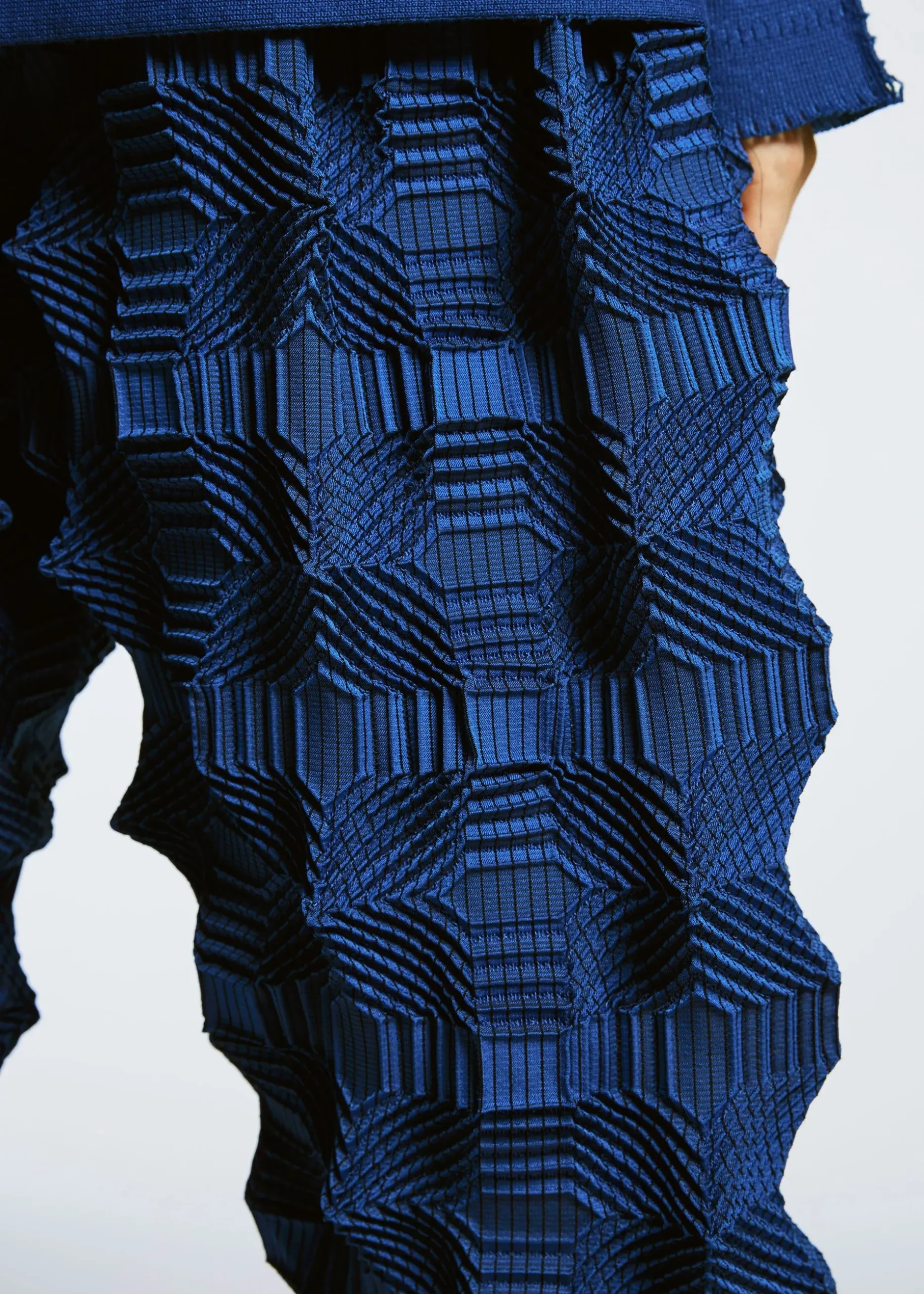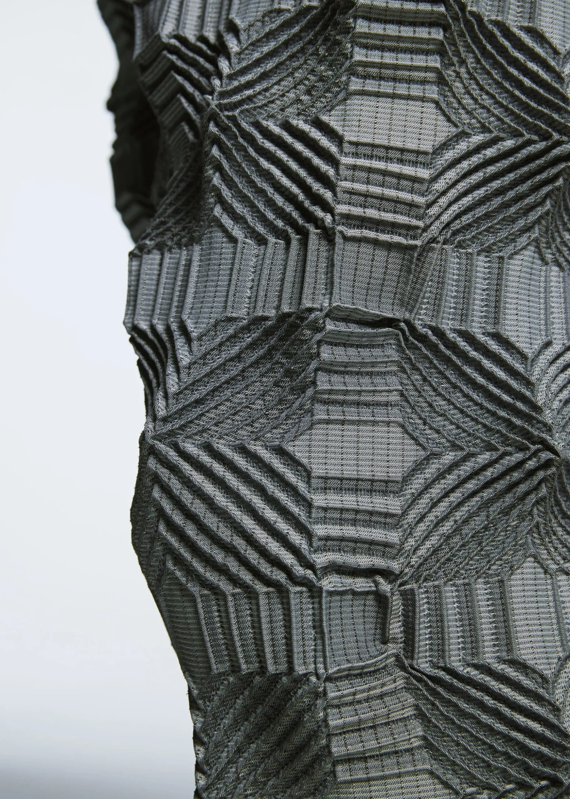 Special threads shrunken with heat are woven with other threads, and then only the special thread parts shrink when the steam is applied. By only shrinking the intended parts of the piece of woven cloth, three-dimensional patterns and shapes are created and the garment is completed.