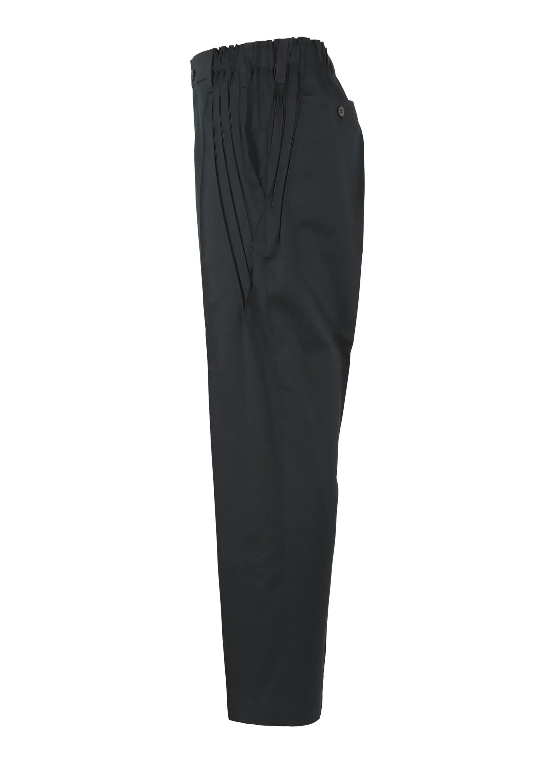 Tapered pants featuring a center crease designed by Steam Stretch(*). A lightweight stretch material that is perfect for everyday use, made from a blend of polyester and cotton-polyester yarn, which are partially made from plant-based raw materials. It has a hip pocket.