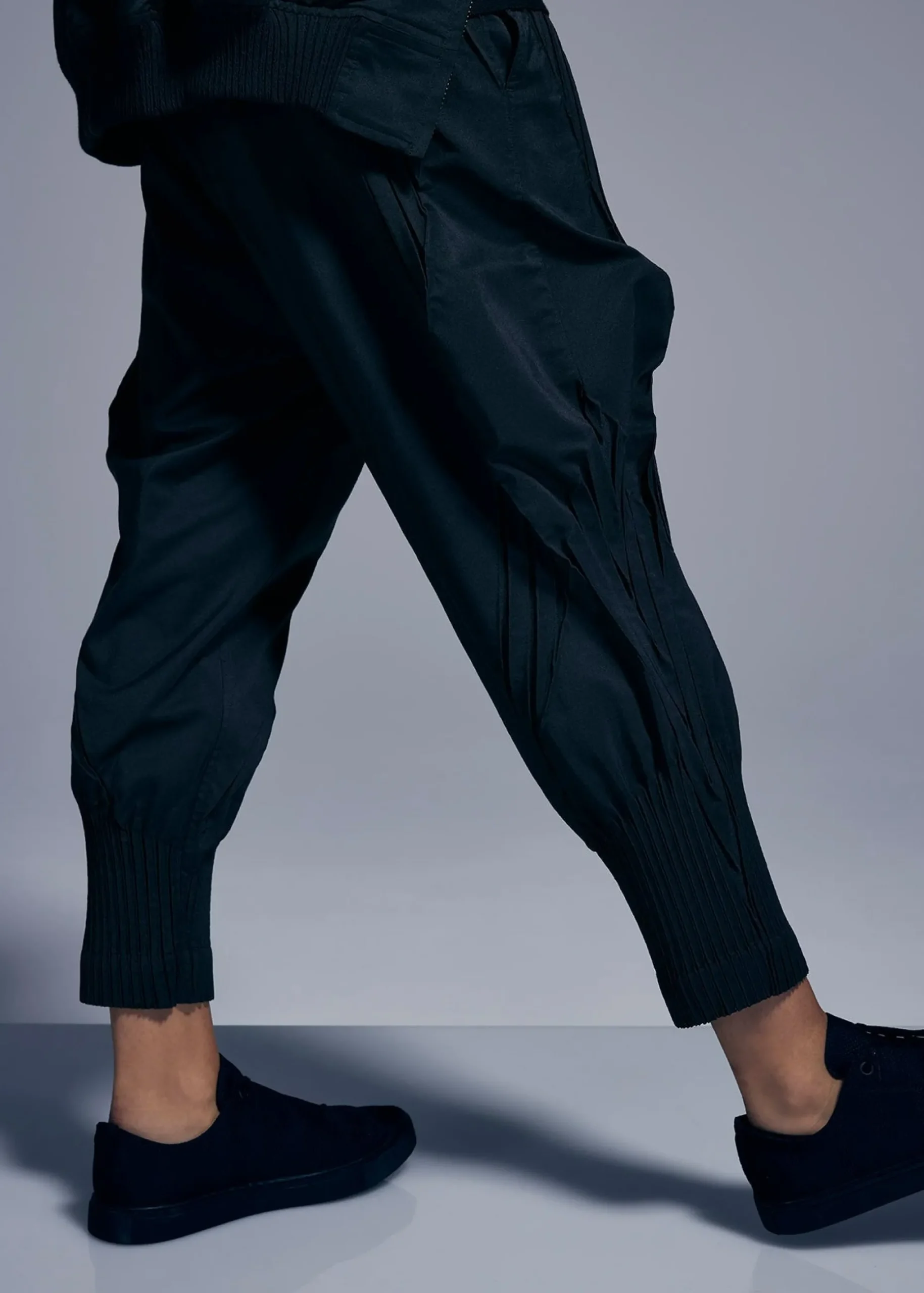 Cropped pants featuring a crease designed by Steam Stretch(*). A lightweight stretch material that is perfect for everyday use, made from a blend of polyester and cotton-polyester yarn, which are partially made from plant-based raw materials. The crease design combines beauty and stretch.