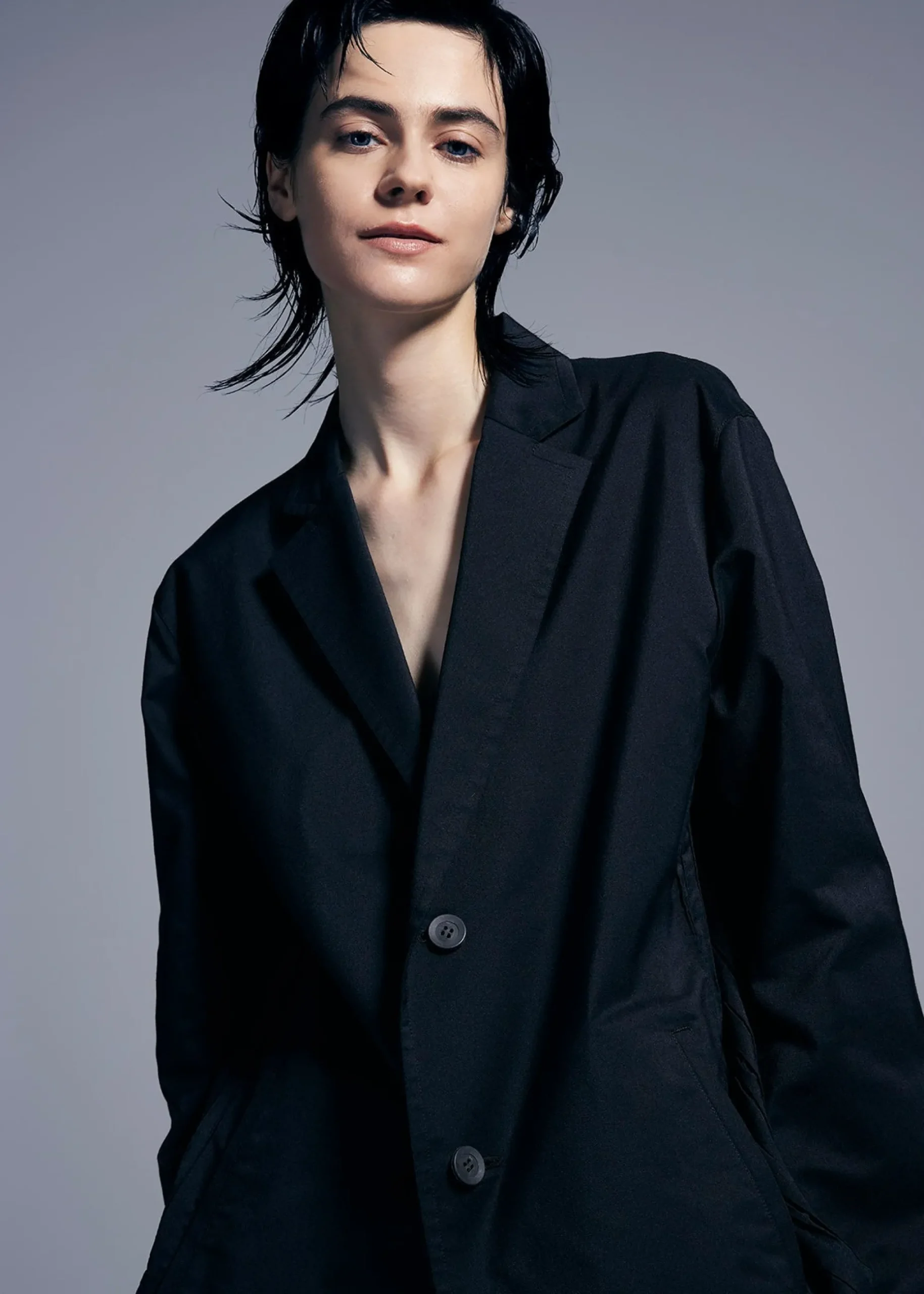 A lightweight, two-button jacket that is perfect for everyday use, made from a blend of polyester and cotton-polyester yarn, which is partially made from plant-based raw materials. The bellows shape created by Steam Stretch (*) is placed on the sides of the waist, and the design combines beautiful lines and stretch when worn.