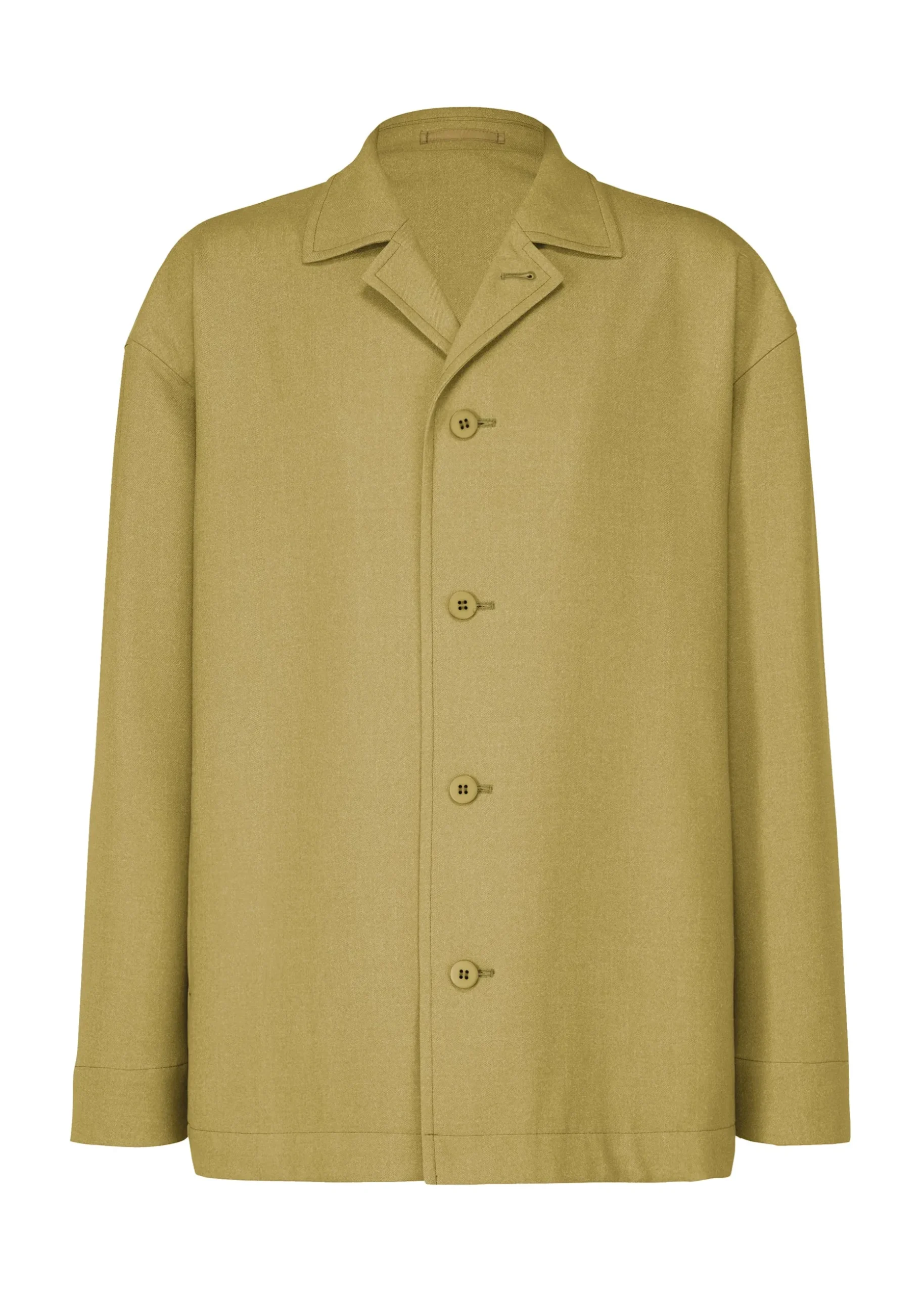 A jacket made of fabric woven by twisting two types of yarn. By dyeing the threads differently, we pursued a wool-like texture, warmth, and texture.