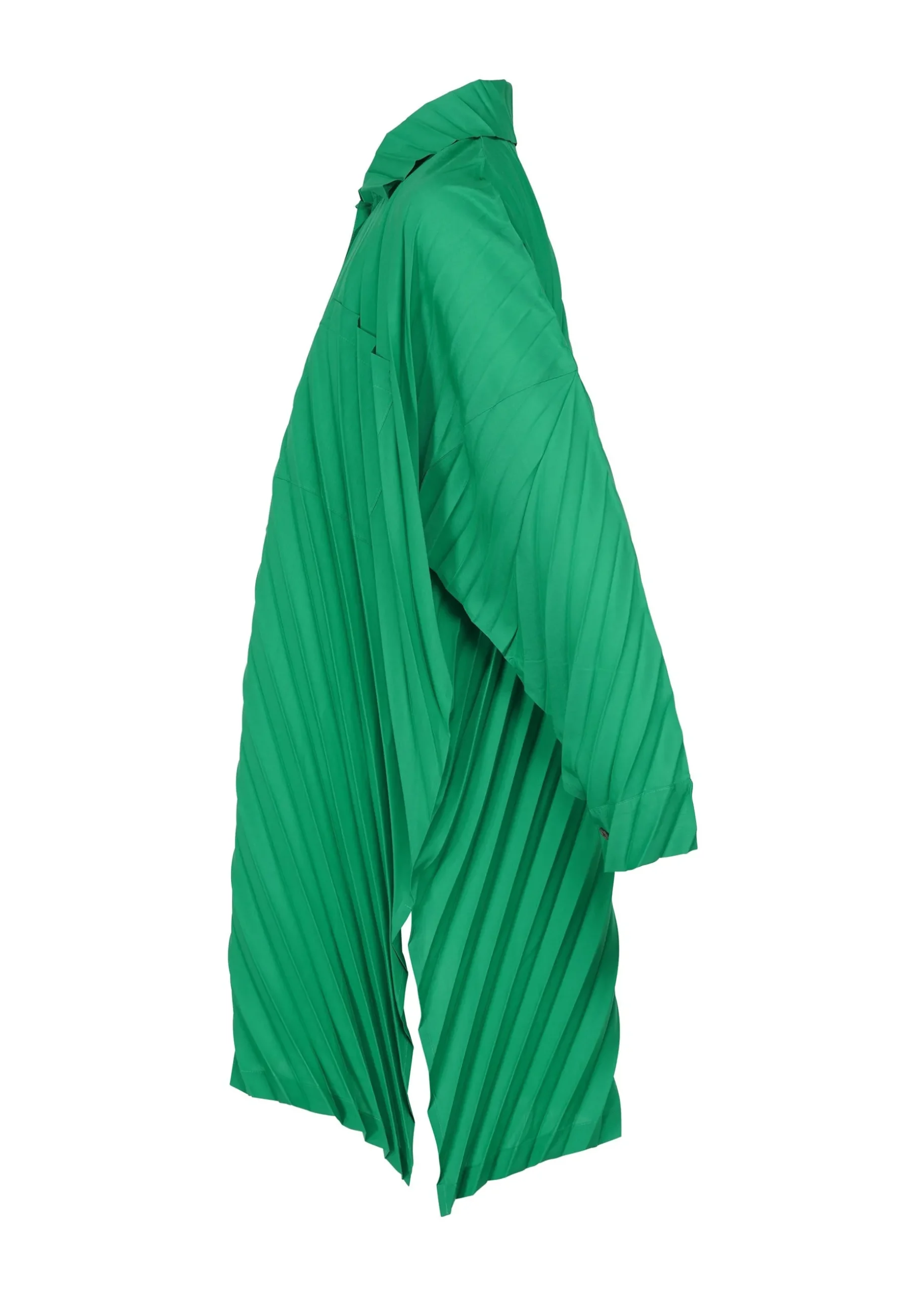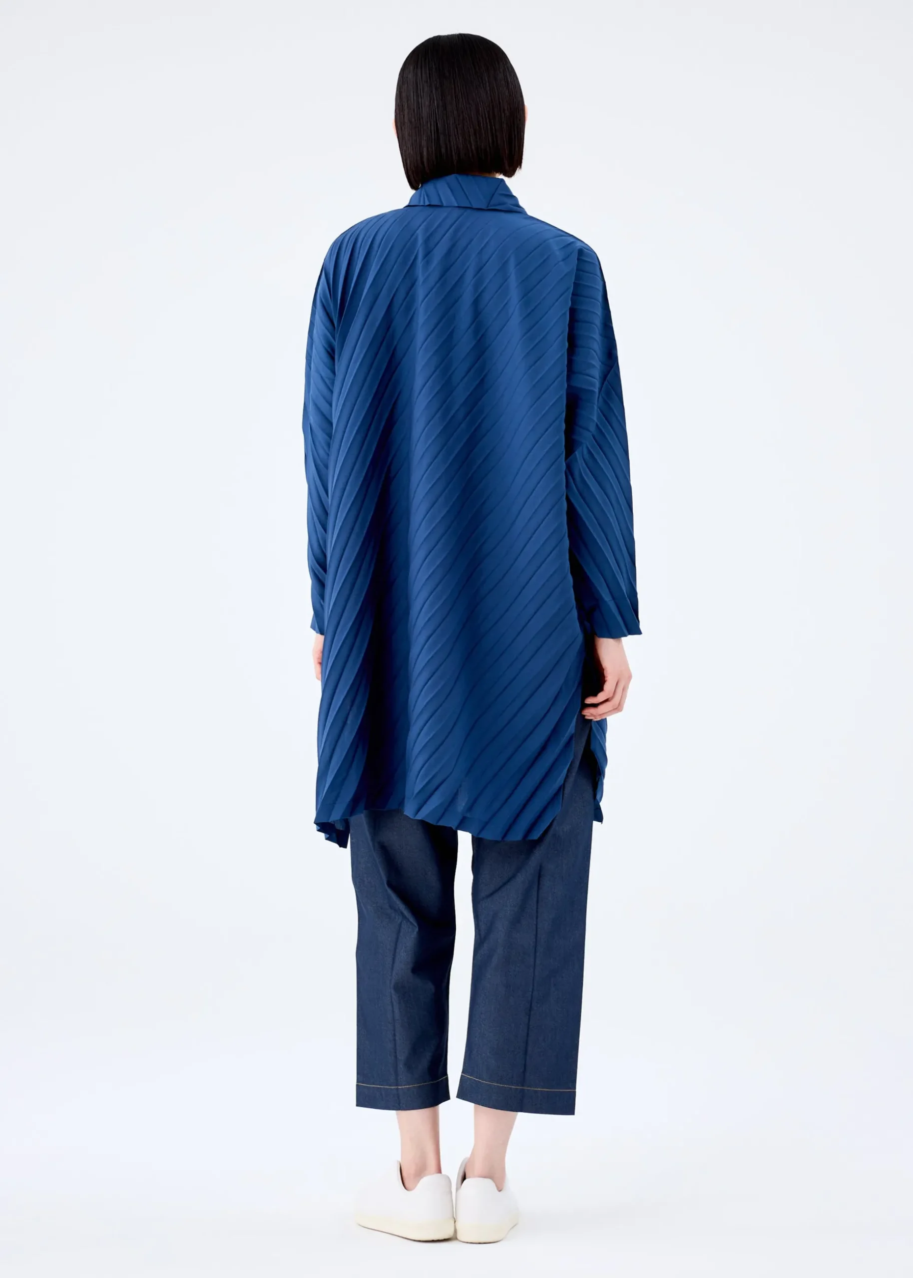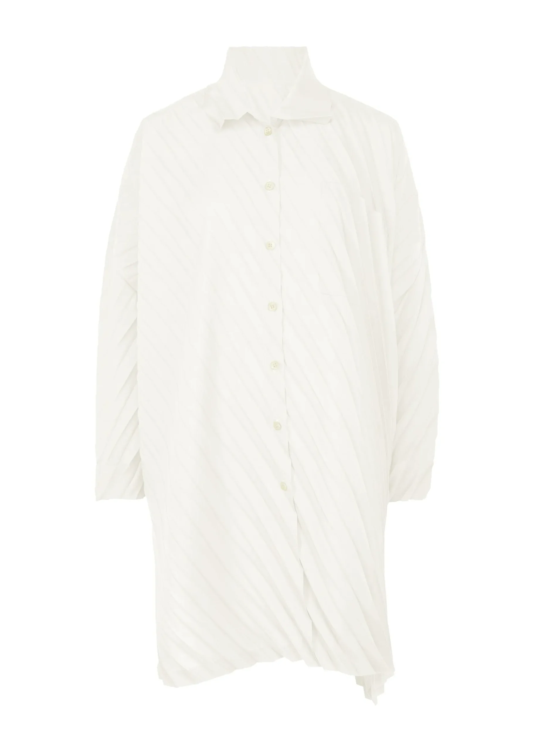 A long-sleeved long shirt that can be folded compactly along the diagonal parallel pleats. A lightweight and comfortable item that can be worn seasonally. There is a pocket on the left chest.