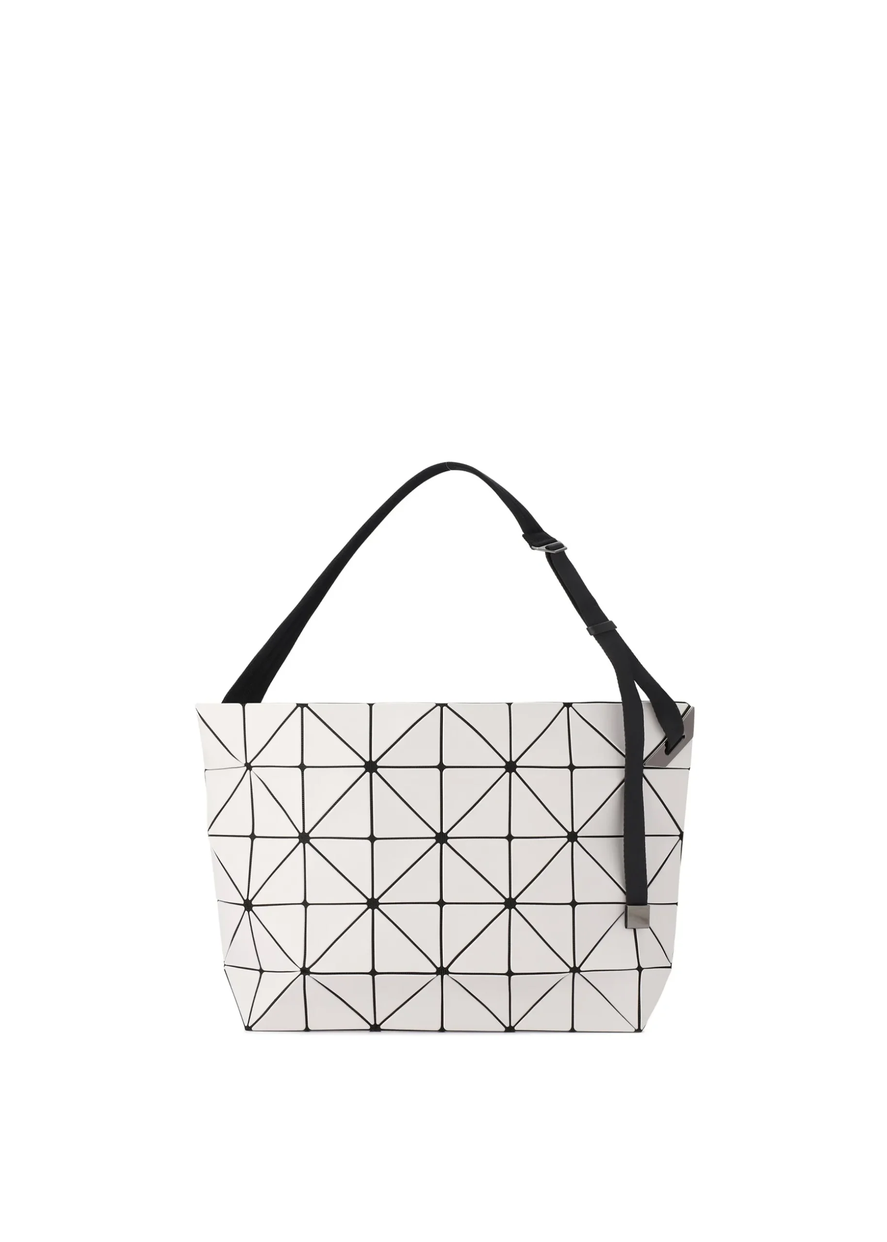 This shoulder bag is characterized by its dynamic, three-dimensional look, made from leather-like matte material and composed of large triangular pieces. It can be hung from one shoulder or across the body by adjusting the strap length. The cushioned strap is ideal for cyclists or active people who are often on the move for work. The bag’s size allows it to hold a 13-inch laptop.