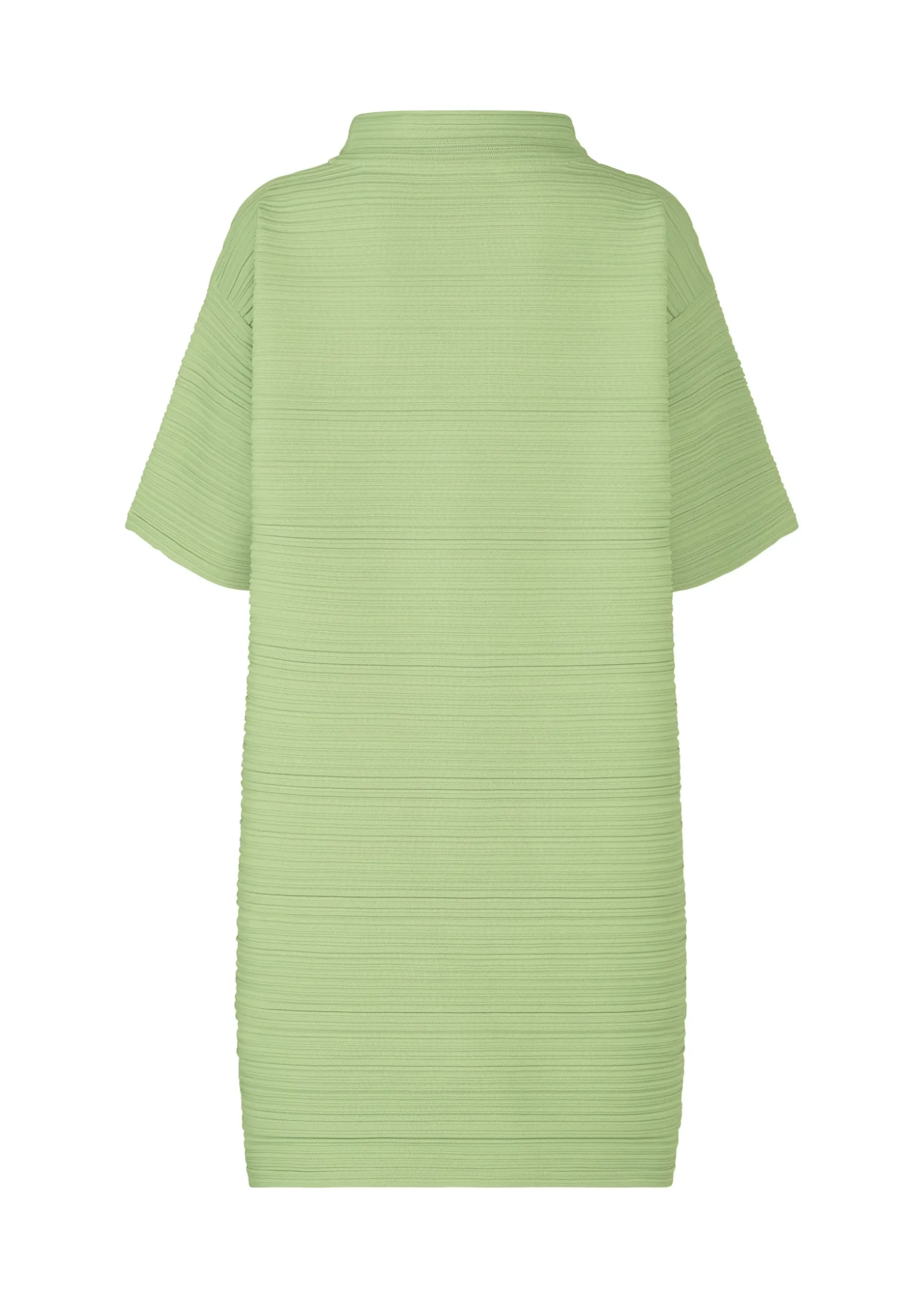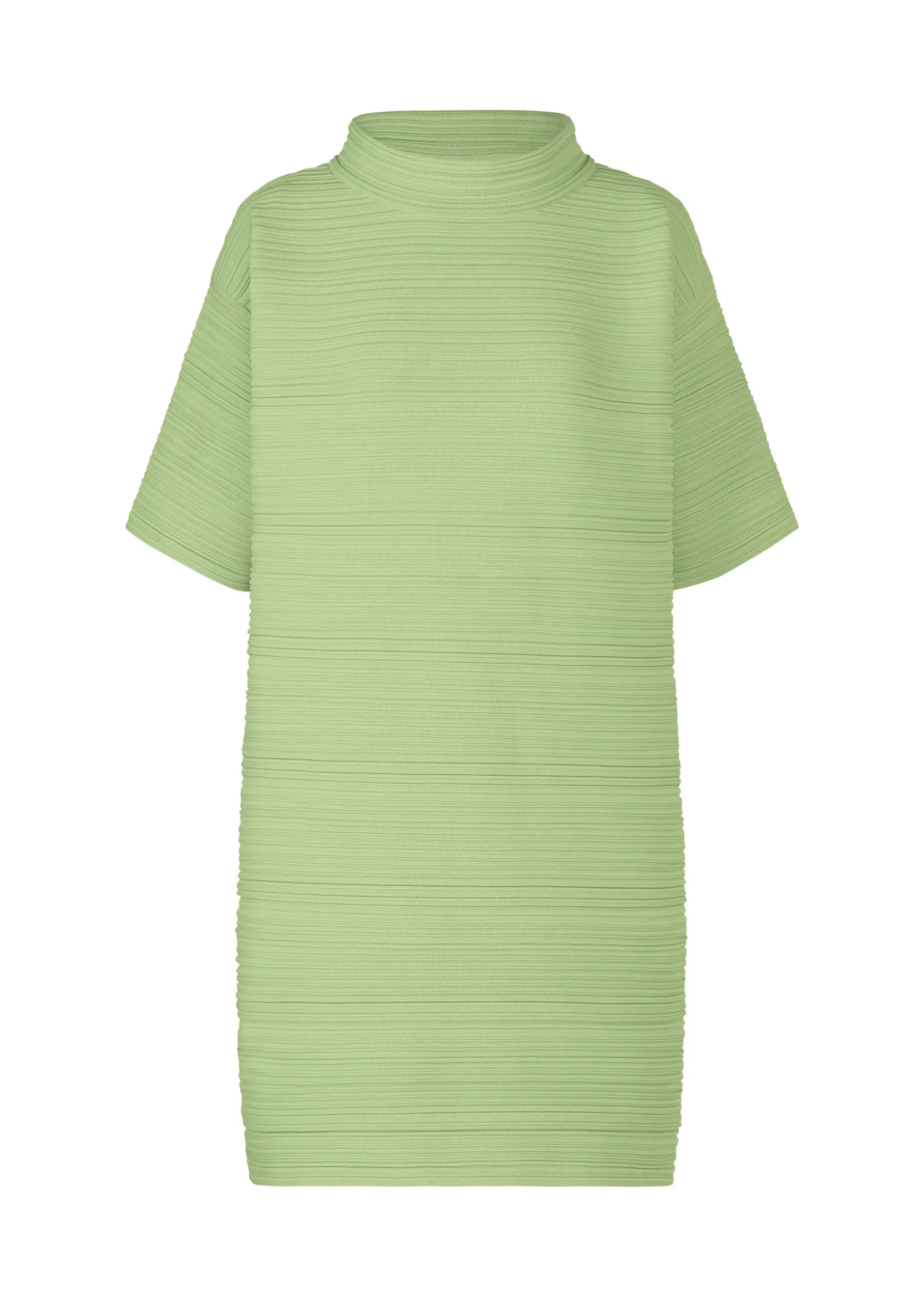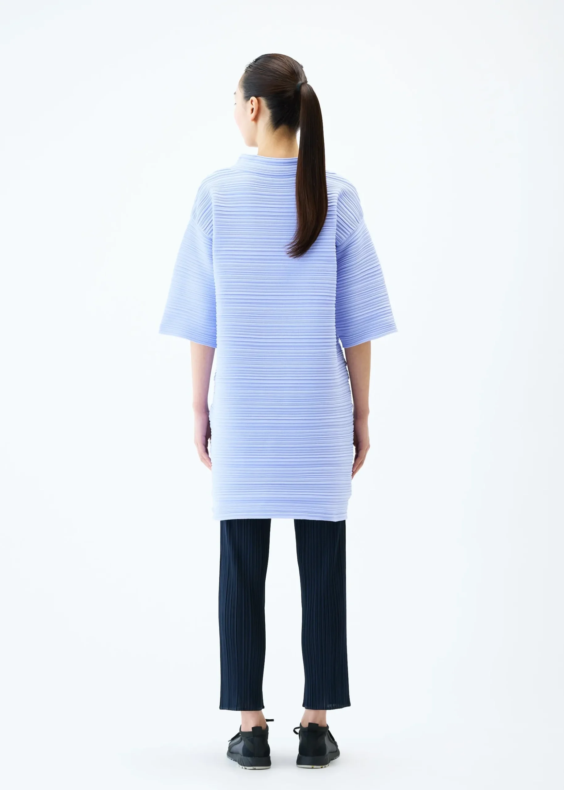 Mock neck half-sleeve tunic with pleats and horizontal knitting. Made from 100% recycled polyester, it is lightweight and machine washable for easy care.