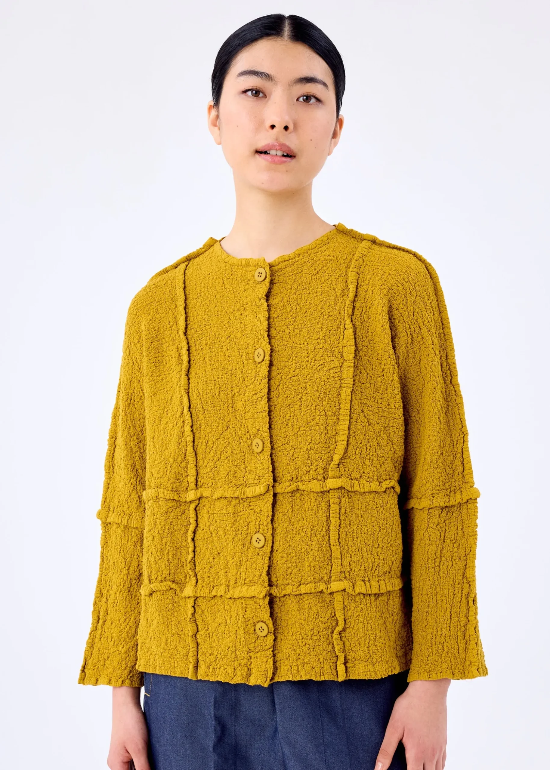 This CAULIFLOWER long-sleeved cardigan is characterized by the feel of its material that has the excellent comfort unique to cotton as well as a stretchy unevenness. The seams are exposed to create a checkered pattern. The simple design in a cotton blend material makes this an item that can be worn throughout all seasons.