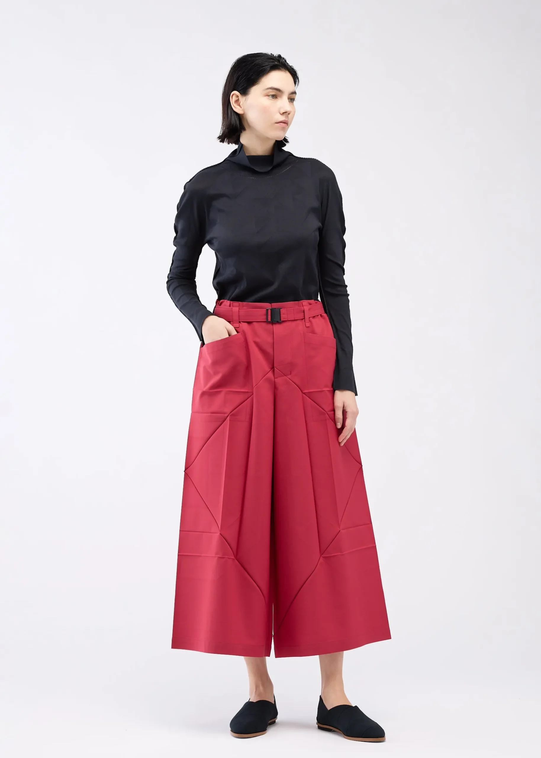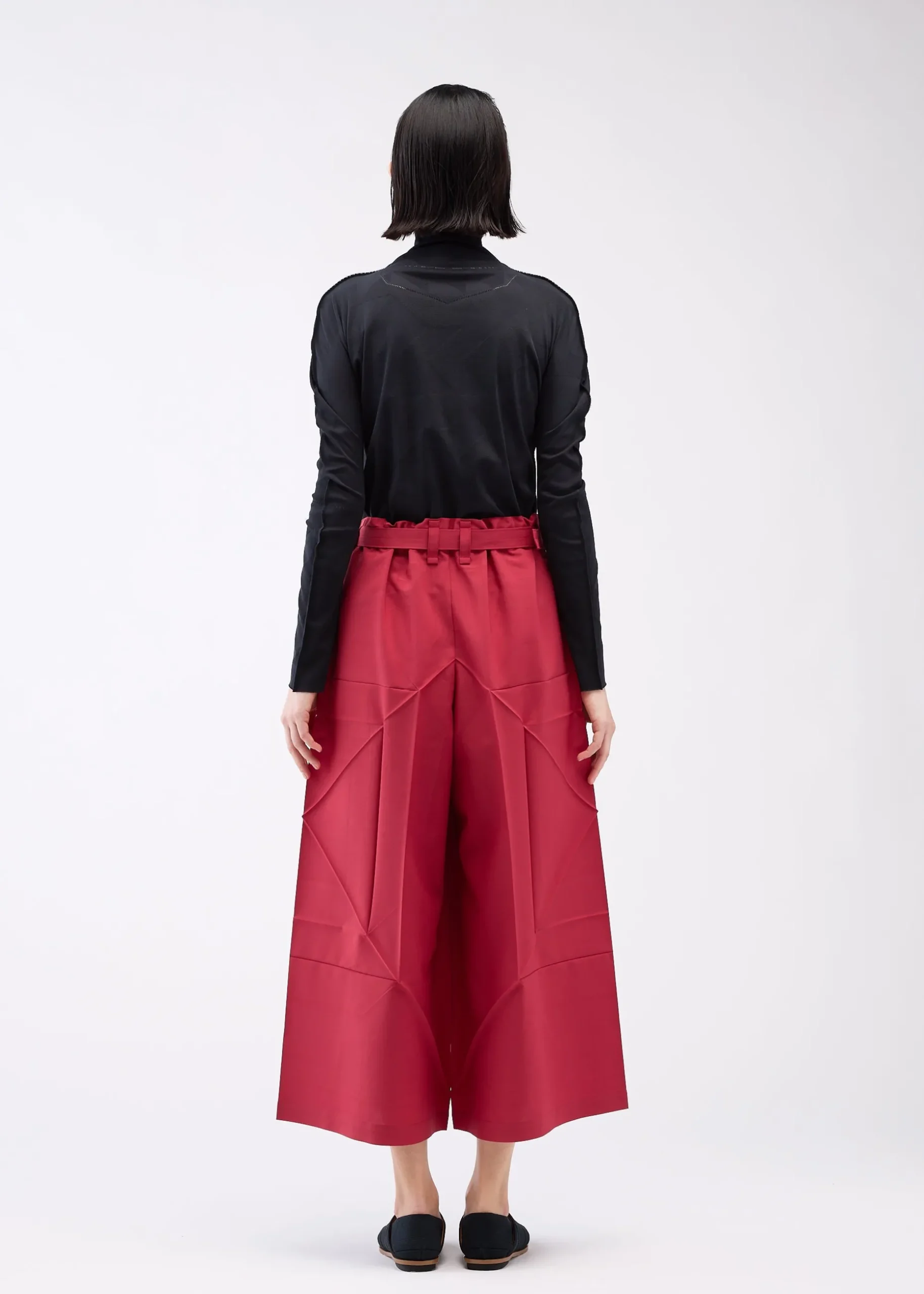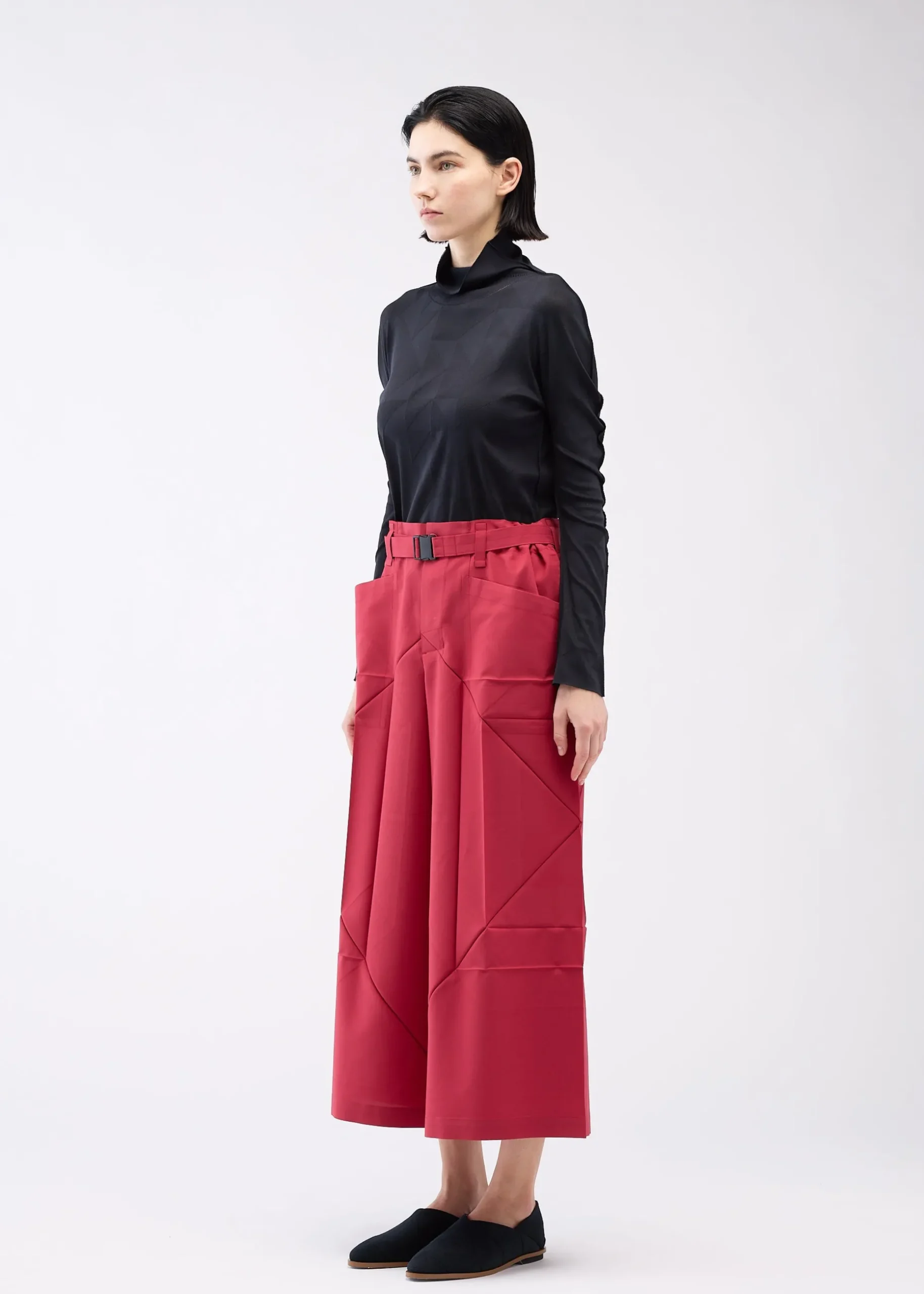 These pants feature a combination of mountain and valley folds, which create quadrilateral edges that stand out when worn.The waist can be adjusted with the included belt.