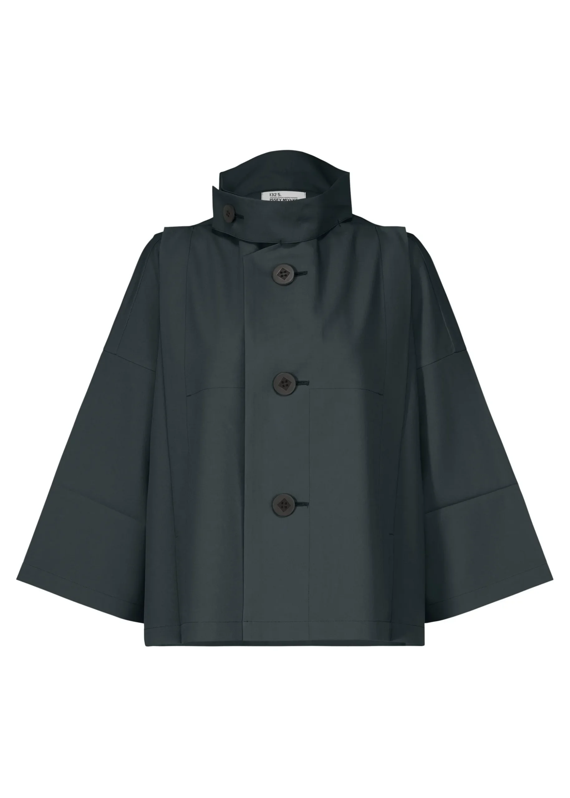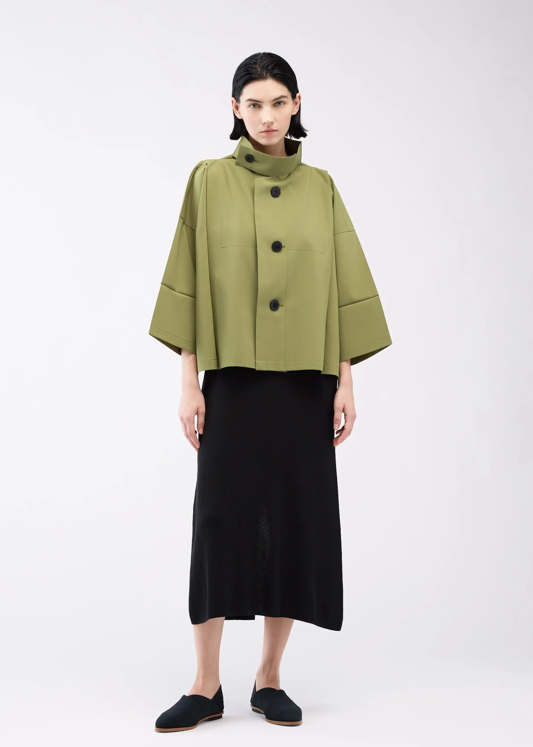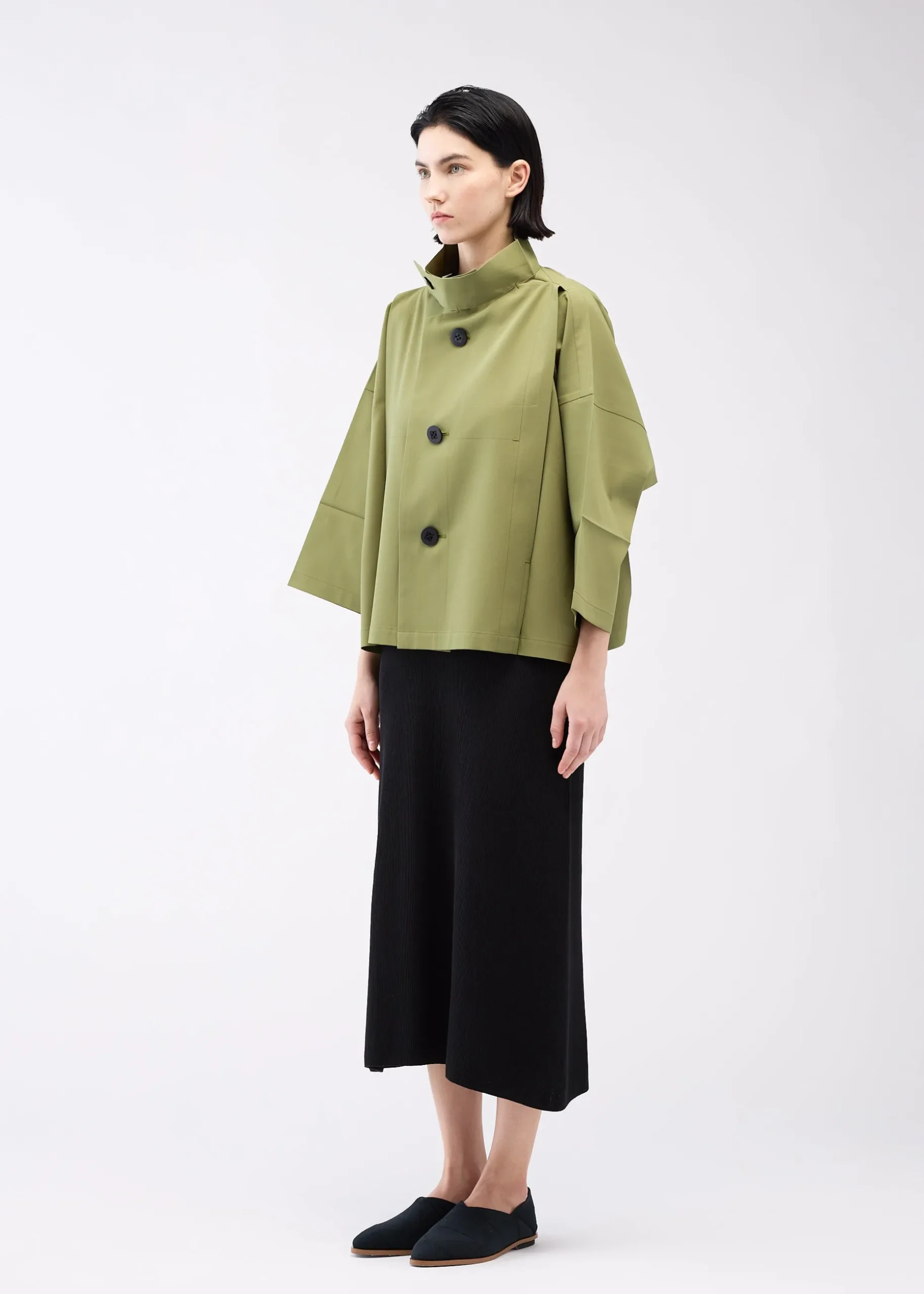 This jacket applies to daily wear the signature 132 5. ISSEY MIYAKE garment structure that can be folded flat. It is made from plant-derived polyester fabric.