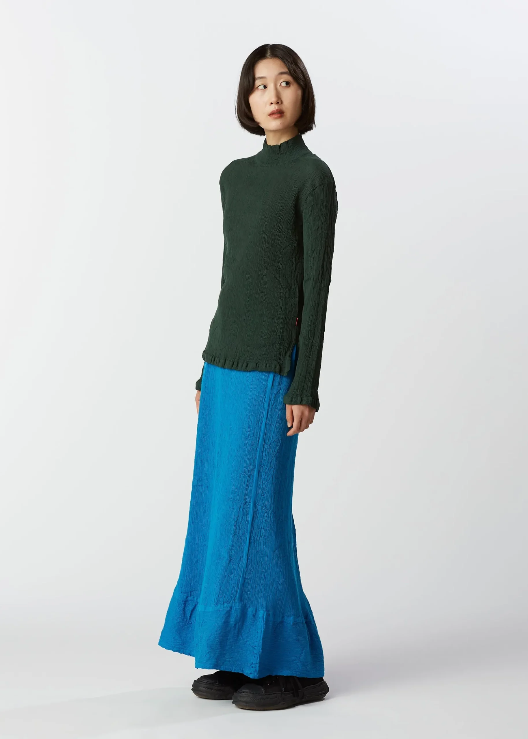 This KYO CHIJIMI long skirt is characterized by its light and supple texture. It is woven on a loom unique to the production area using ultra-fine cotton yarn that has been twisted more than regular hard-twist yarn.