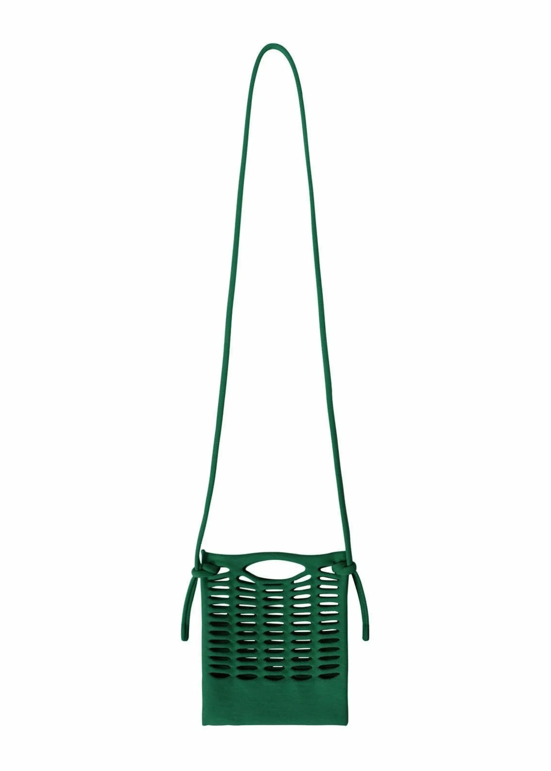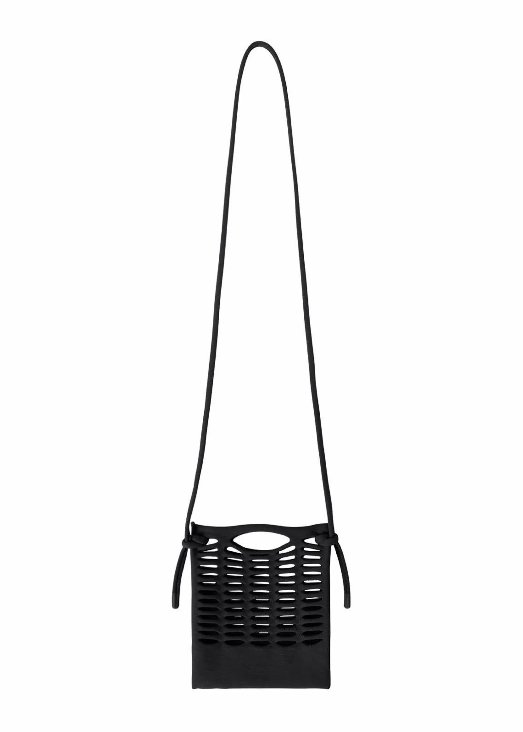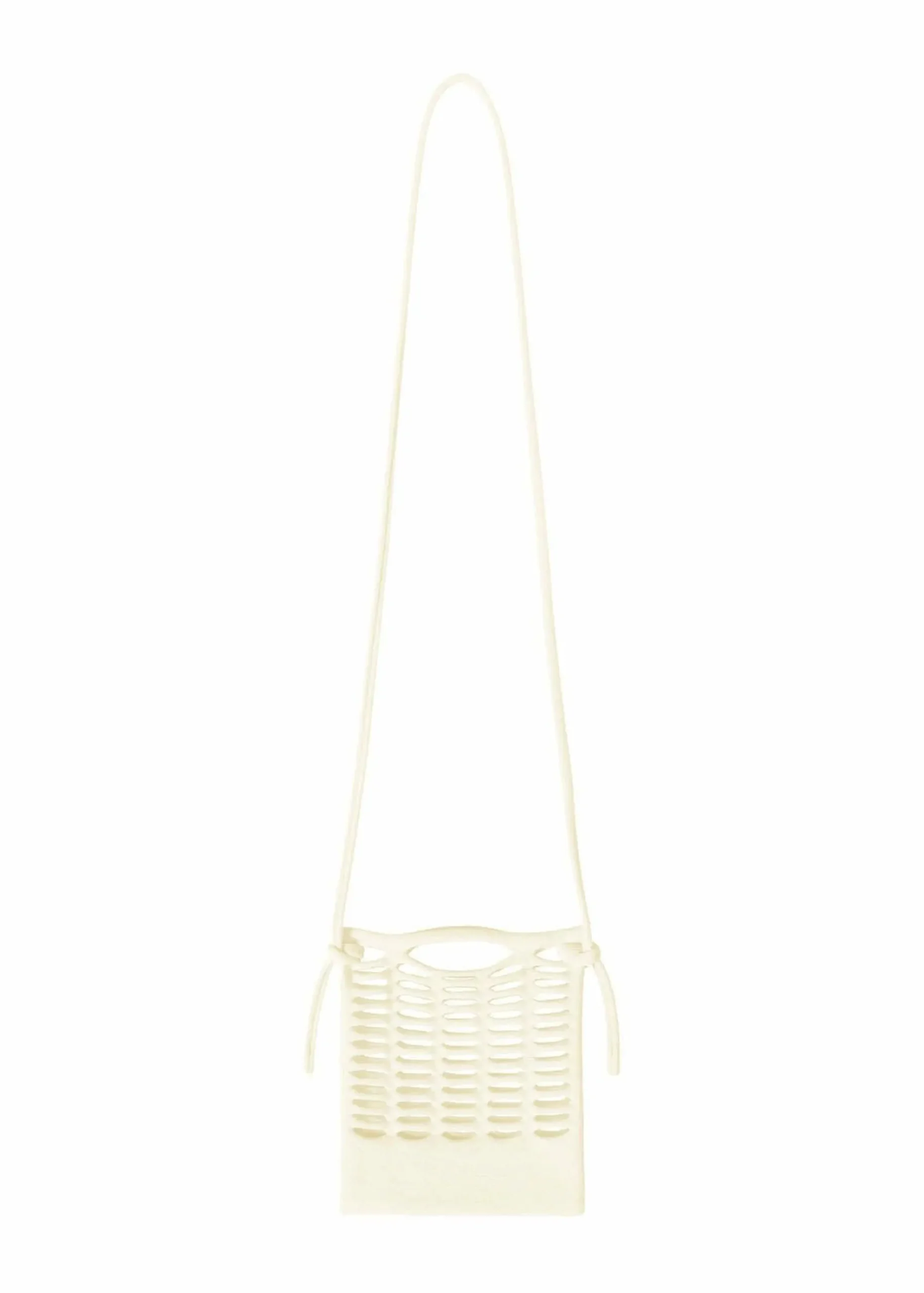 This light, soft knit pochette is made from a single thread. It can be used for quick errands instead of your pocket to hold items such as a smartphone and mini wallet. The shoulder strap made from the same material is detachable, and its length can be adjusted depending on where you tie it. It is available in basic colors that can be enjoyed regardless of the season.