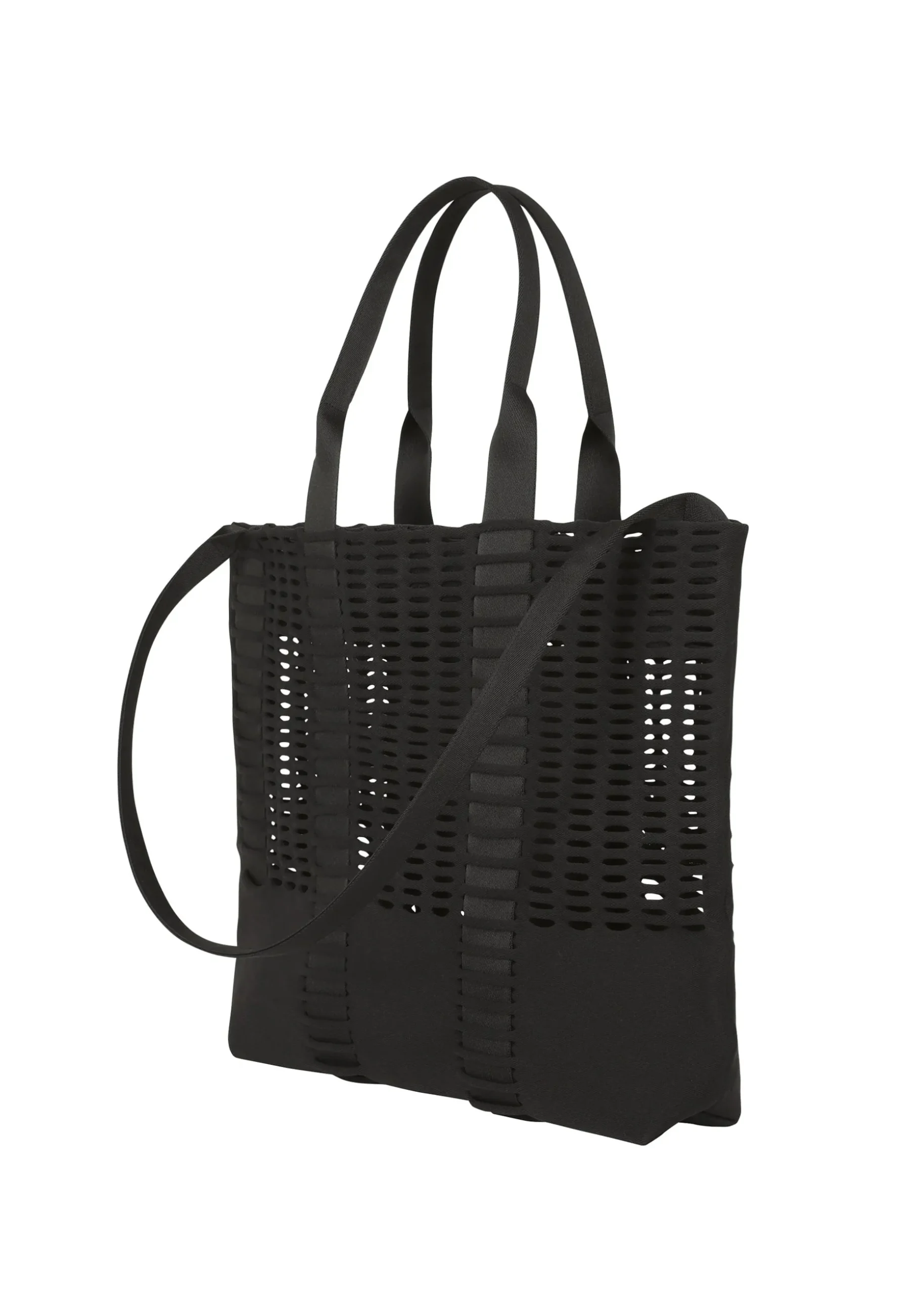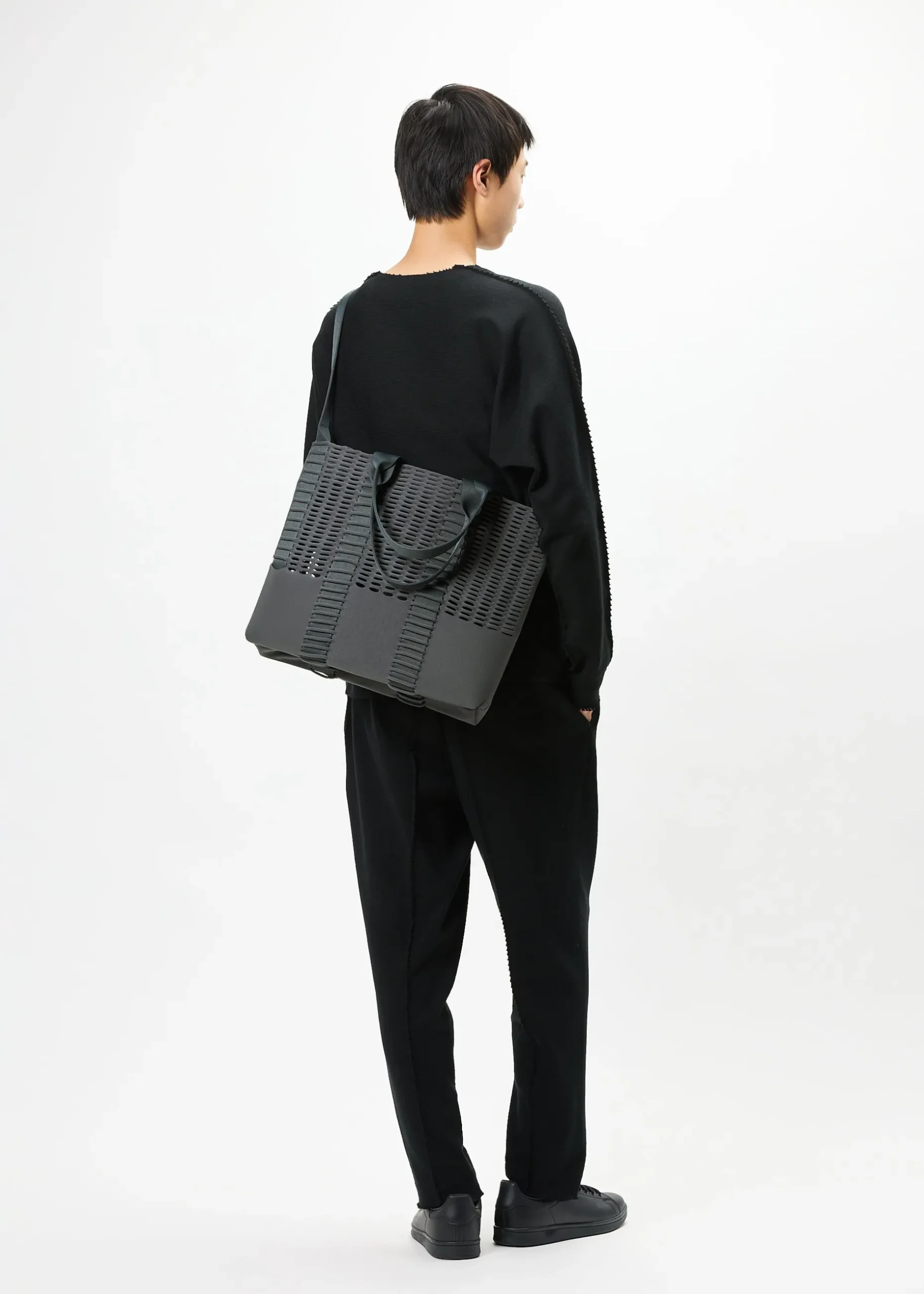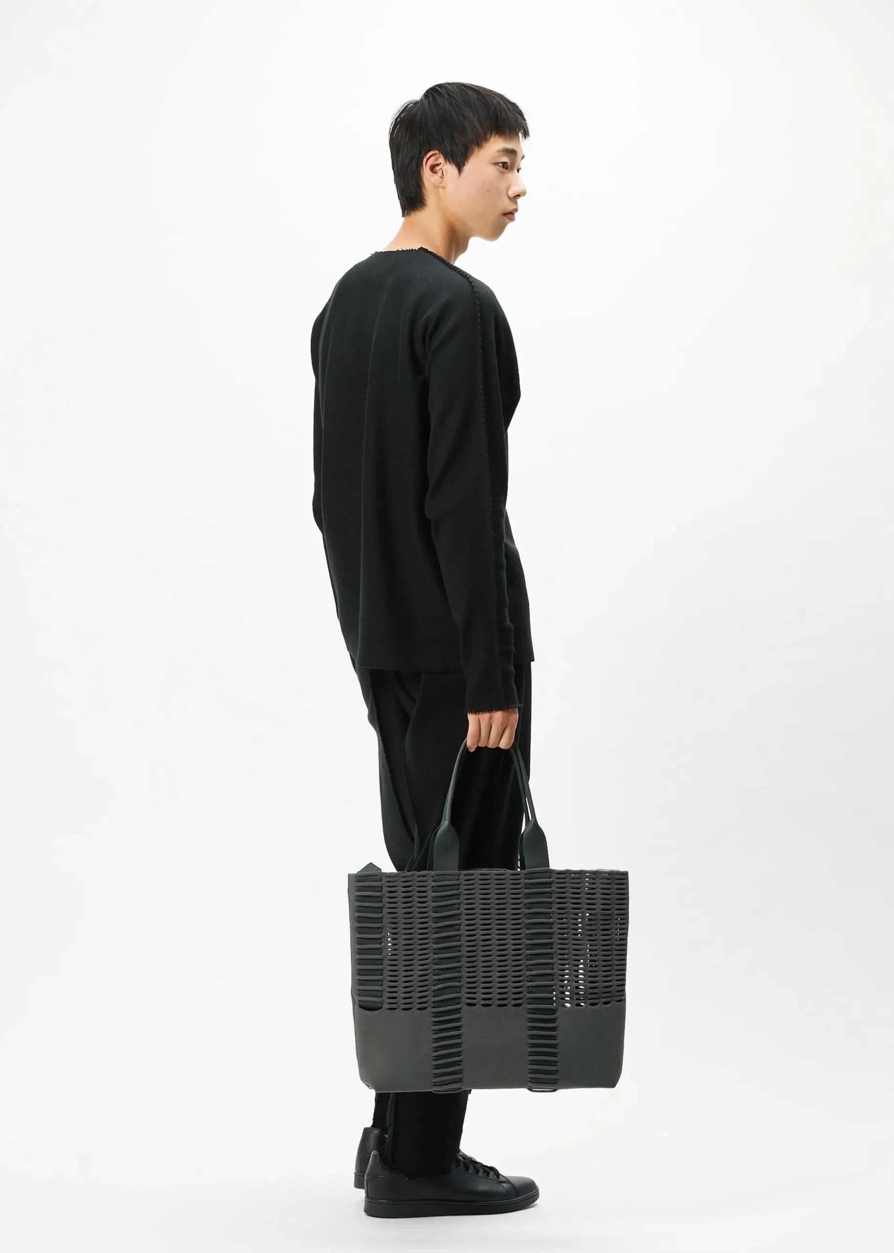 A light and soft knit bag knitted from a single thread. It does not lose its shape and can securely store items such as A4 documents and laptops, and comes with two types of shoulder straps, making it easy to use in business situations. It features a streamlined design that utilizes the mesh unique to the MOKKO series and passes the tape through slits.