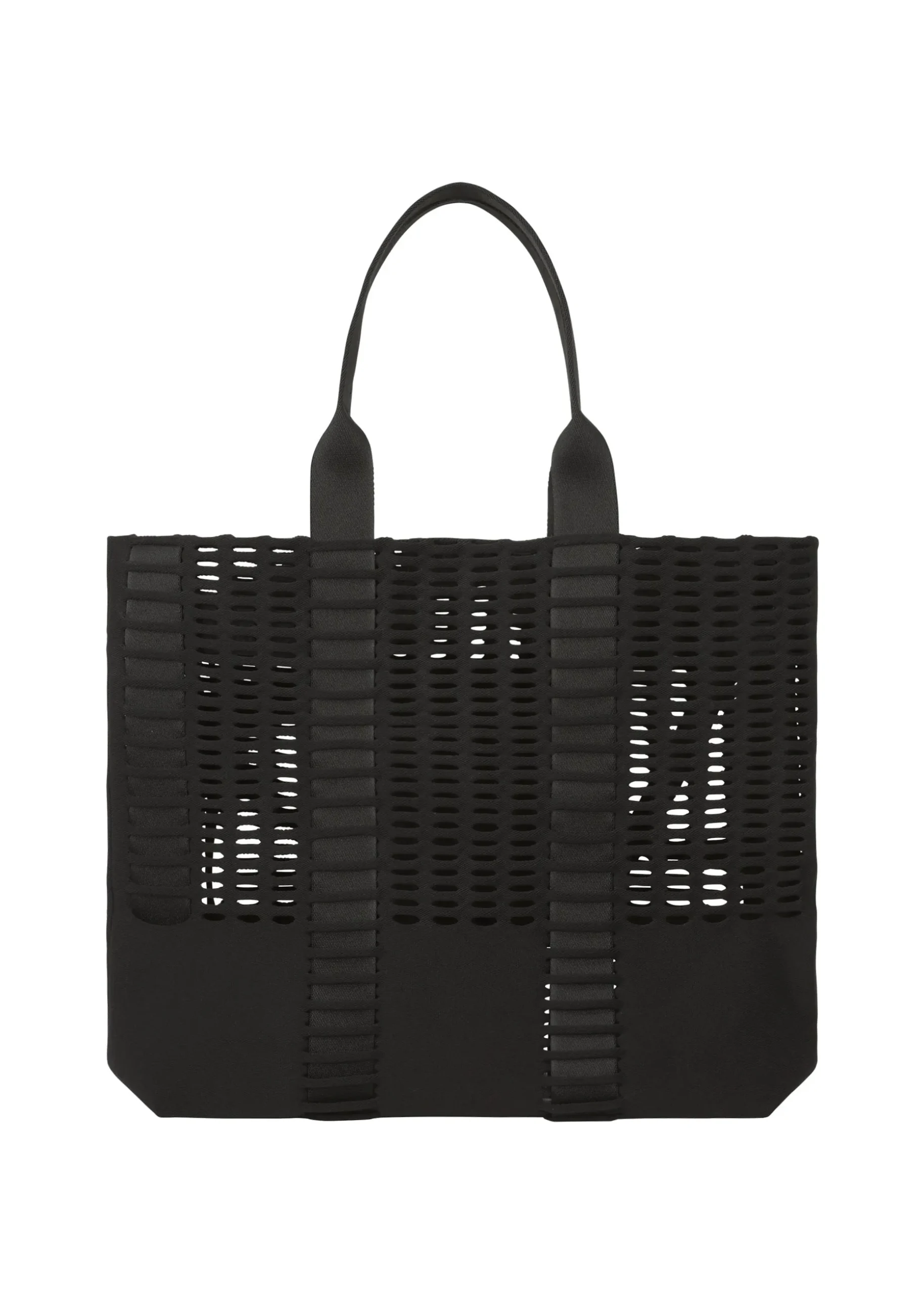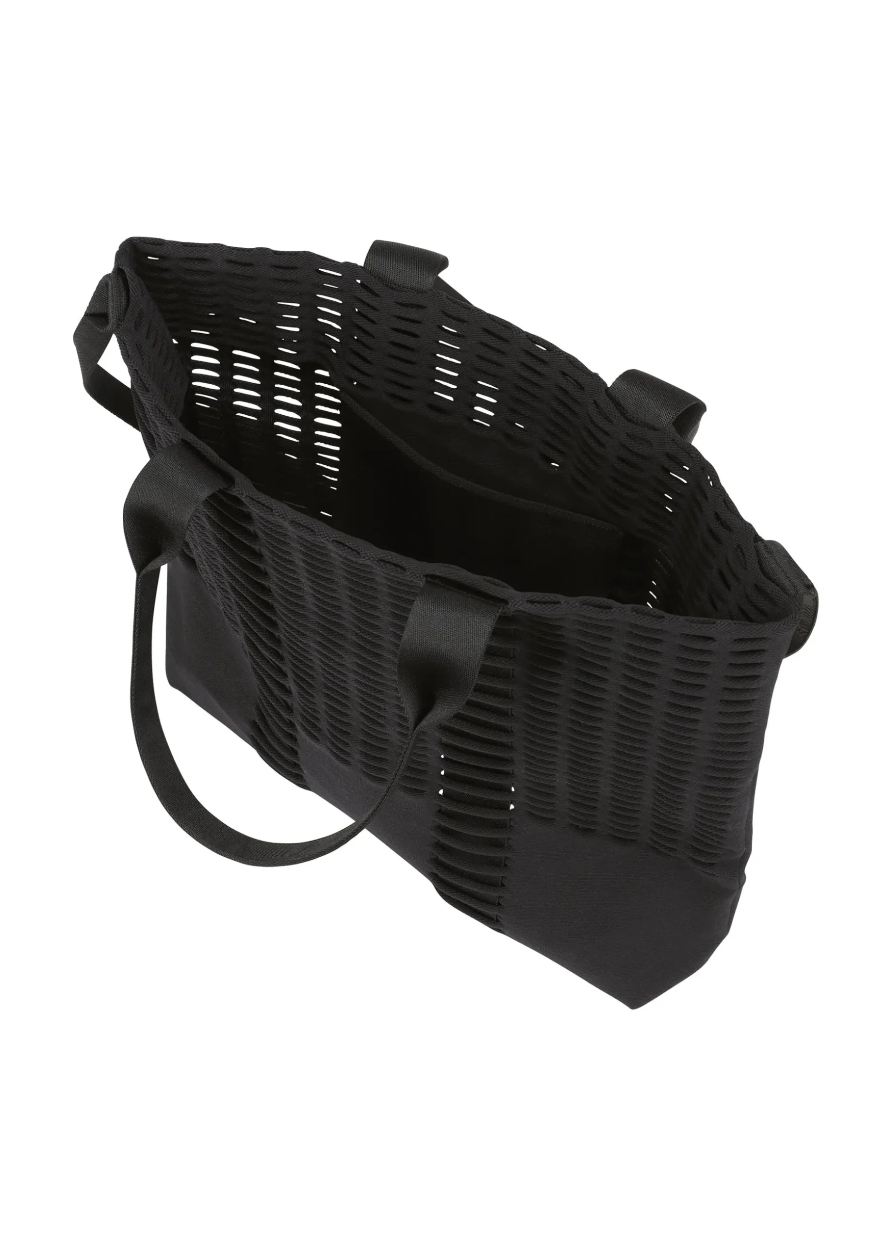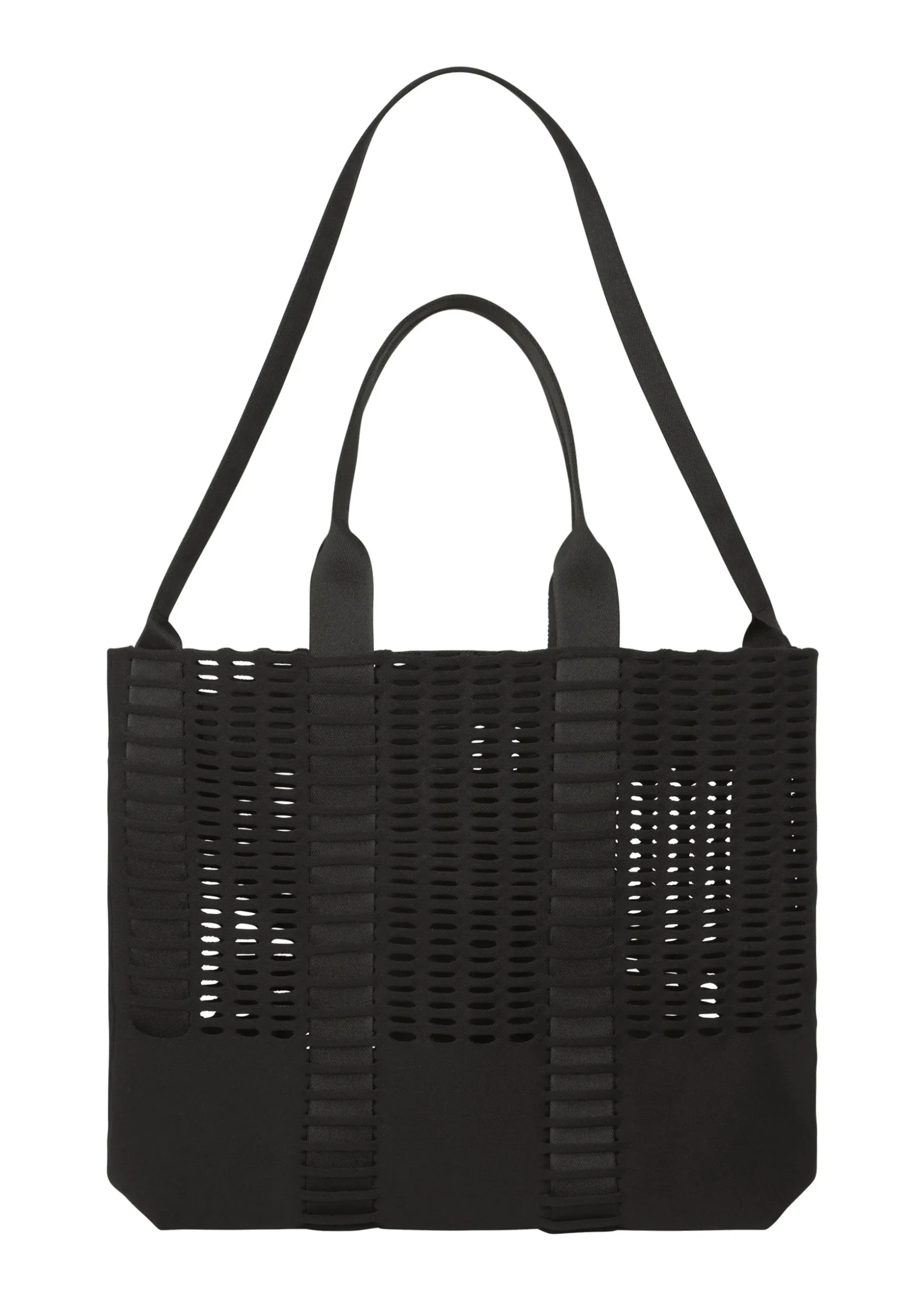 A light and soft knit bag knitted from a single thread. It does not lose its shape and can securely store items such as A4 documents and laptops, and comes with two types of shoulder straps, making it easy to use in business situations. It features a streamlined design that utilizes the mesh unique to the MOKKO series and passes the tape through slits.
