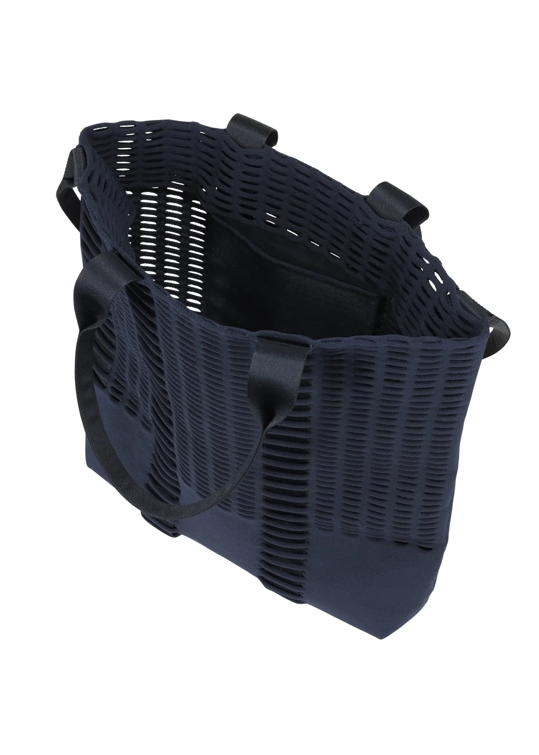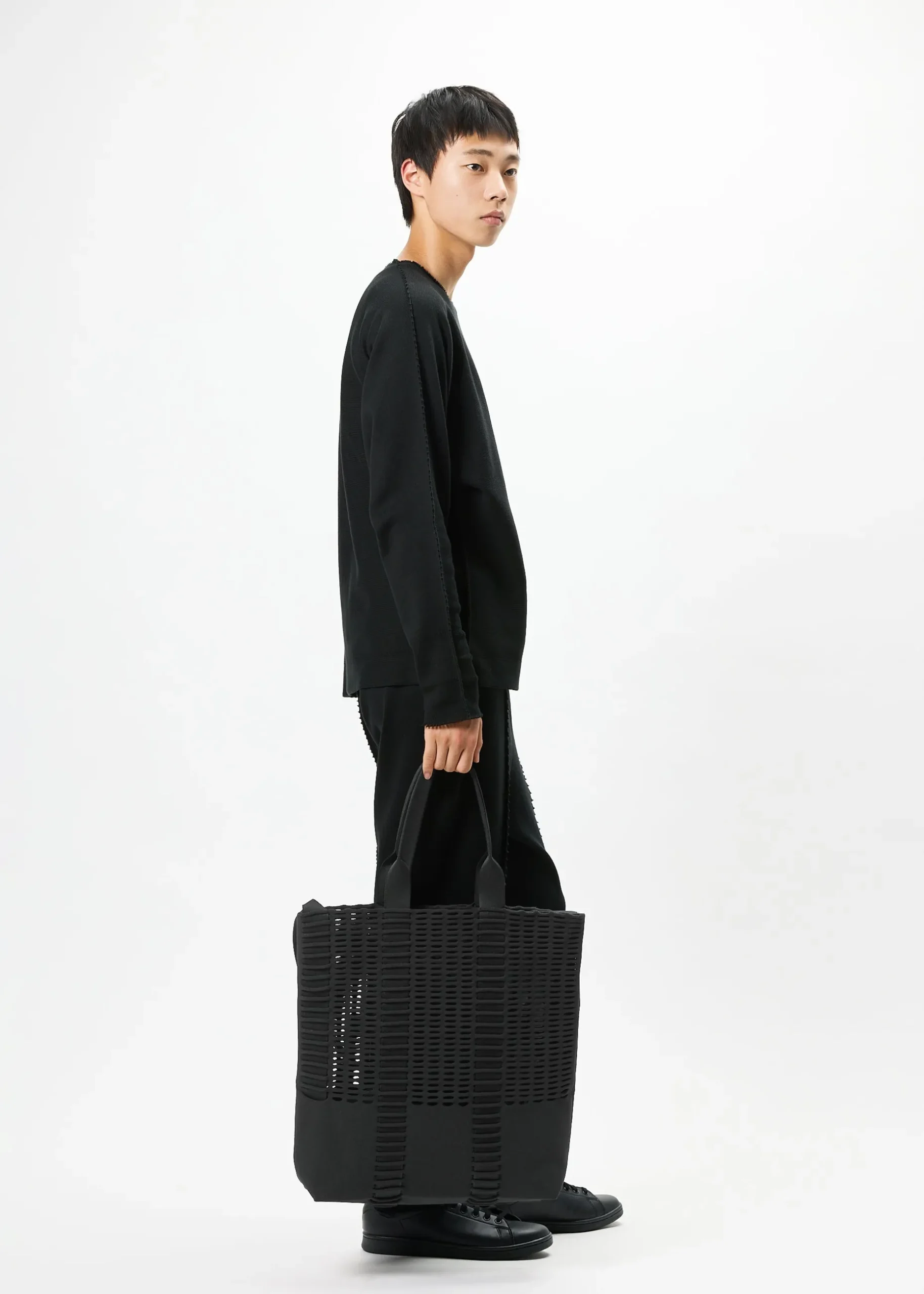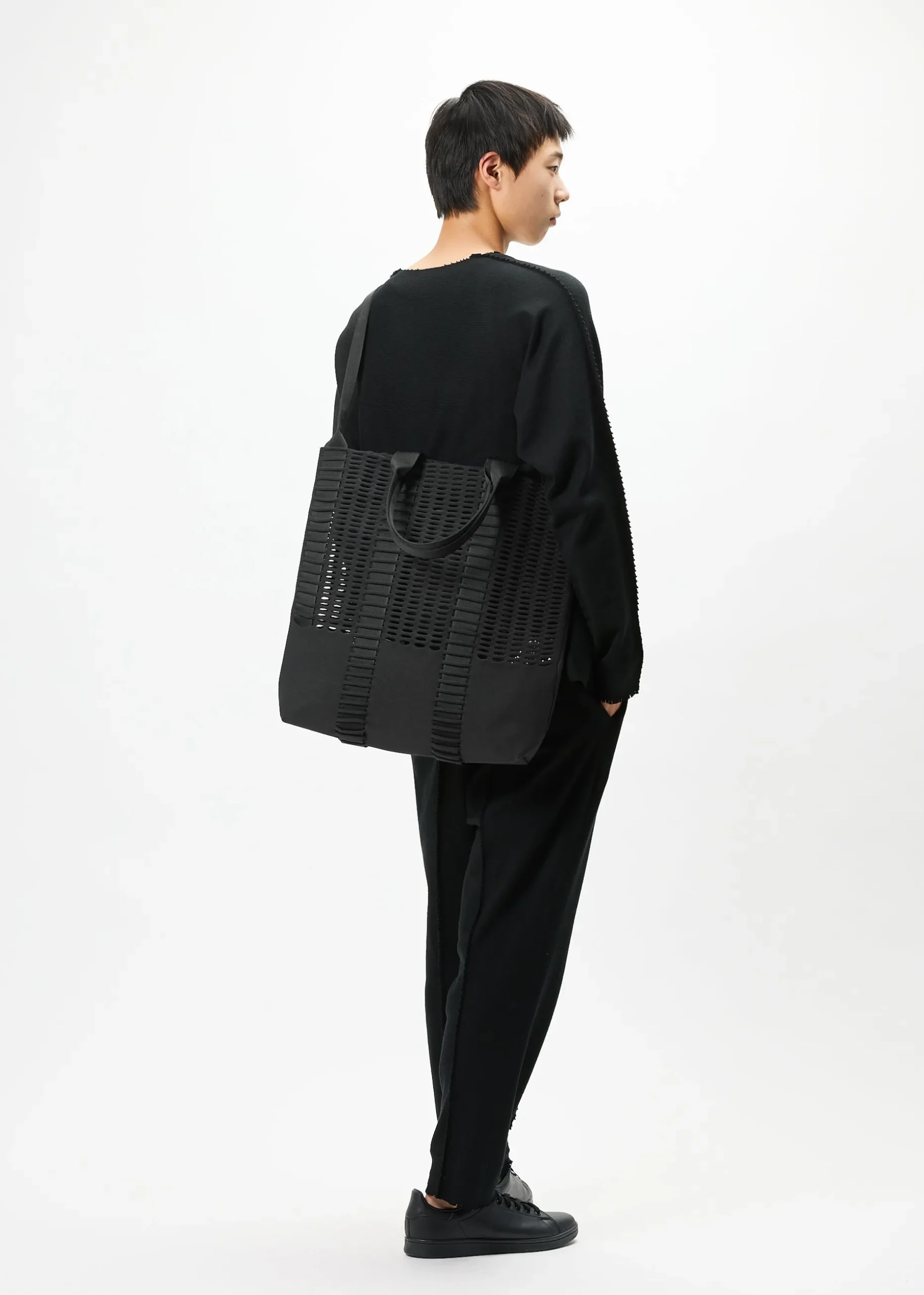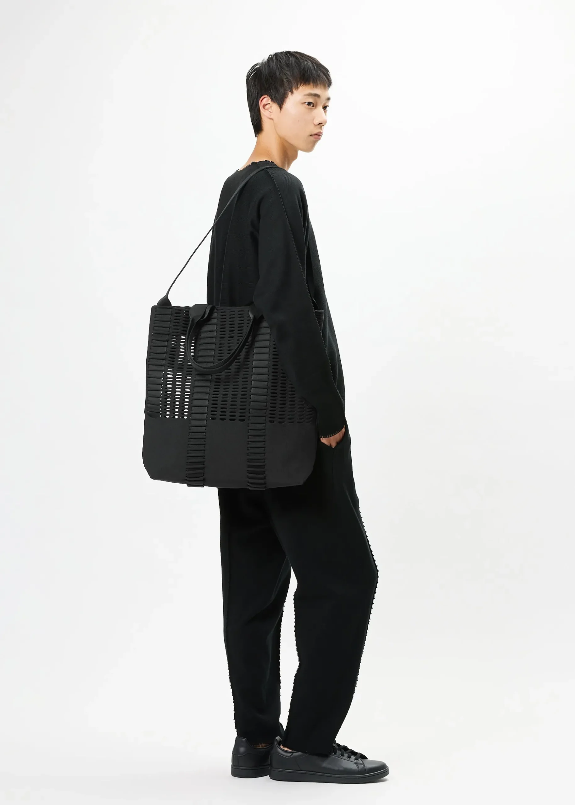 A light and soft knit bag knitted from a single thread. It does not lose its shape and can securely store items such as A4 documents and laptops, and comes with two types of shoulder straps, making it easy to use in business situations. It features a streamlined design that utilizes the mesh unique to the MOKKO series and passes the tape through slits.